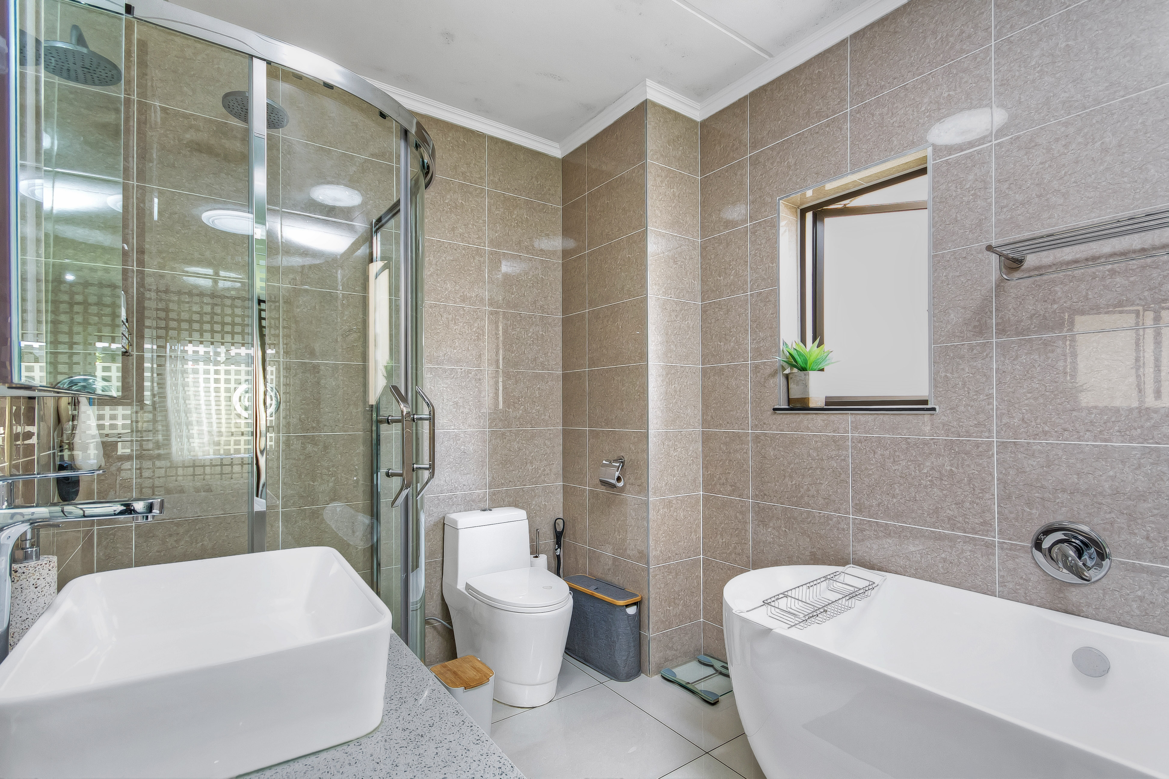 All bedrooms are very spacious with built-in cupboards, offering ample storage space. The main bedroom features an elegant full ensuite, finished with glass doors, a walk-in shower and a bath.