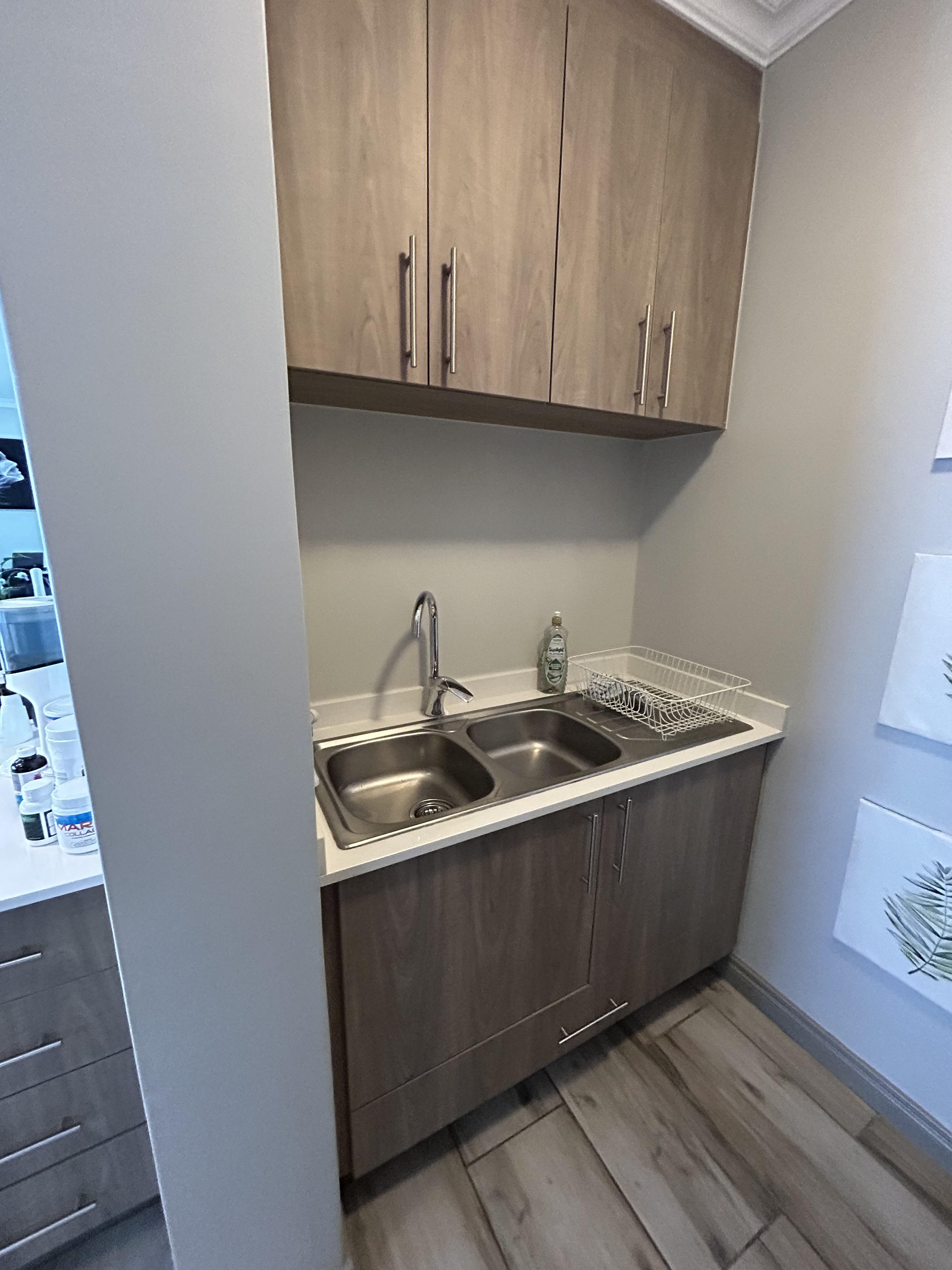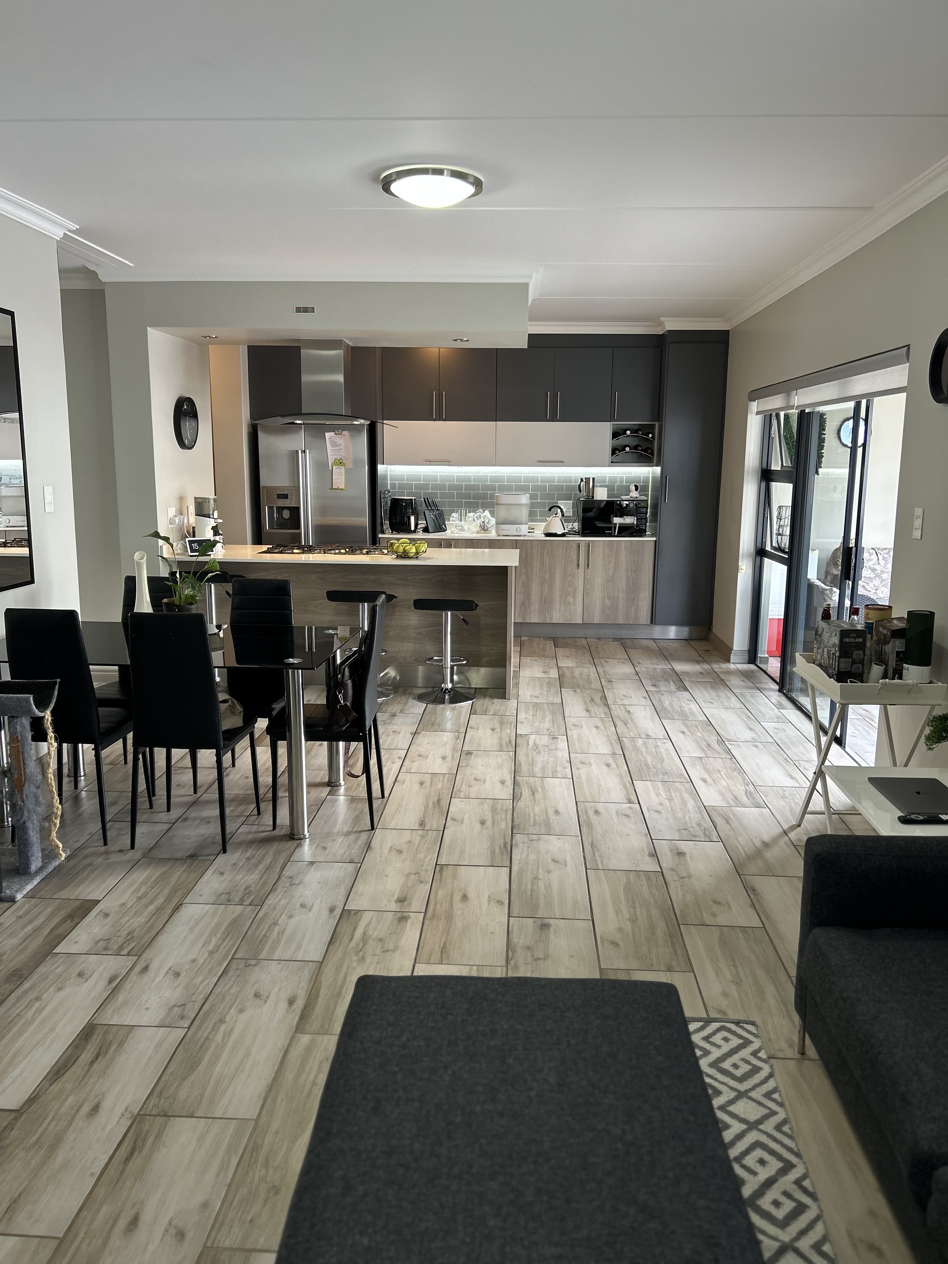 Laminated flooring throughout the unit.