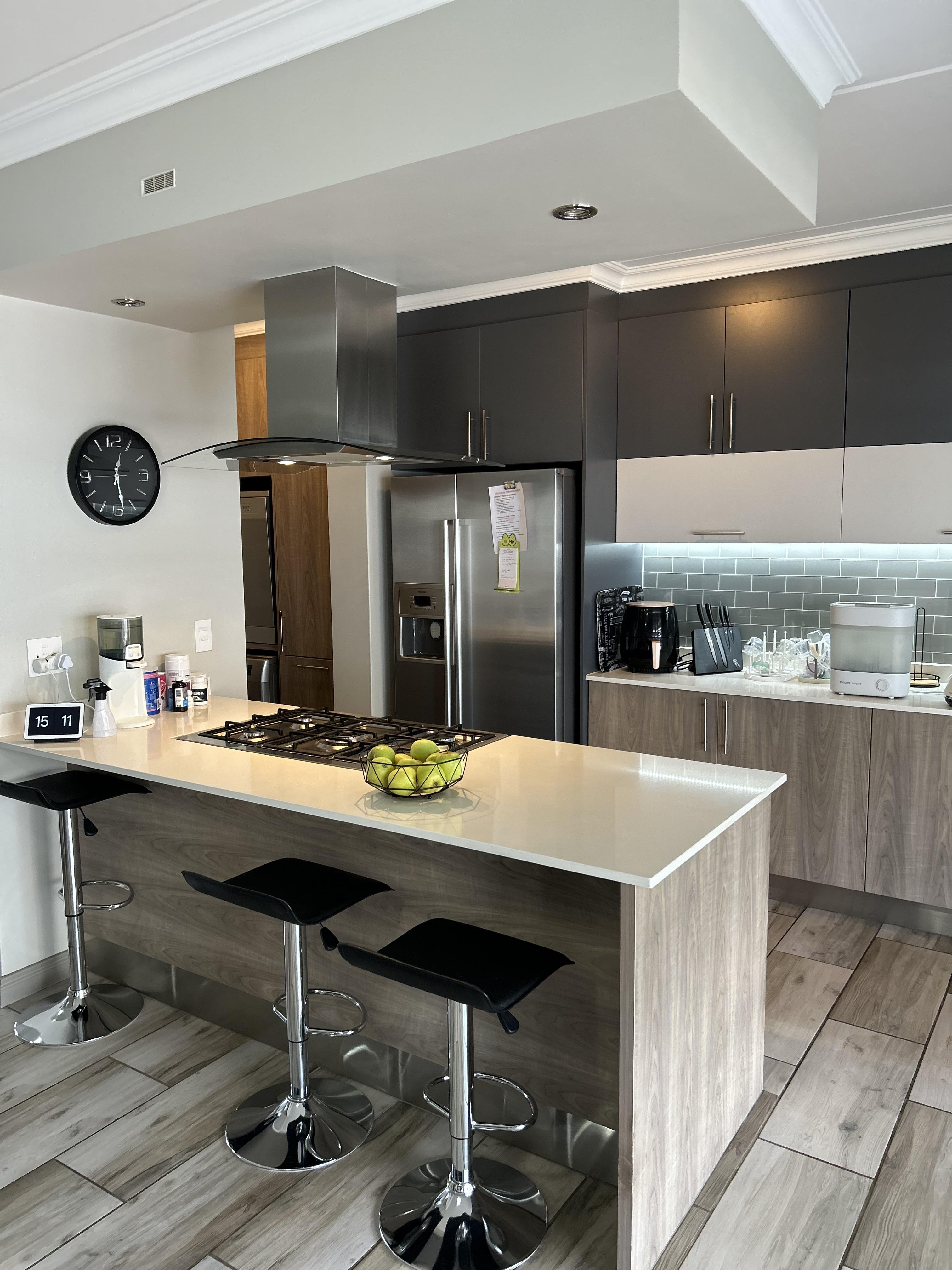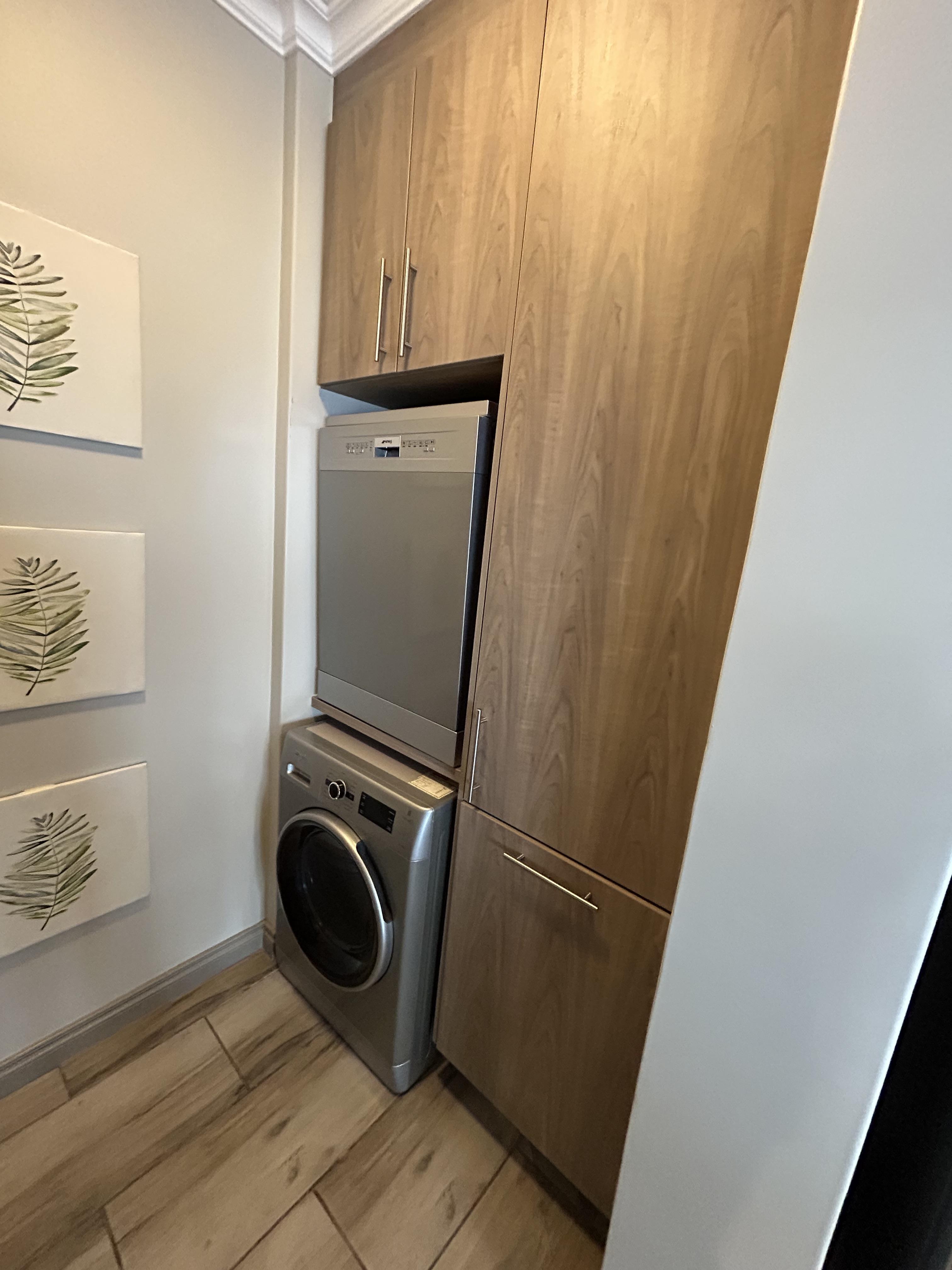 The apartment has immaculate finishes and ample storage space.