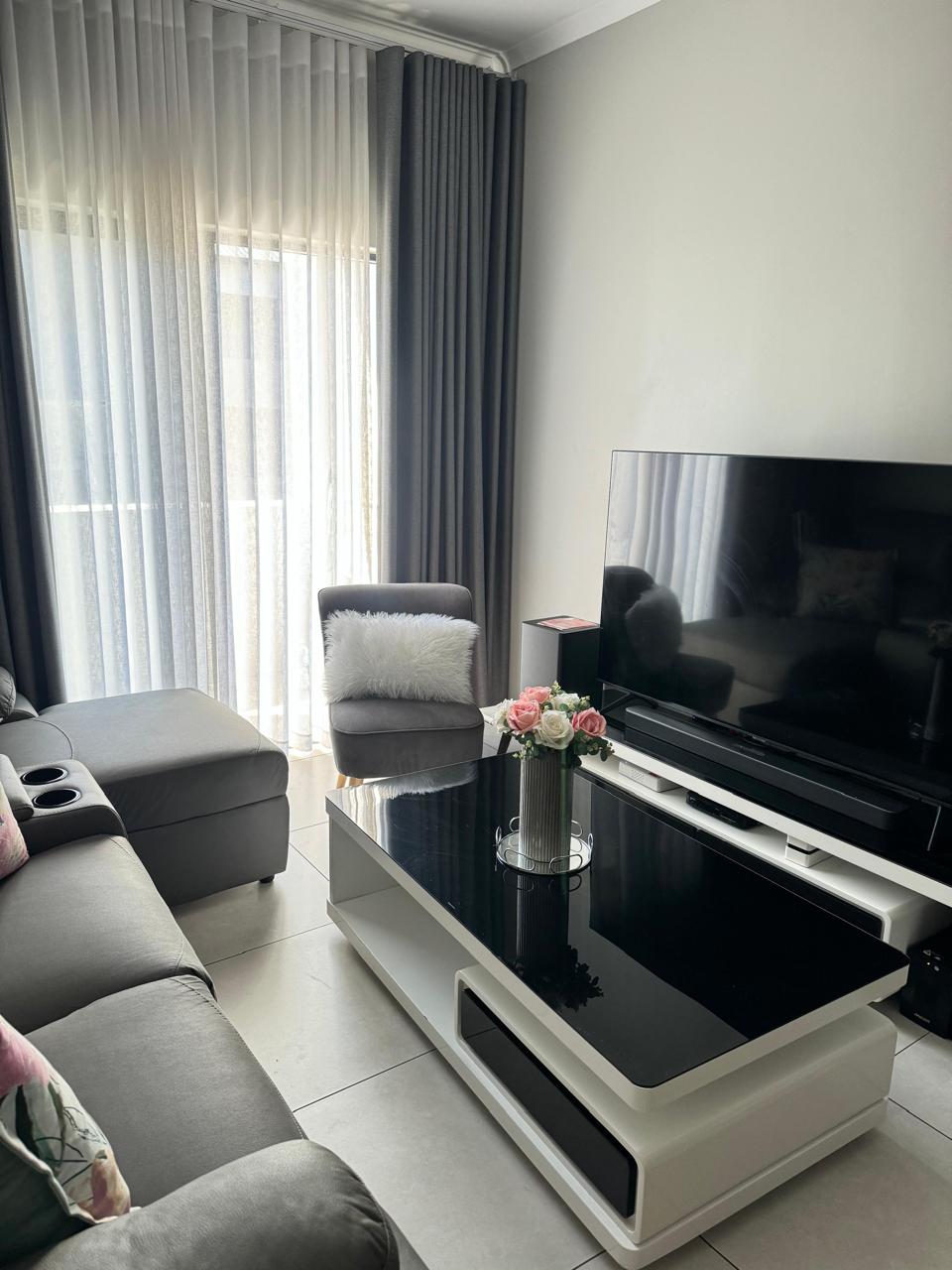 Stunning two-bedroom fully furnished modern apartment in a well-secured complex in Midrand, Carlswald. The apartment features 2 bedrooms, 2 bathrooms with a fully equipped kitchen, a microwave, fridge, and washing machine. A flat-screen TV. The main bedroom features ample built-in cupboard space and a bathtub. This apartment offers a perfect blend of comfort, security, and modern living.