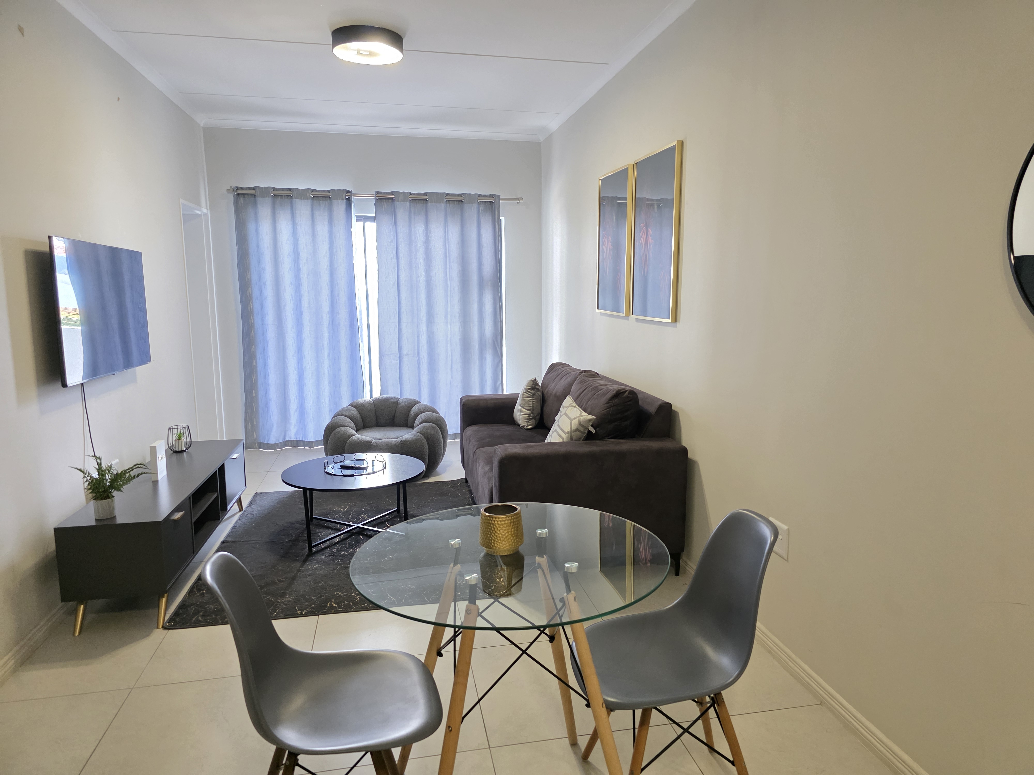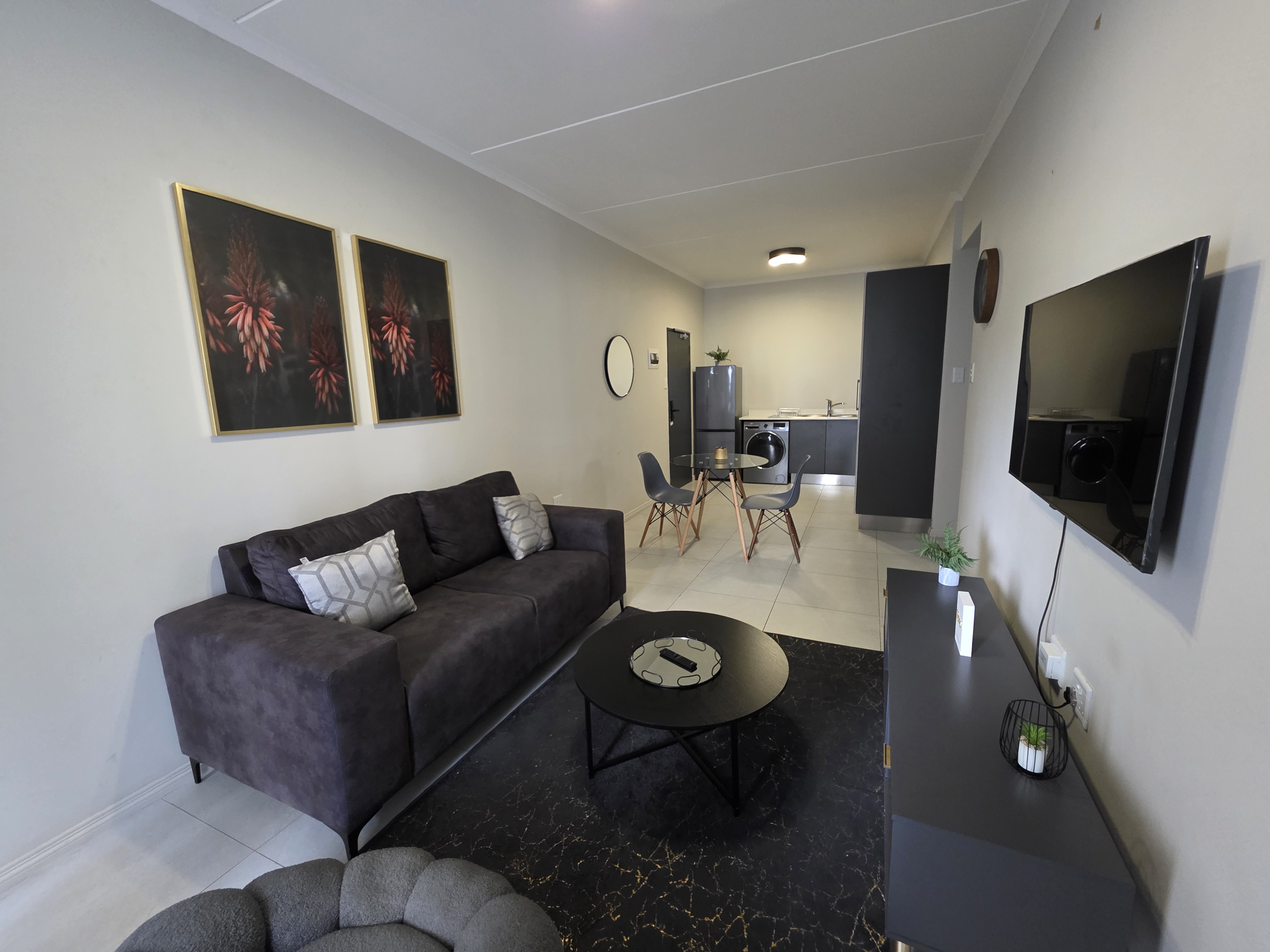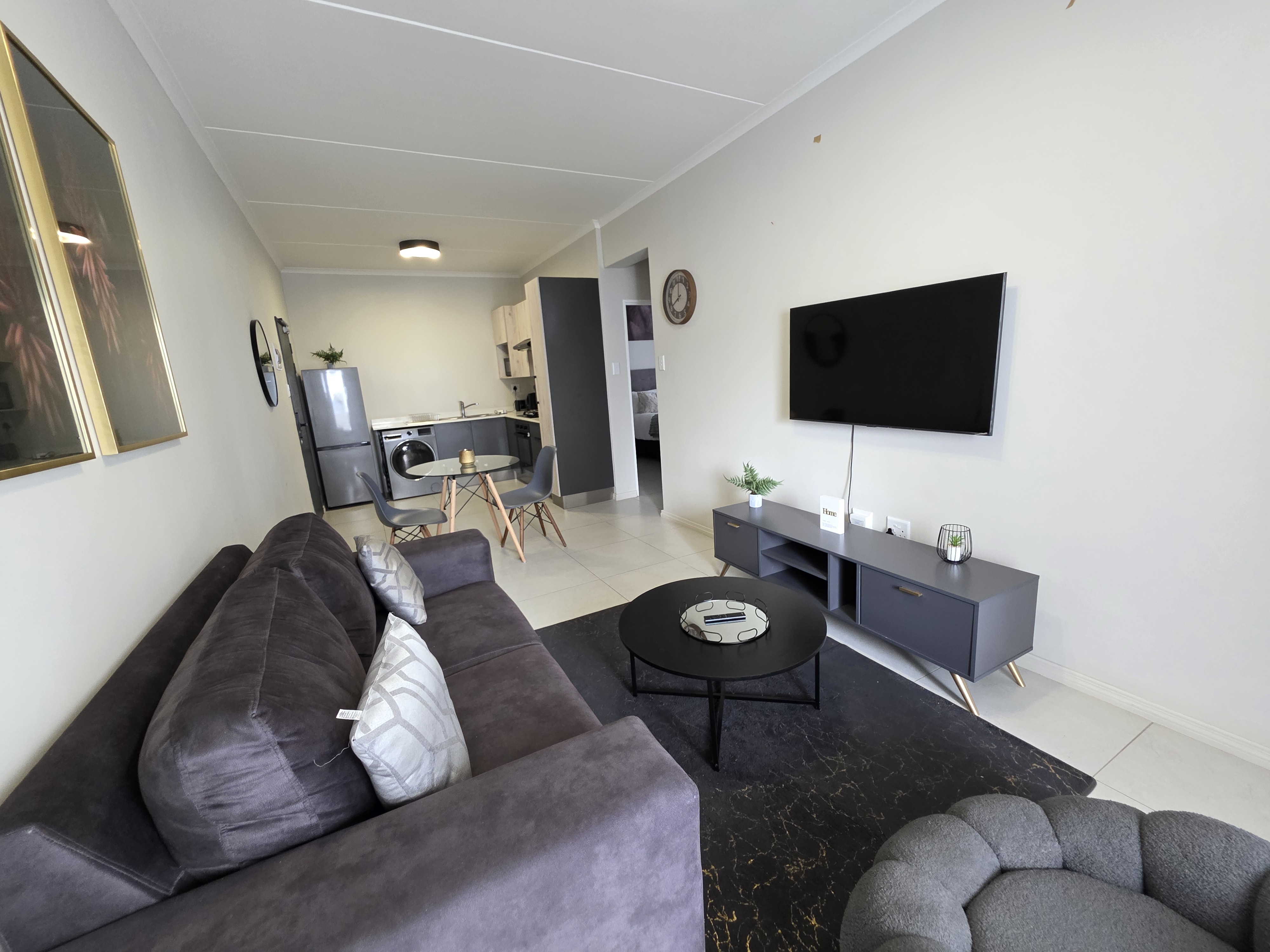 Experience the ease of modern living at 93 on New, a sought-after lifestyle estate perfectly positioned in the heart of Midrand. This fully furnished two-bedroom, two-bathroom apartment blends contemporary design with everyday comfort — the ideal lock-up-and-go home for those who value both style and simplicity. The light-filled open-plan layout connects the kitchen, dining, and lounge areas, creating a welcoming space that’s as functional as it is stylish. The kitchen features a gas stove, ample cabinetry, and premium finishes that make every meal feel effortless. The main bedroom offers a calm escape with an en-suite bathroom boasting both a shower and bathtub, while the second bedroom and bathroom are equally sleek — ideal for guests, family, or a comfortable work-from-home setup. Enjoy your own private balcony, the perfect retreat for morning coffee or winding down after a long day. Life at 93 on New comes with a full suite of lifestyle amenities, including: Gym and fitness centre Sparkling swimming pool Clubhouse and braai facilities Children’s play area and open park space 24-hour security with access control and patrols Fibre-ready connectivity Conveniently located close to Carlswald Lifestyle Centre, San Ridge Square, main transport routes, schools, and the Gautrain bus network, this address offers exceptional access to everything you need. Move-in ready and beautifully finished — this apartment combines location, comfort, and security in one perfect package. Contact us today to arrange your private viewing. 2 months deposit required prior to occupation.