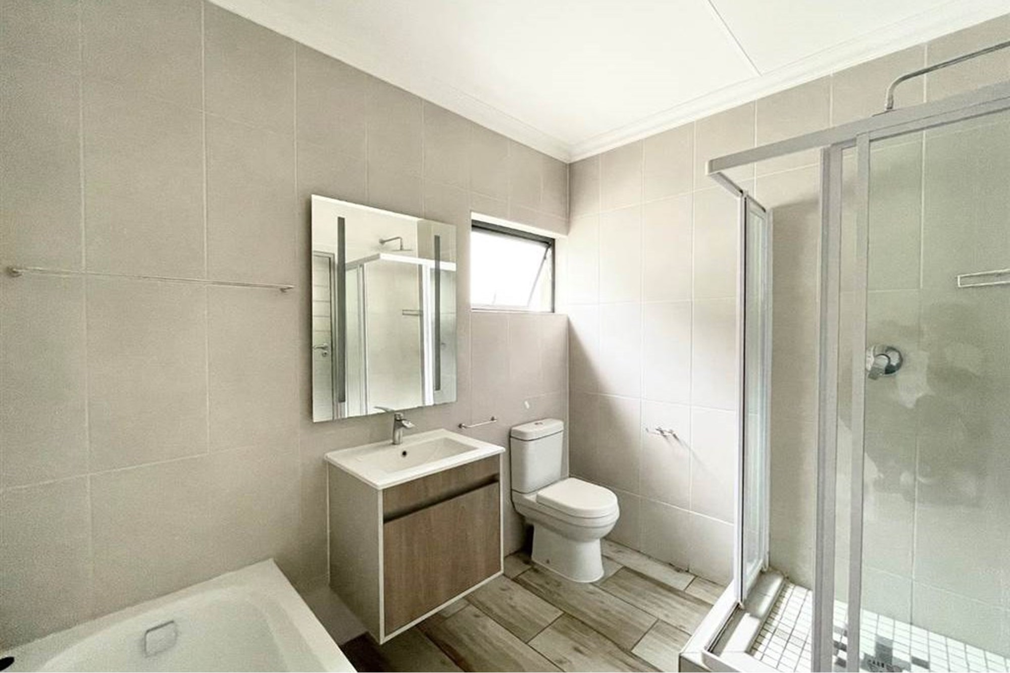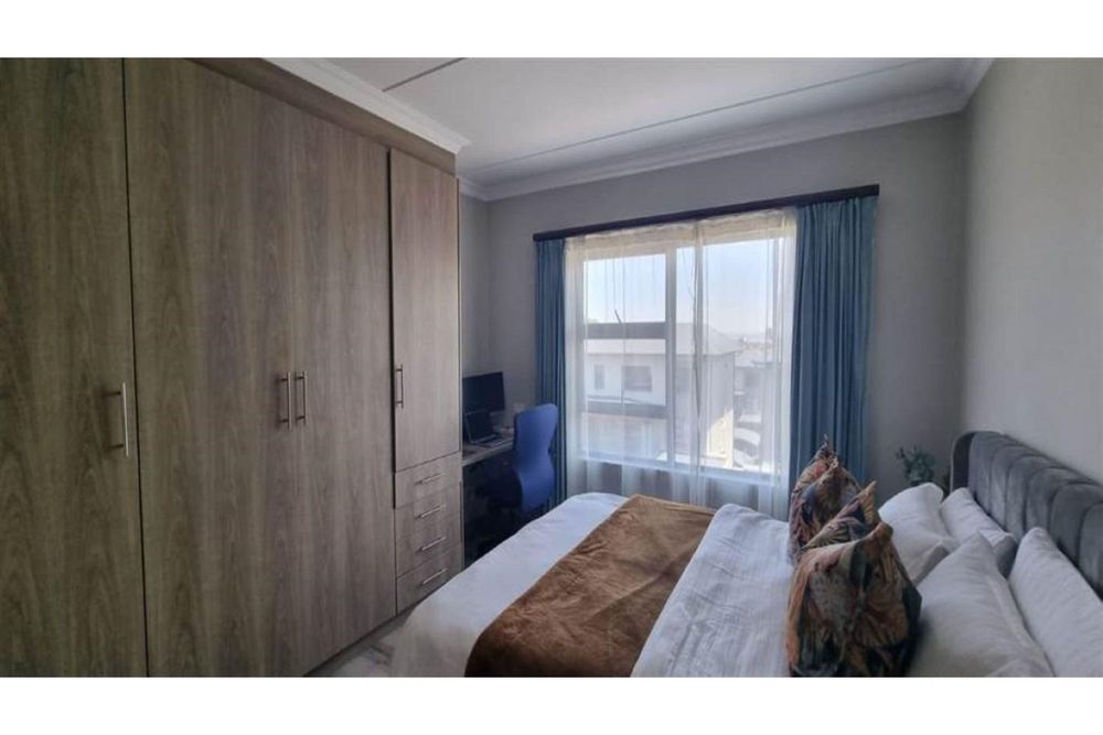 2 bedrooms, 1bath Top floor apartment in Carlswald, Midrand • Open plan Kitchen and lounge with sliding door leading unto the Balcony • Situated very close to Lifestyle Centre • Gas (stove and geyser), electricity, water via MeterShack • DSTV and WiFi-ready •24 Hour Secured access-controlled • Access to Lifestyle Centre and amenities