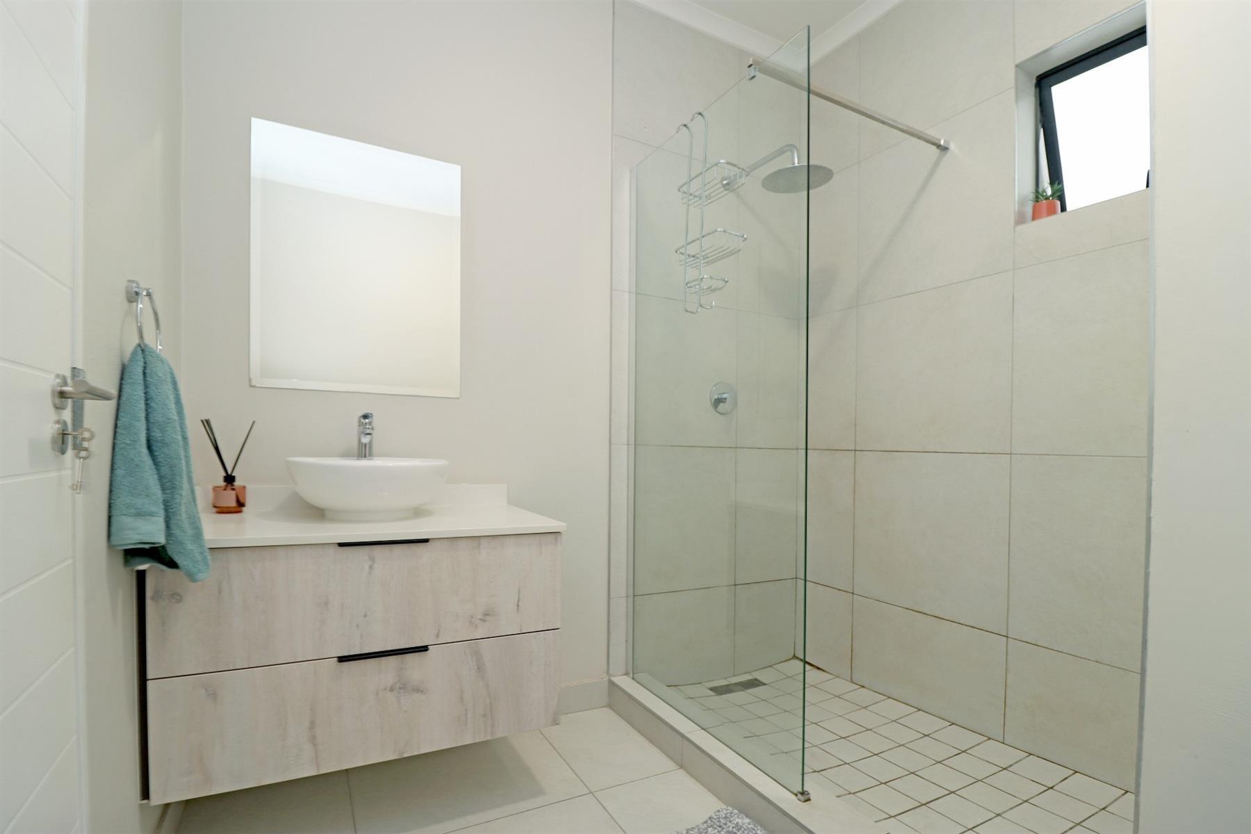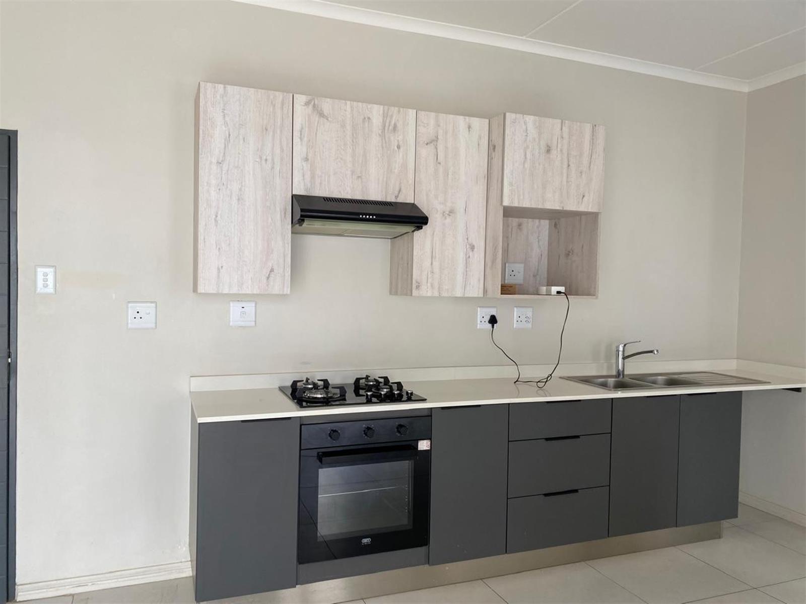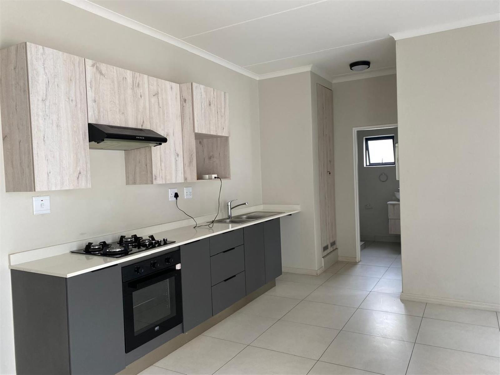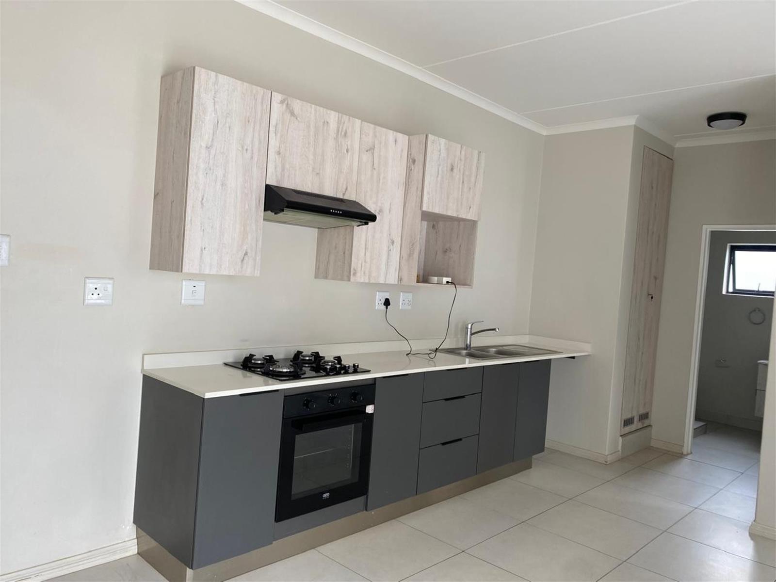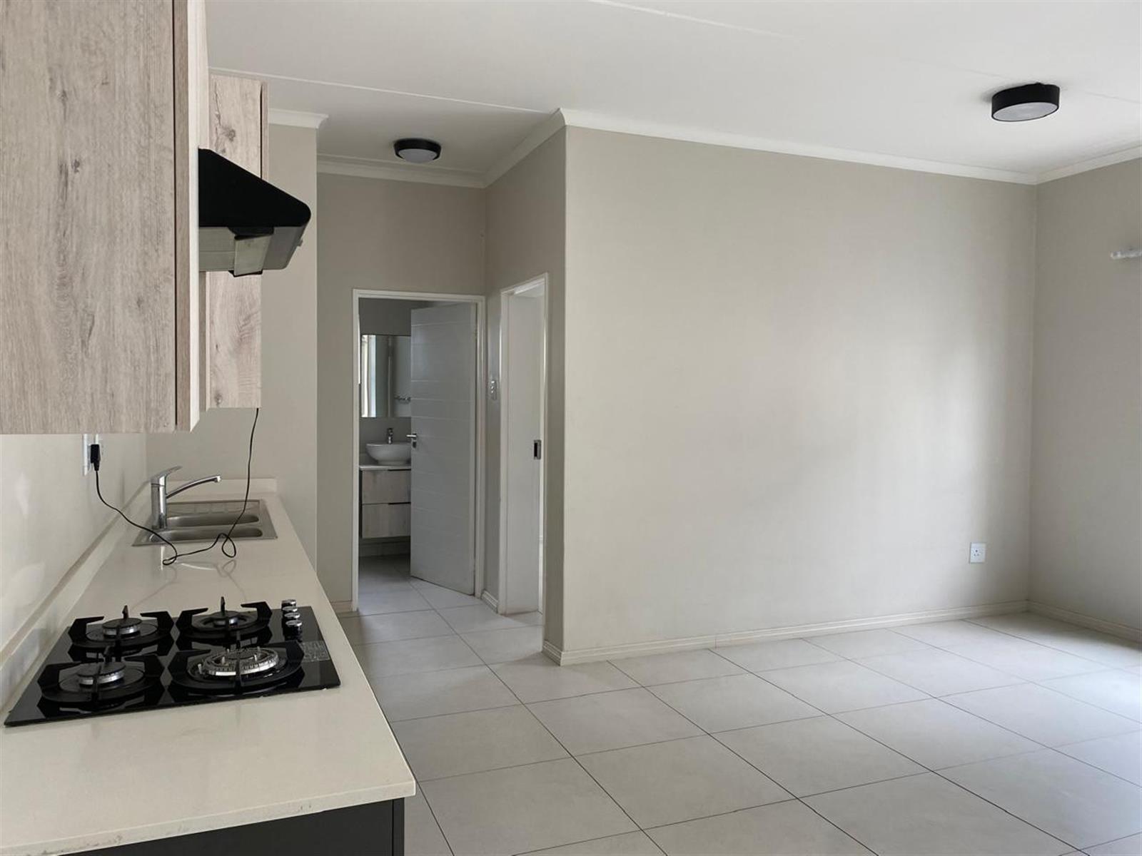 This modern ground-floor apartment features a bedroom with built-in cupboards and tiled flooring, a bathroom with a shower, toilet, and basin, and a spacious open-plan lounge and dining area. The kitchen is equipped with quartz countertops, a gas stove, and space for a single under-counter appliance. You also get a covered patio, perfect for relaxing or enjoying a morning coffee. The complex offers a swimming pool, clubhouse, gym, and braai area, making it an ideal spot for those seeking a comfortable and convenient lifestyle. The apartment is located just 300m from Carlswald Lifestyle Shopping Centre and 4km from Mall of Africa