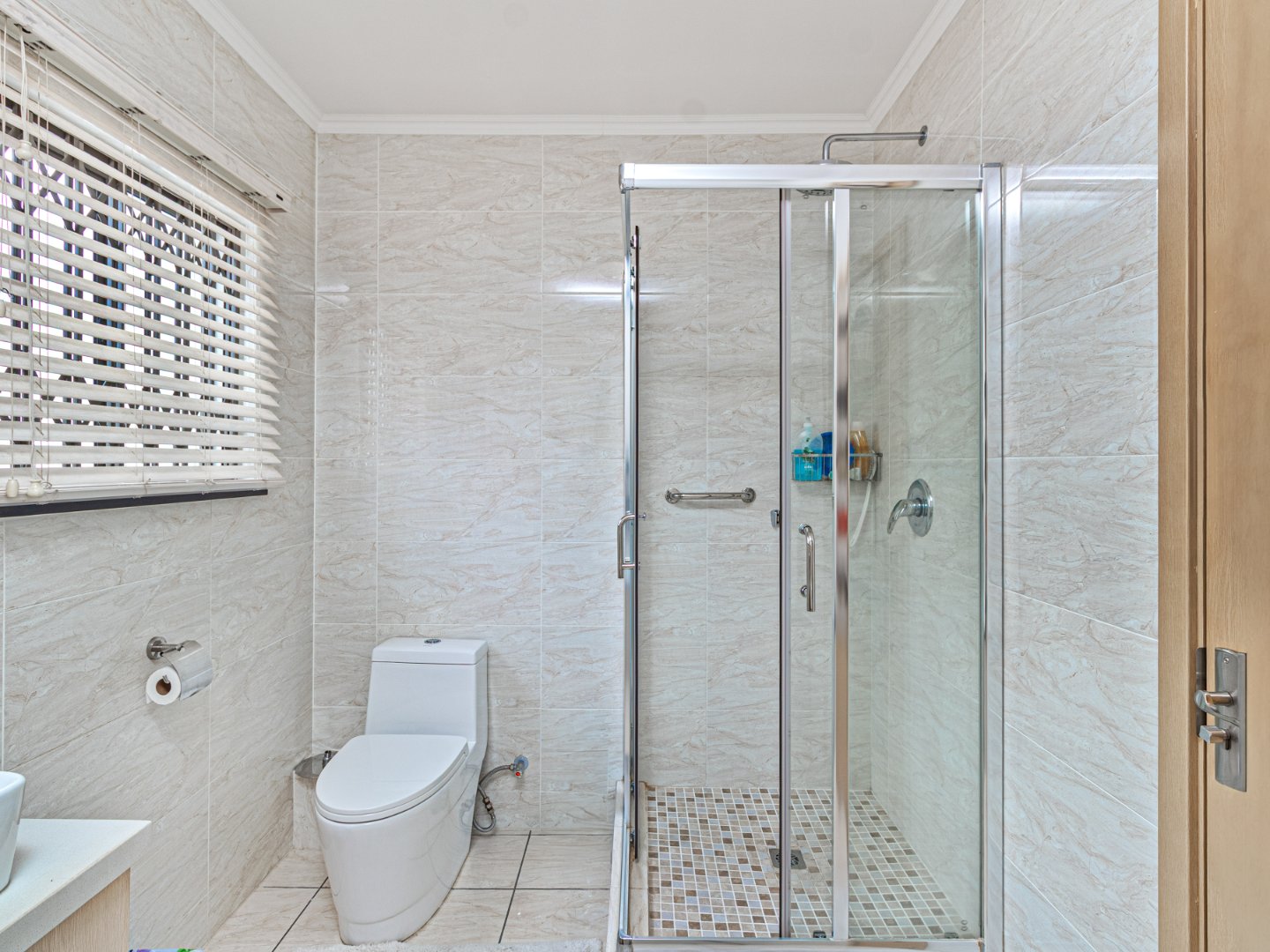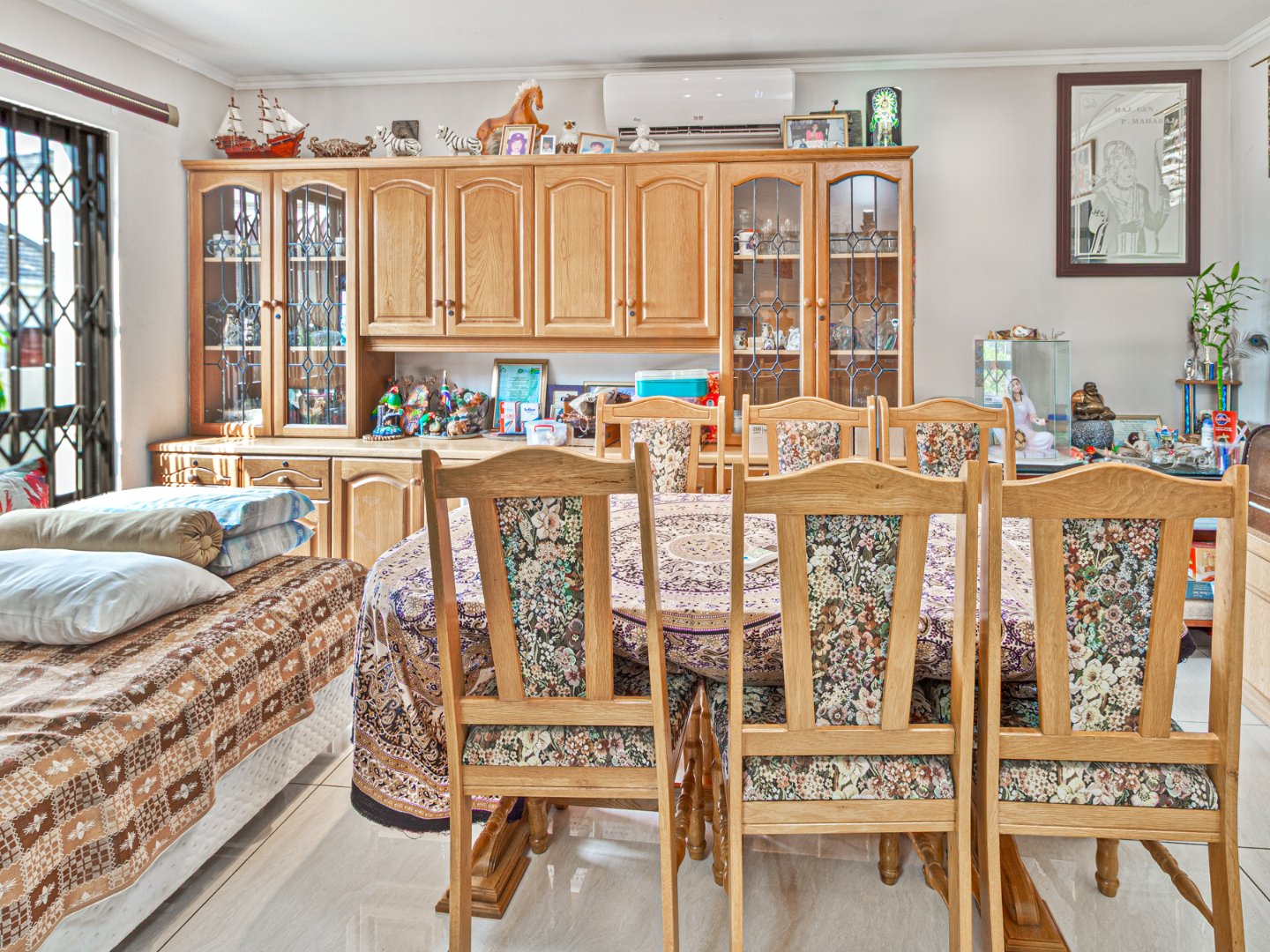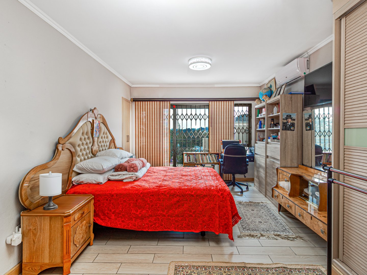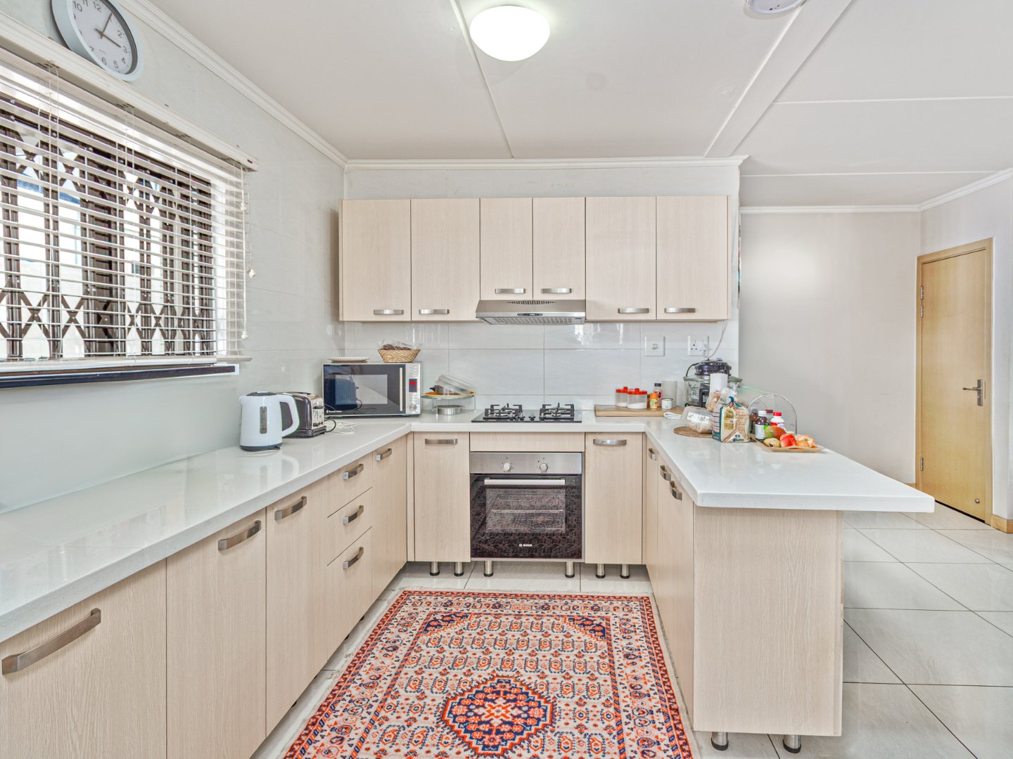 The open-plan living area has access to an office/study/prayer room that leads to a private outdoor space that has been tiled with a well-manicured garden space against the fully walled property(with beautiful fruit trees), perfect for outdoor entertainment or relaxing evenings at home. The 3 bedrooms upstairs are comfortable and offer plenty of closet space, with the main bedroom boasting a private balcony. All bedrooms have air conditioning units, including the downstairs dining area. Underfloor heating system. Kitchen with scullery having loads of cupboards.