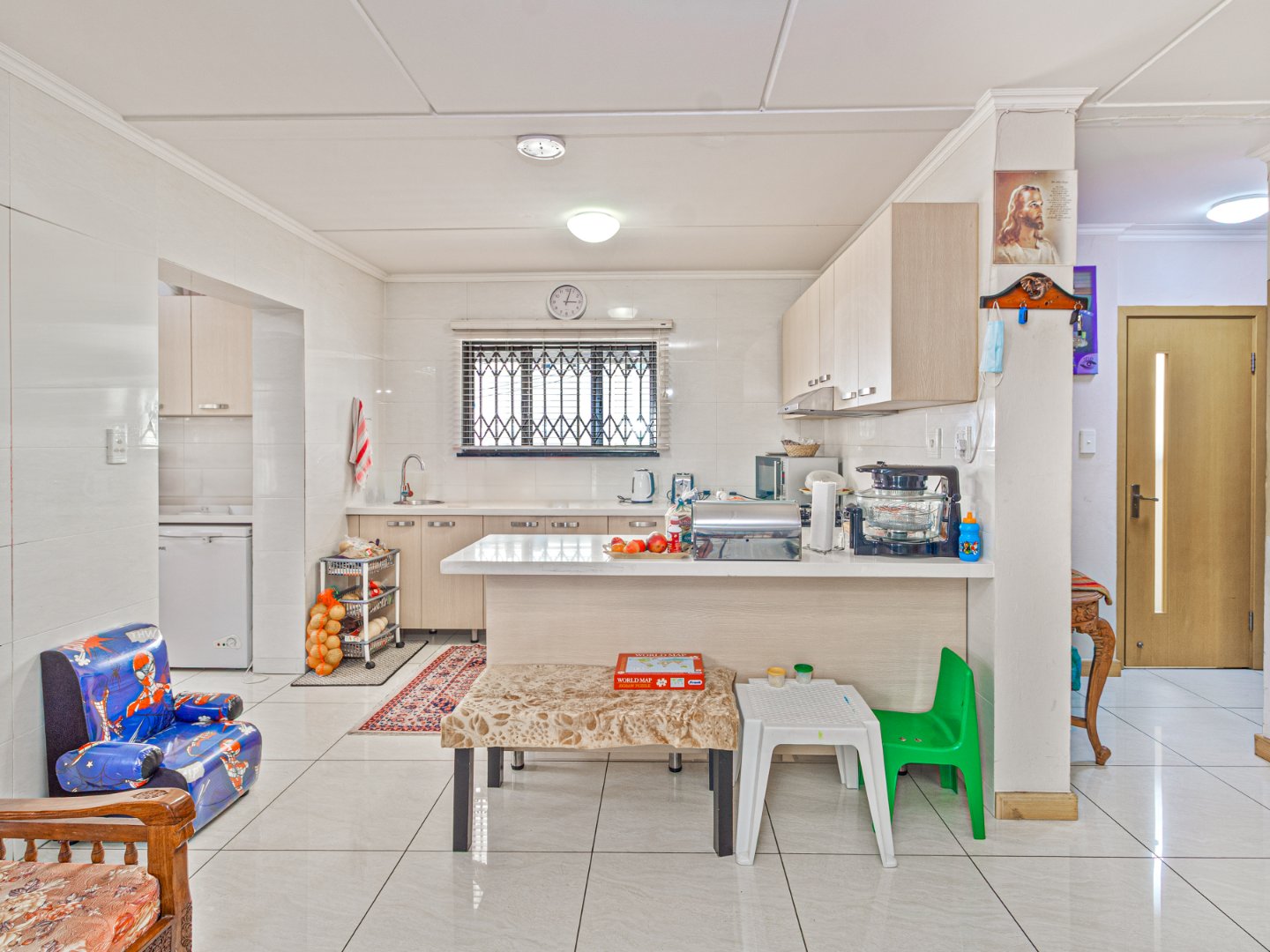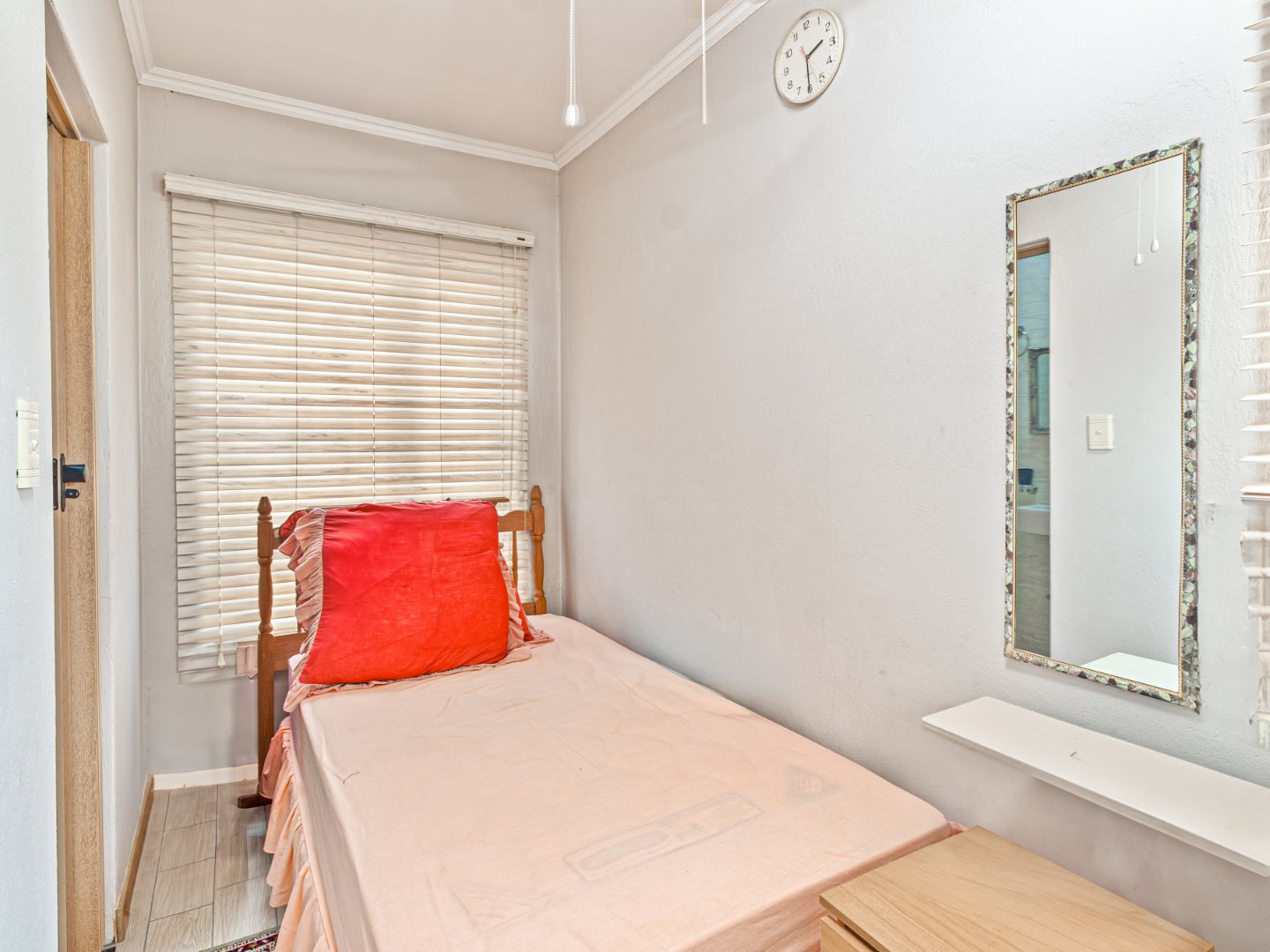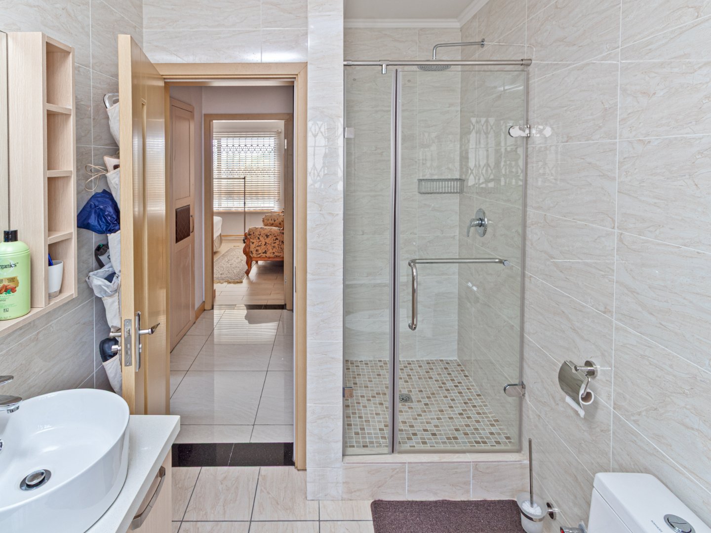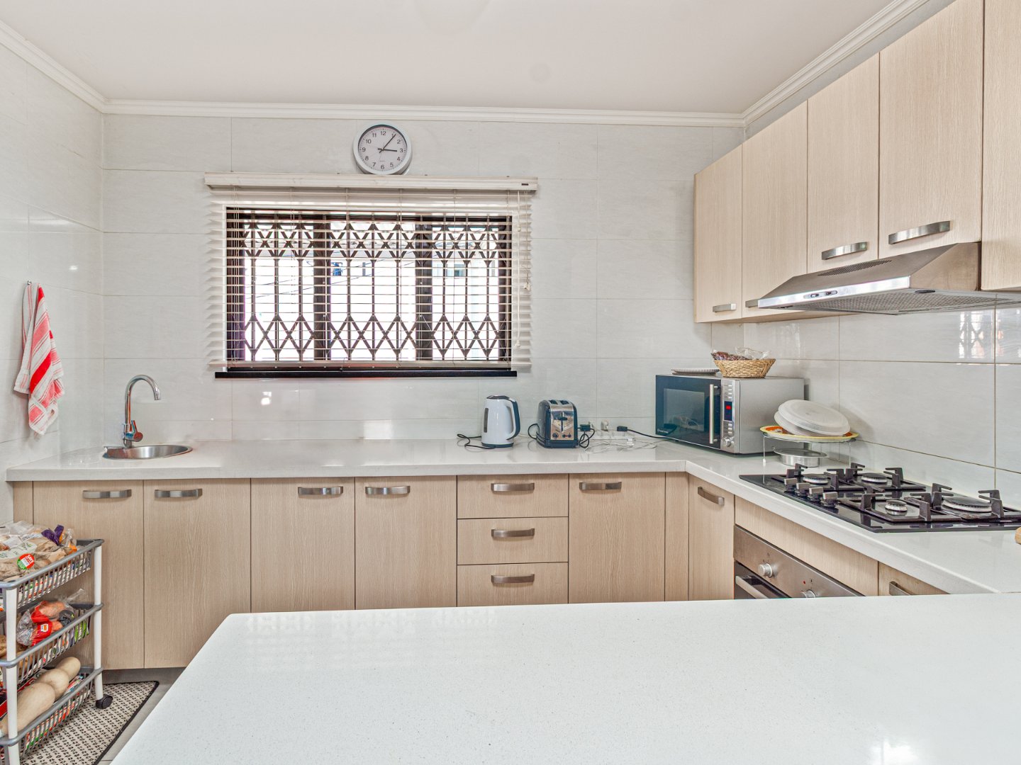 The open-plan living area has access to an office/study/prayer room that leads to a private outdoor space that has been tiled with a well-manicured garden space against the fully walled property(with beautiful fruit trees), perfect for outdoor entertainment or relaxing evenings at home. The 3 bedrooms upstairs are comfortable and offer plenty of closet space, with the main bedroom boasting a private balcony. All bedrooms have air conditioning units, including the downstairs dining area. Underfloor heating system. Kitchen with scullery having loads of cupboards.