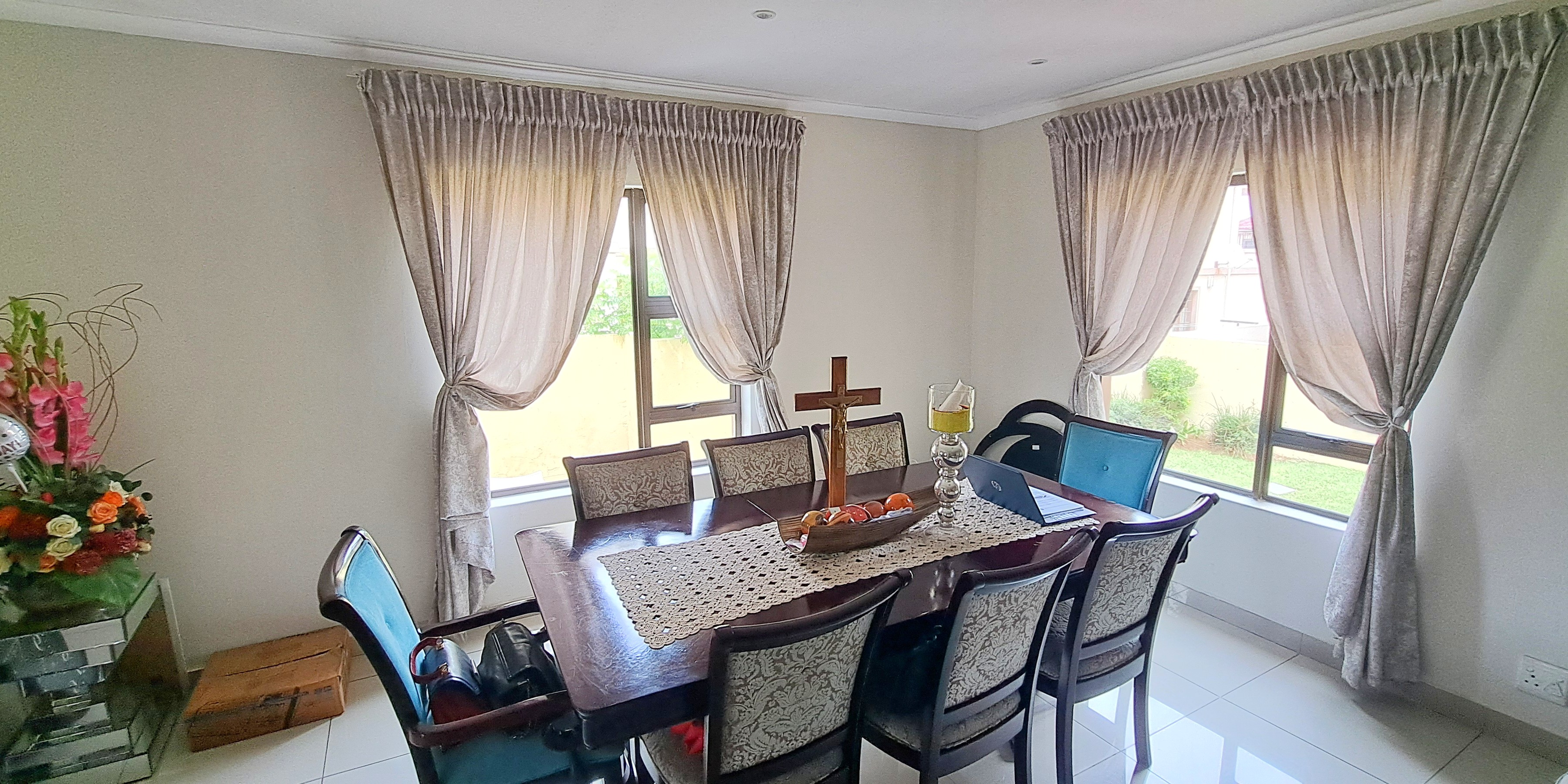 Welcome to Westbrook, a private, tucked away security estate, conveniently located close to Midrands top schools, shopping amenities and major travel routes. This full title, double story family haven offers its new family all the space they may need. Upon entering you are welcomed by the following features. - Large and open living areas. - Dining area currently occupied by a 8 seater dining room table. - Spacious kitchen with Granite counter tops, ample cupboard space and space for a double door fridge. - Pantry - Guest bathroom - Entertainment room with built in fireplace. - Double automated garage with access into the property. What upstairs offers... - 4 bedrooms - 2 bathrooms (1 full family bathroom and 1 full En-suit bathroom in the main bedroom). - Balcony leading off main bedroom. - Pajama lounge. Additional Features - Additional outside room with private bathroom. - Spacious private garden. - 24 Hour Access Control - 24 Hour Security Guards Arrange your private viewing today and come and experience the convenience this property has to offer.