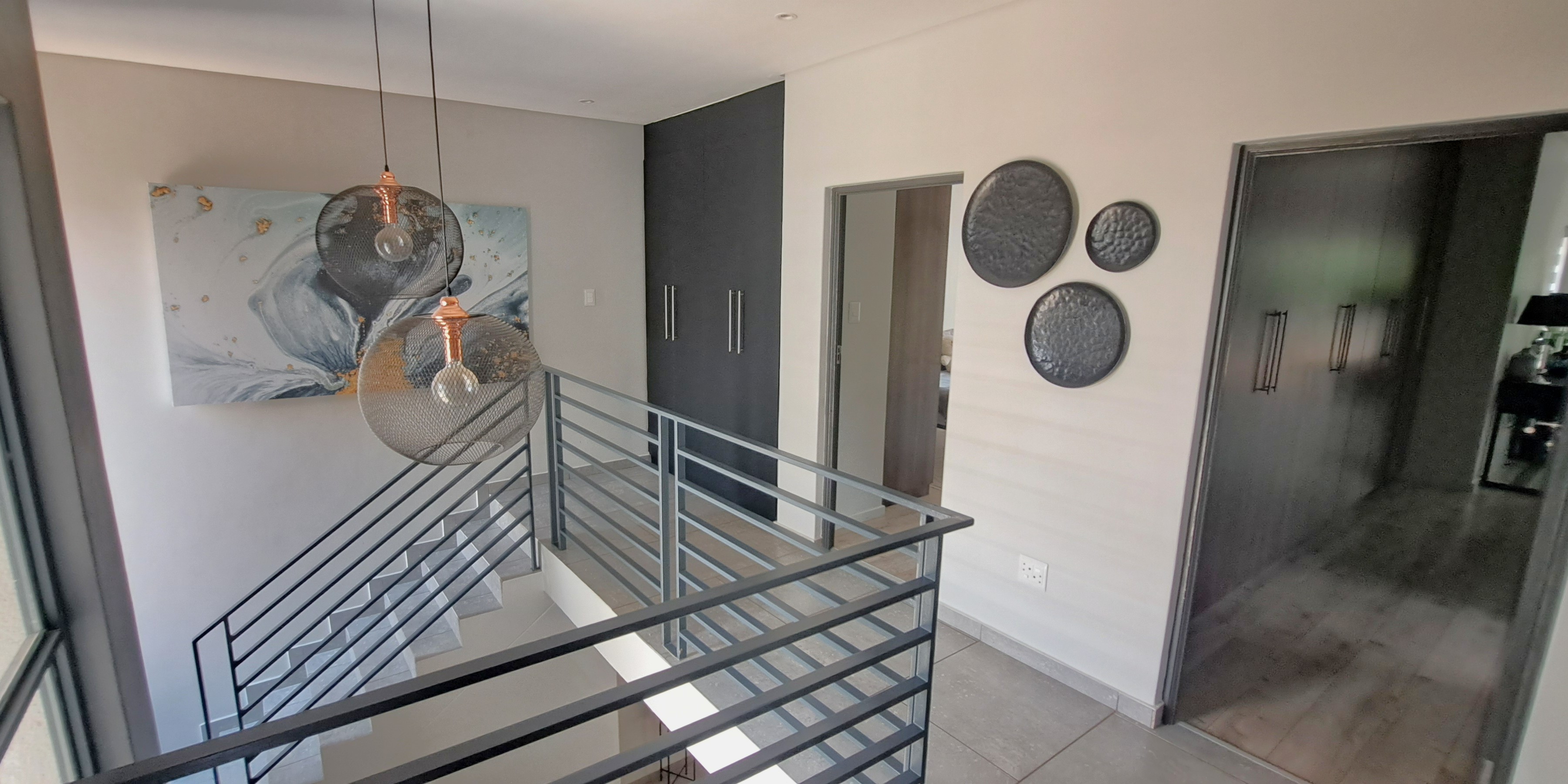 Welcome to The Hutton, an upmarket, family friendly security estate, conveniently located close to Midrands top schools, shopping amenities and major travel routes. The estate was completed in 2020 and offers its new family a move in ready home. Upon entering you are welcomed by the following features. - Large open plan living areas. - Dining area suitable for an 8 seater dining room table, - Which opens up onto your patio, - Overlooking your lush garden and the beautifully landscaped greenbelt. - A spacious kitchen with infinty counter tops, 5 burner gas stove, pantry and seperate space for a double door fridge. - Scullary / Laundry with space for 2 undercounter appliances and access to the side garden. - Guest bathroom. - Double automated garage with access into the property. What upstairs offers... - 4 spacious bedrooms - 3 bathrooms (1 fully fitted family bathroom and 2 En-suit bathrooms). What the estate offers... - Pool and Clubhouse - Gym - Scerene walking trail through the greenbelt with seating areas overlooking the koi pond. - Ample visitors parking. - Pet friendly. - 24 Hour access control. - 24 Hour security guards. Arrange your private viewing today and come and experience the lifestyle this property has to offer.