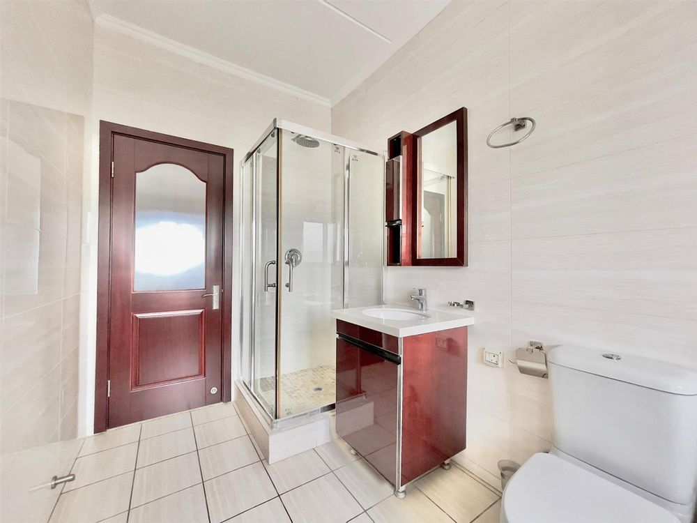 Ground Floor: The ground floor is designed for effortless entertainment, with an open-plan kitchen that showcases exquisite modern fitted cupboards, sleek granite countertops, and a stylish island. The kitchen seamlessly flows into the spacious lounge, which offers direct access to the patio. The perfect spot for relaxation, the patio features a standard-sized swimming pool and breathtaking views of the surrounding area.