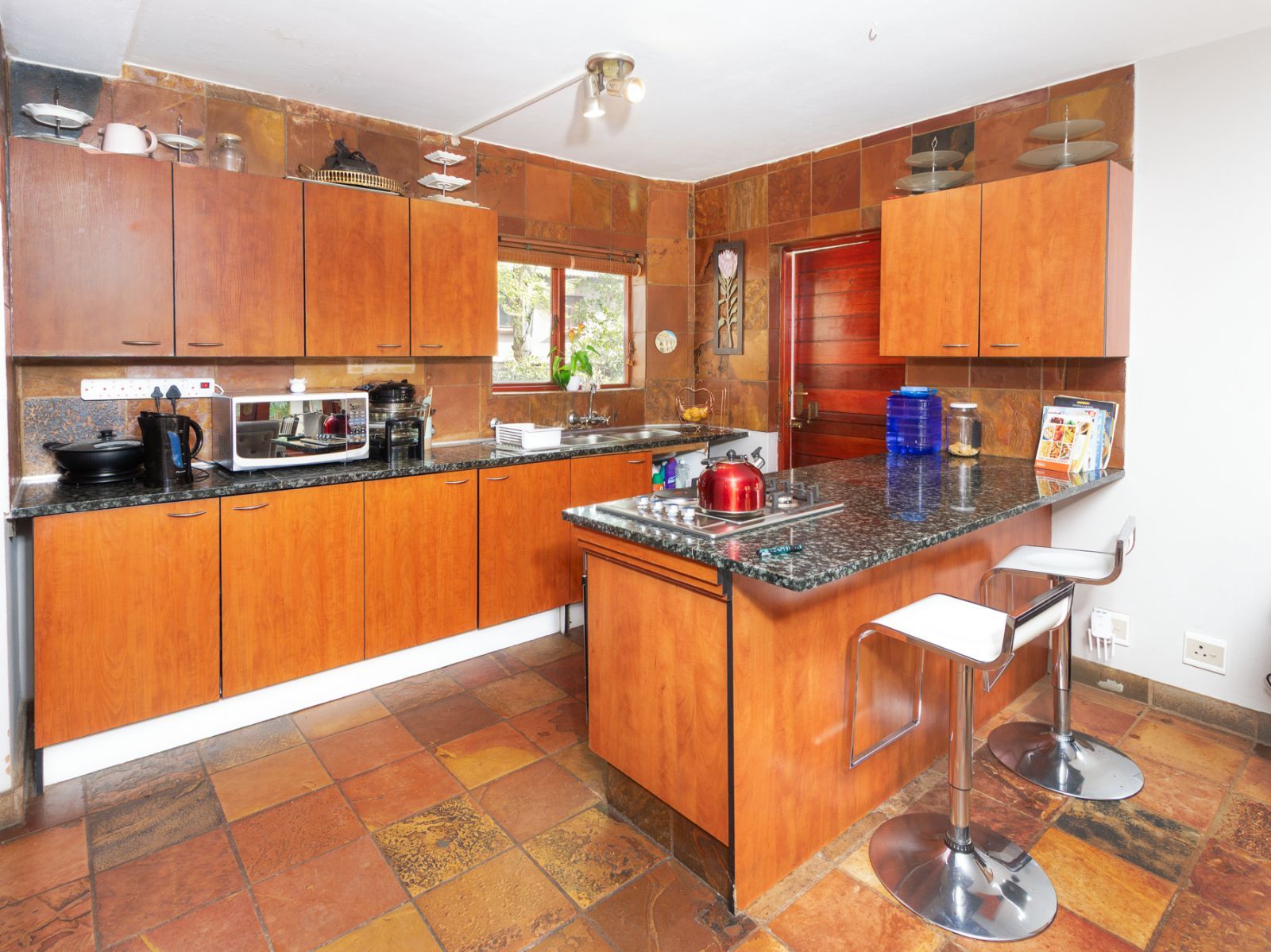 -Open-plan kitchen with space for double-door fridge and two appliances