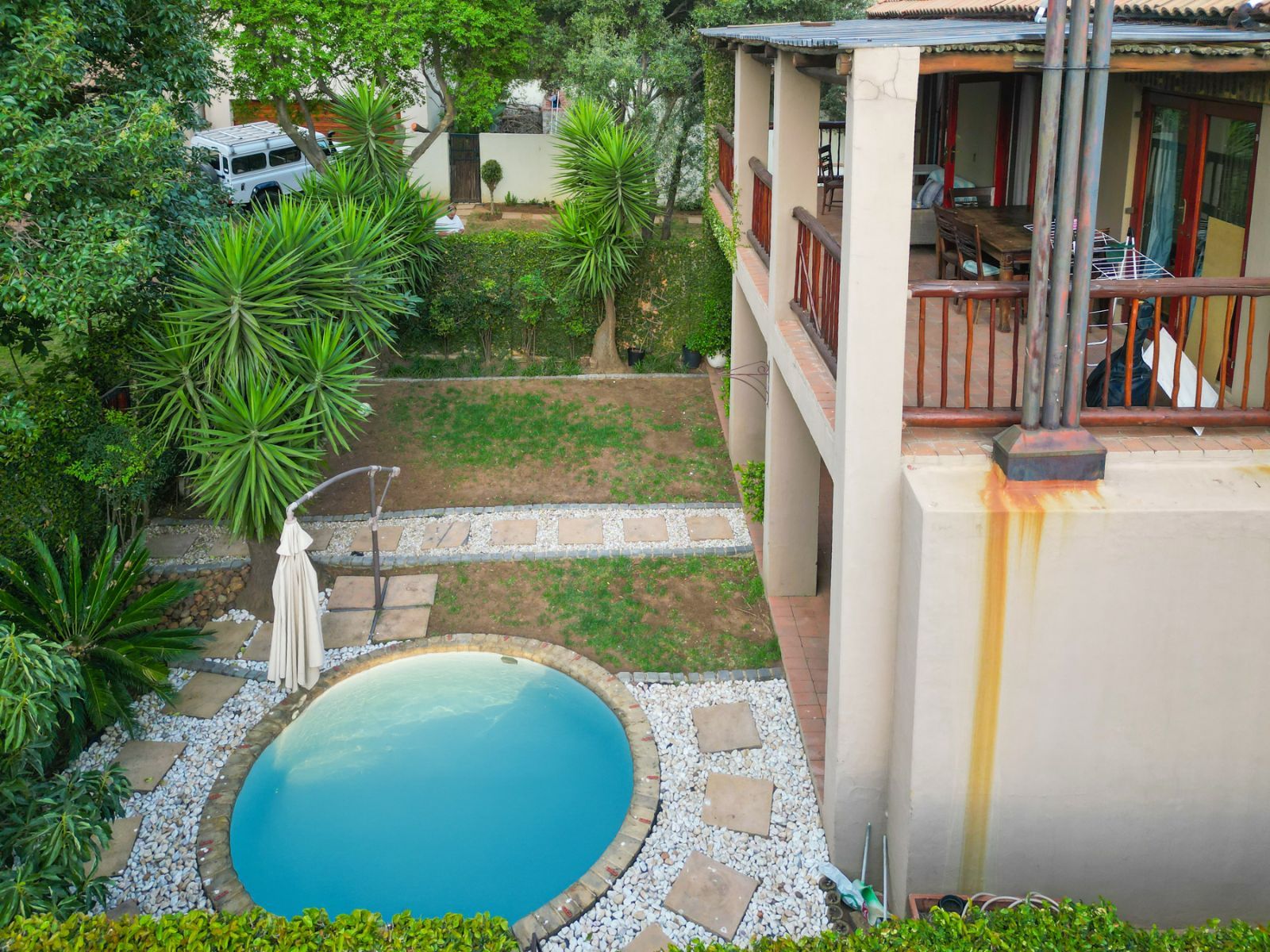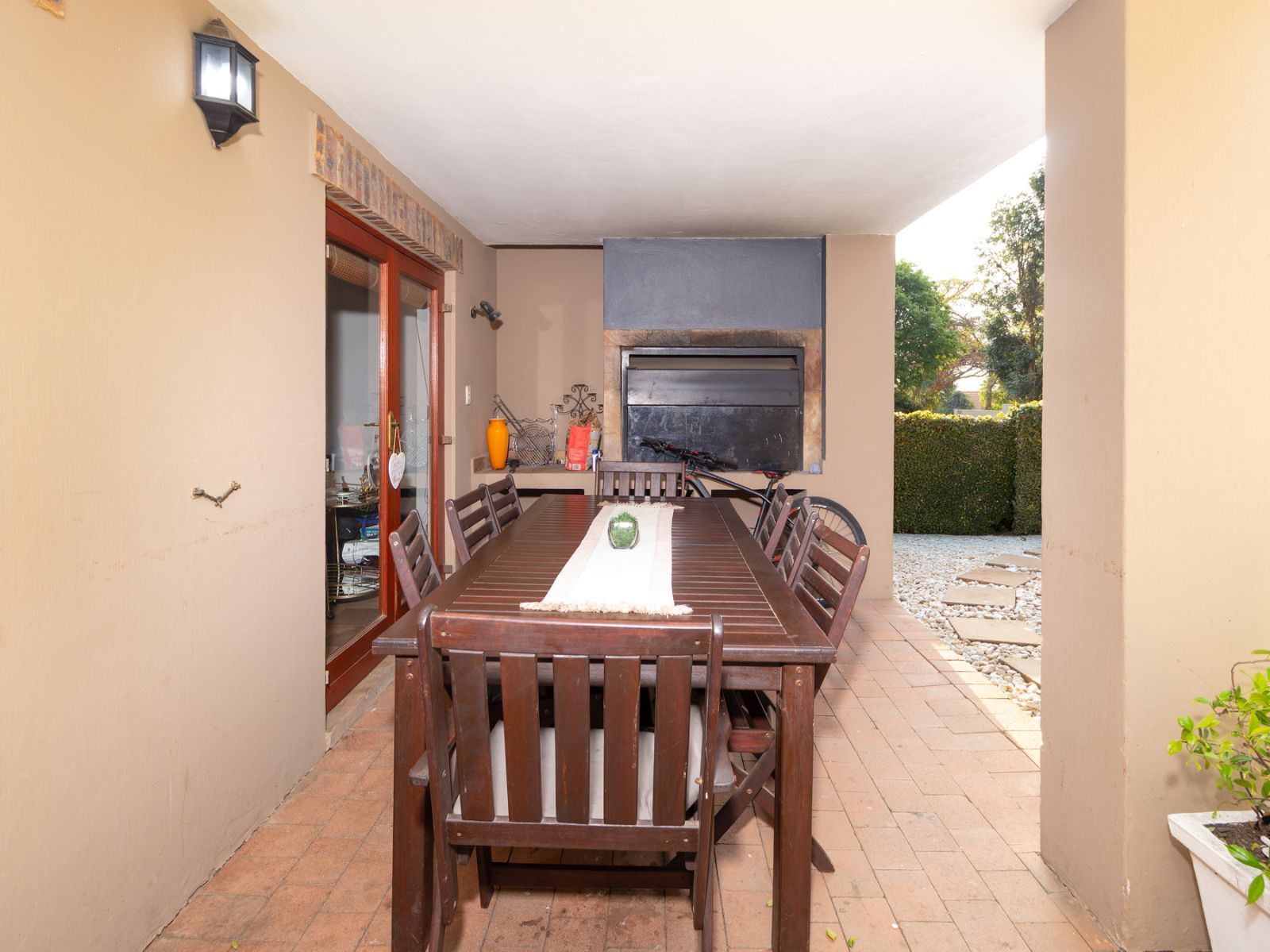 -Covered patio and large private garden with splash pool — ideal for entertaining or relaxing