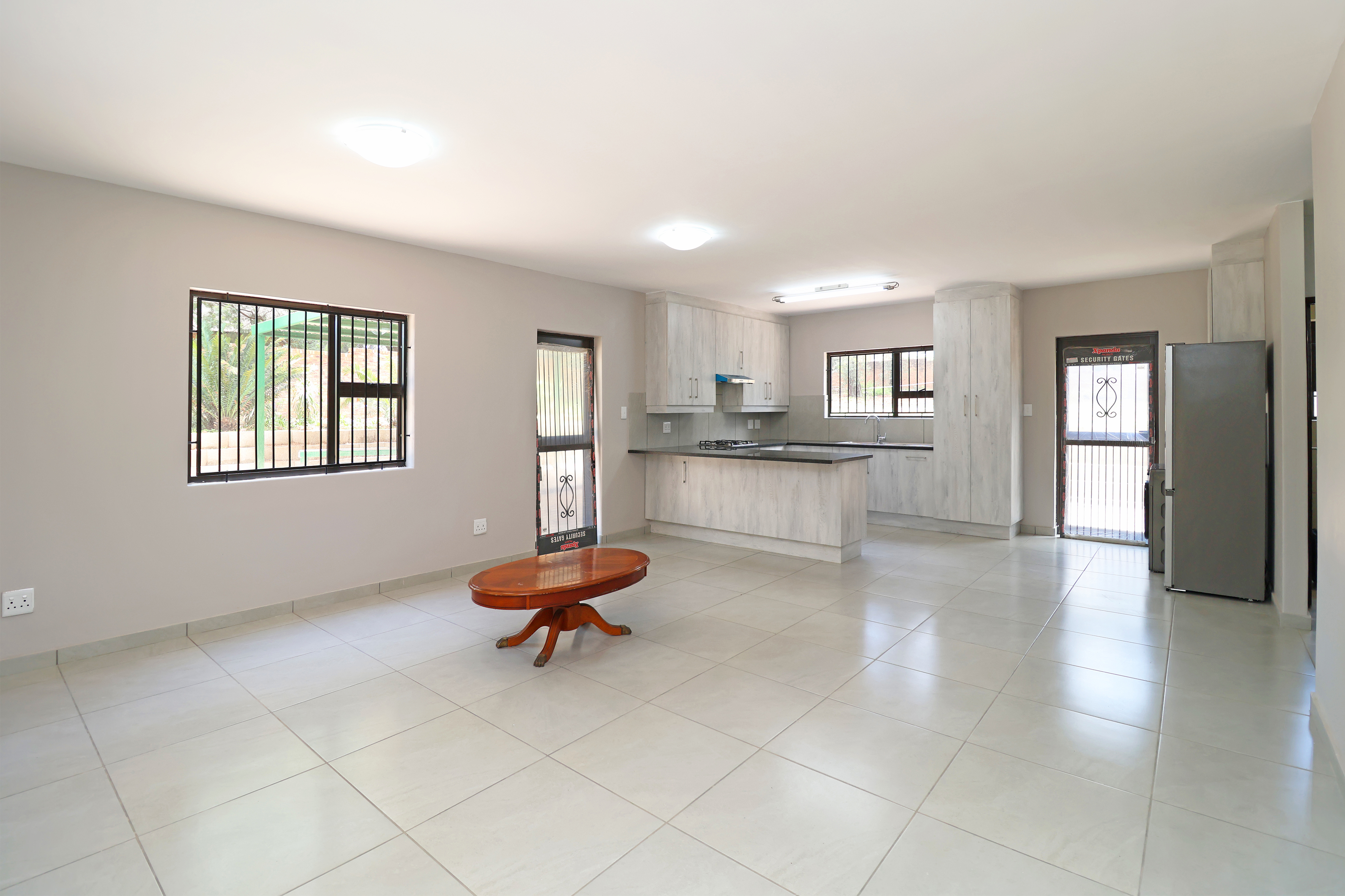 Accommodation offers a modern open plan kitchen with ample cupboard space, one under counter appliance and space for a double door fridge. Spacious combined dining room and lounge space with glass door leading unto closed patio. Spacious bedrooms with built in cupboards.