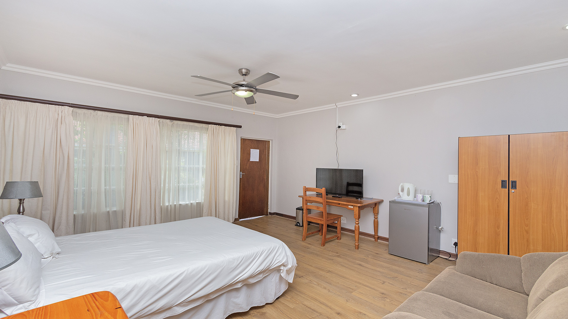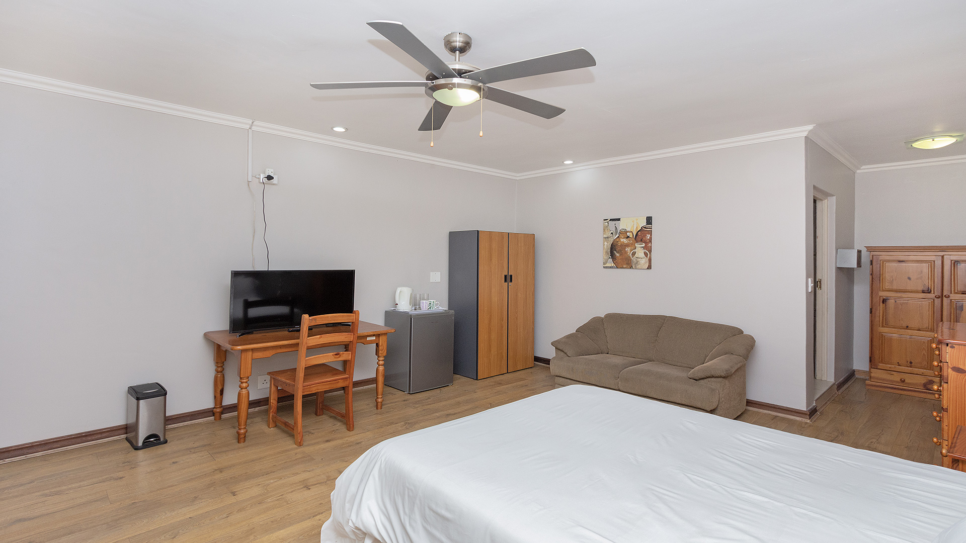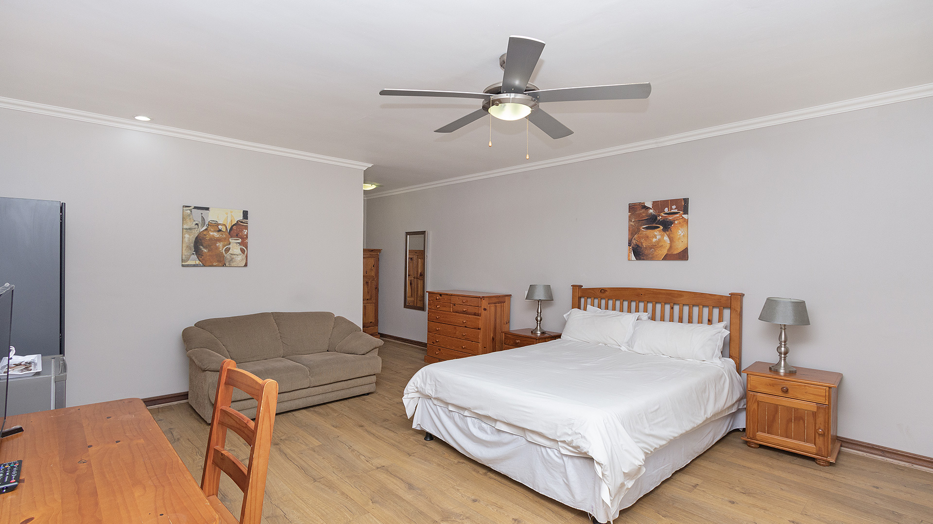 Spacious furnished bachelor unit set on a plot with other dwellings. Right behind Curro school and within 5km radius from Mall of Africa, Netcare Waterfall and Kyalami race course. Easy access to major roads. Safe and secure secluded environment. Can accommodate 2 adults or mother and 2 children. Ideal for professionals or newly weds. Fully equipped communal kitchen and laundry on. Swimming pool, Lapa with entertainment area and a tennis court open for residents and guest to use. Prepaid electricity. Well manicured garden with mature trees. Has a country feel with lots of bird life. Borehole on site and JoJo tanks for water backup when its need. Parking available. Rent and deposit required upfront.