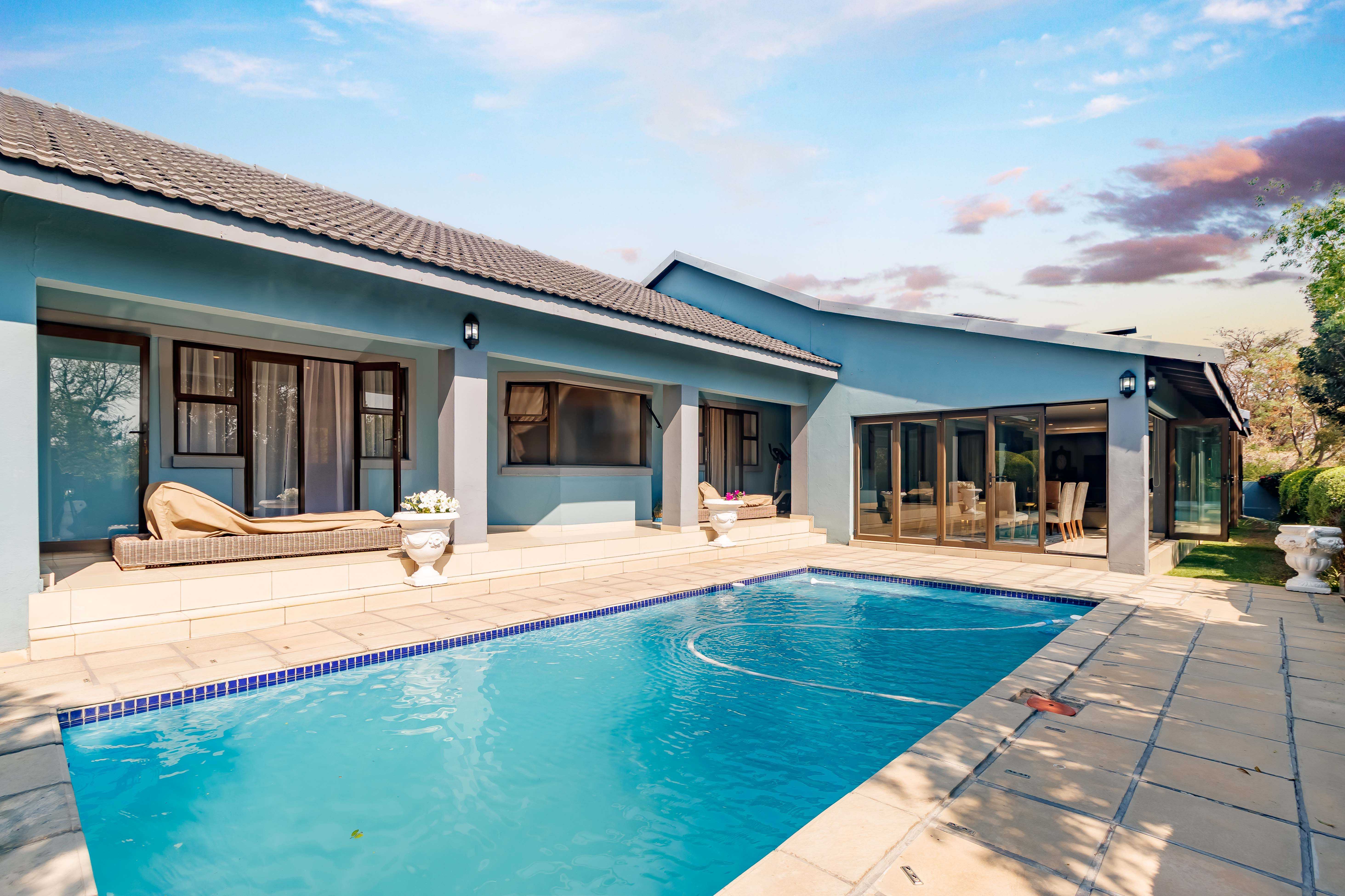 - Spacious Bedrooms with Poolside Bliss: Three generously sized bedrooms open directly onto a sparkling blue pool, creating an inviting retreat for relaxation and entertainment. Imagine waking up to the gentle shimmer of water and stepping out for a morning swim!