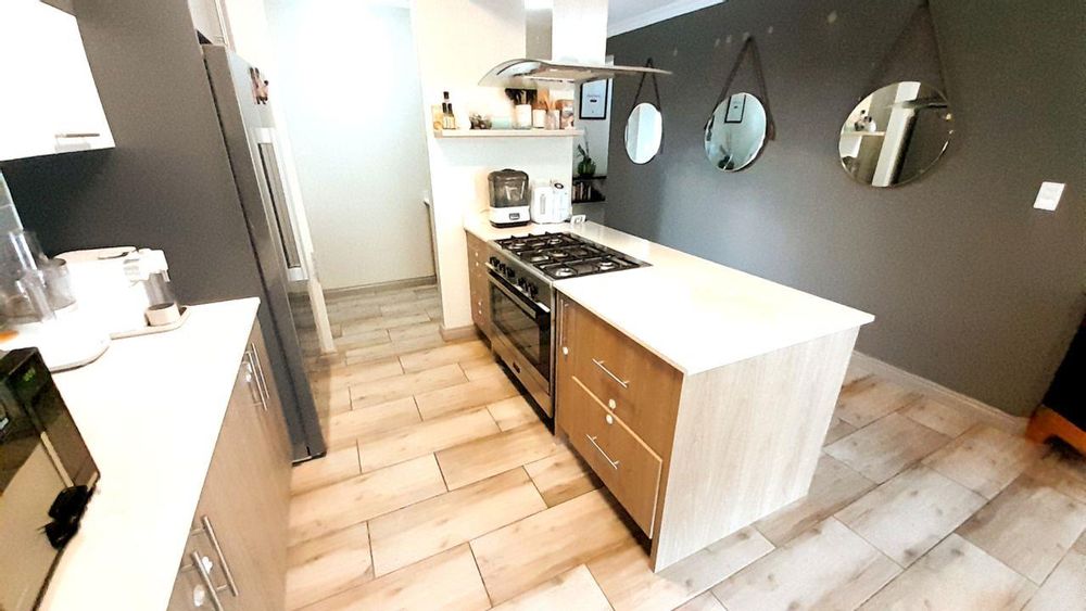The open plan kitchen is adorned with exquisite finishes, including a stunning granite top kitchen unit, a built-in oven, and a stove. The spacious house is fully tiled, featuring one elegant bathroom and one ensuite. The bedrooms are equipped with beautiful state of the art built-in wardrobes.