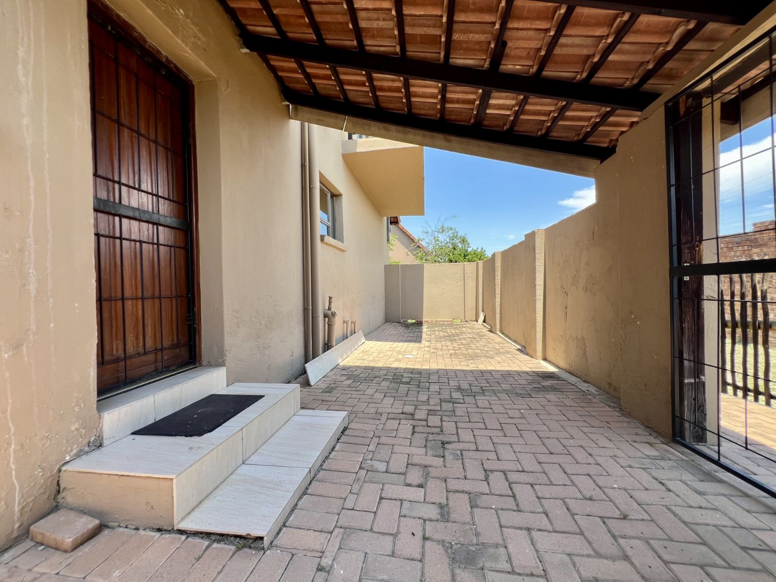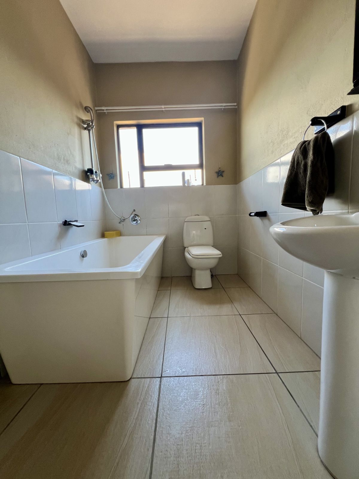 The home offers three spacious bedrooms and two bathrooms, comprising one en-suite bathroom on the upper level and a separate bathroom with toilet on ground level. Aluminium window frames throughout enhance the clean, modern aesthetic.