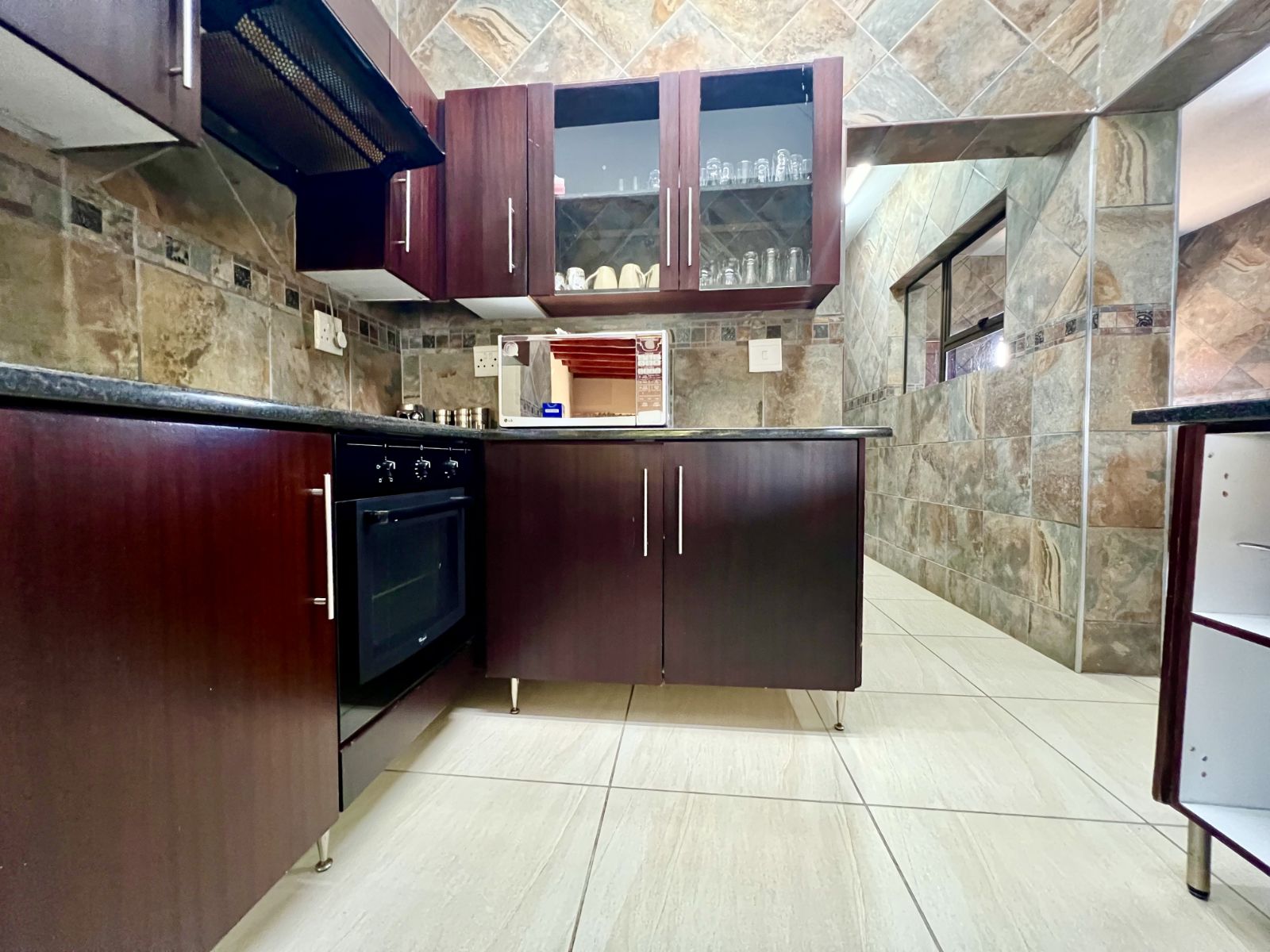 A generous open-plan kitchen with granite countertops, breakfast nook, built-in oven and separate scullery forms the heart of the home.