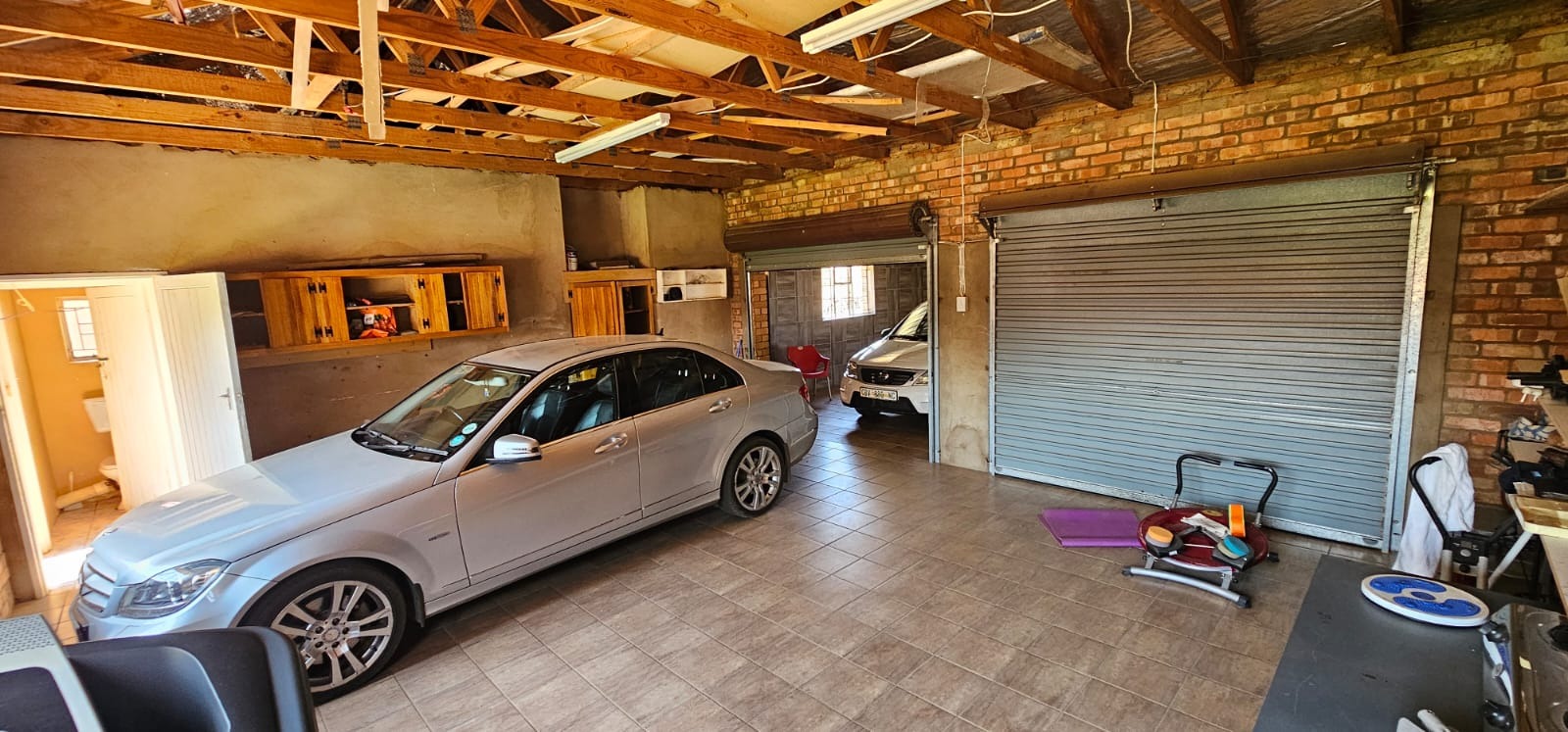 The garage has space for 4 vehicles. It leads into the house as well as to a separate storage room and outside toilet.