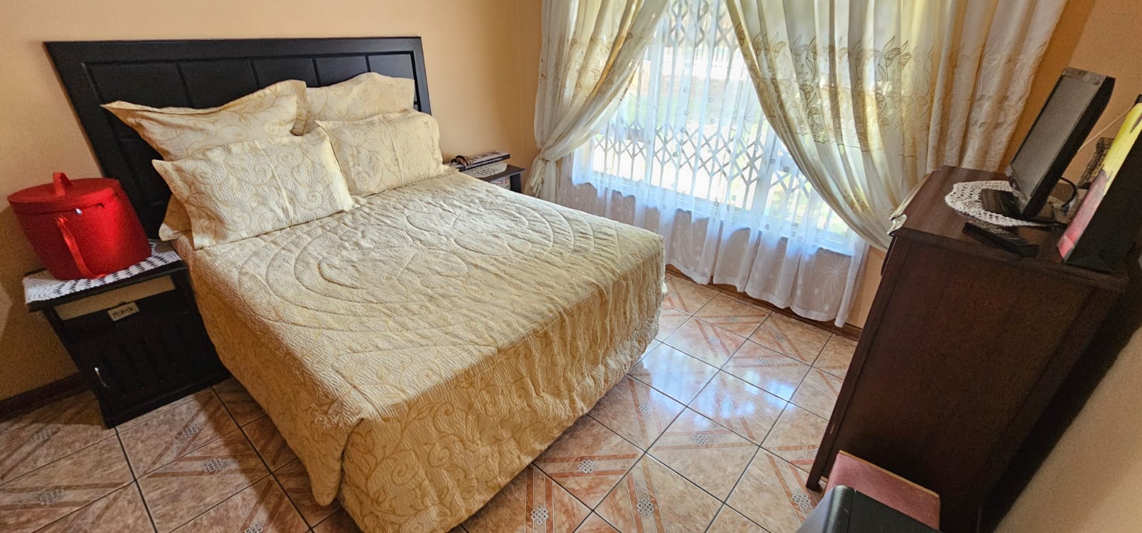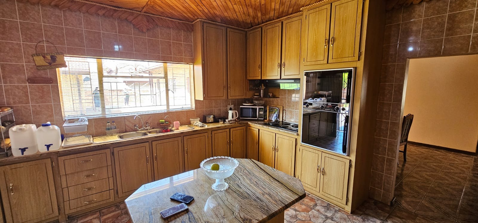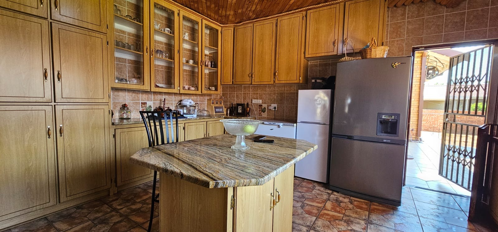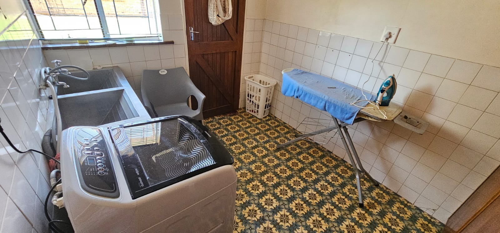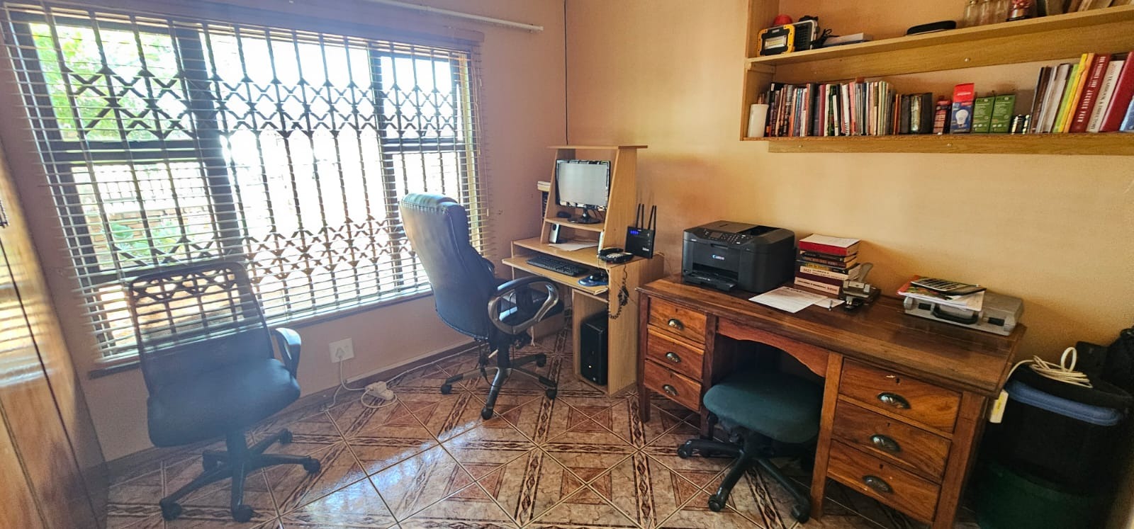 Cook up a storm for family and friends in the large modern kitchen equipped with granite countertops, lots of counter space with an under counter oven, a hob and an extractor fan. The kitchen walks out into the spacious dining area, which leads to the lounge and family room on opposite ends. You also have a study with built in cupboards. A convenient laundry room is also included , ensuring your home remains neat and organized.