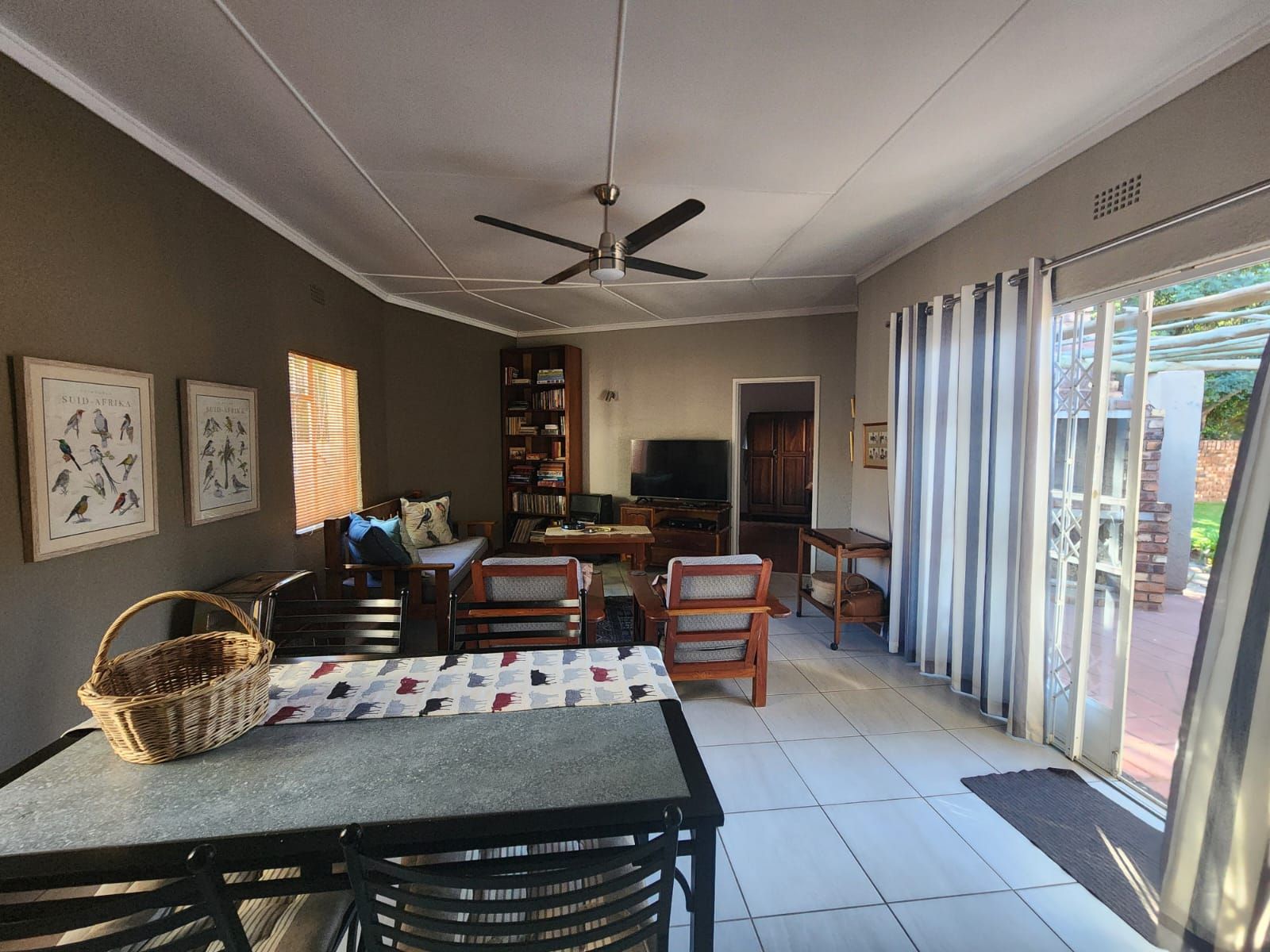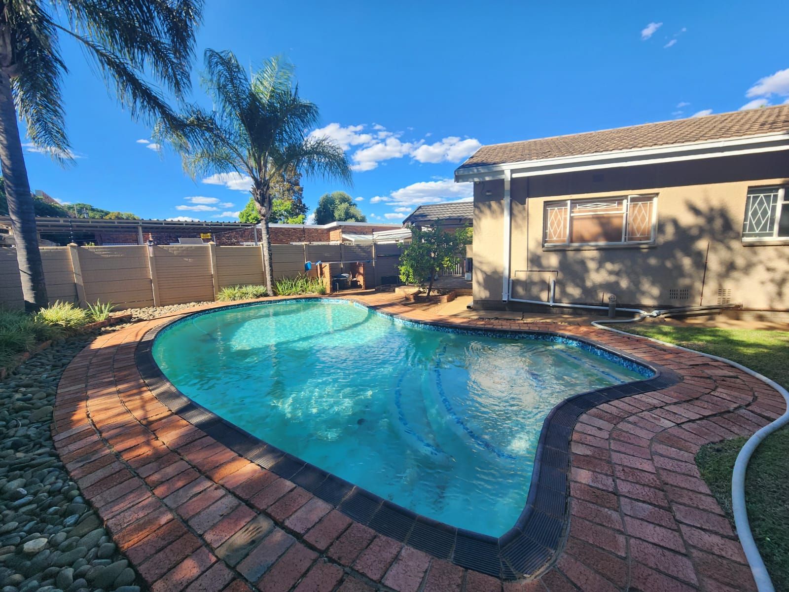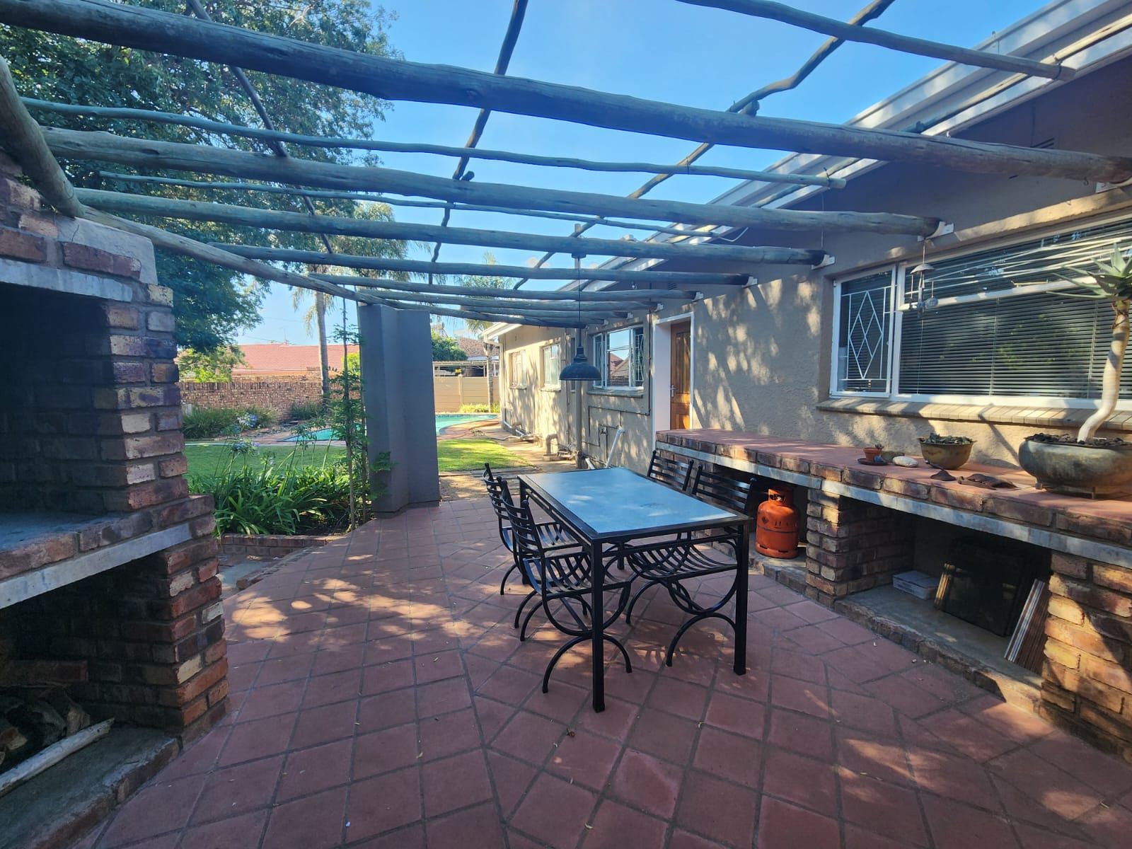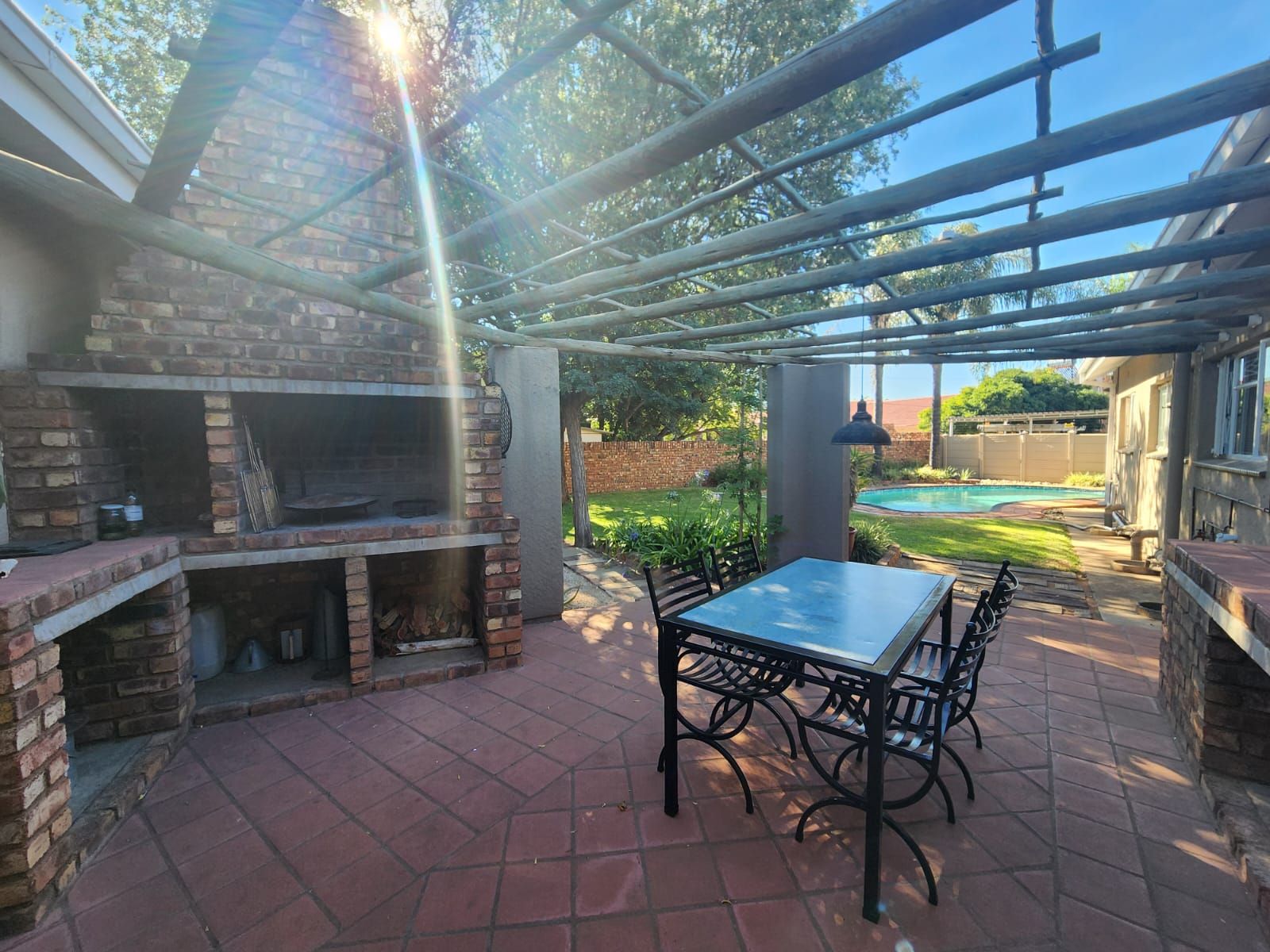 Additional features include a study and guest toilet. The covered patio with built-in braai overlooks a swimming pool and expansive garden—ideal for family living and entertaining.
