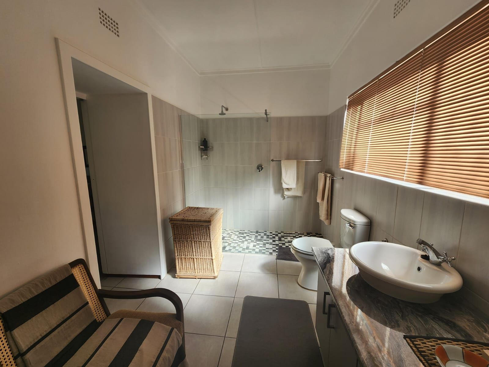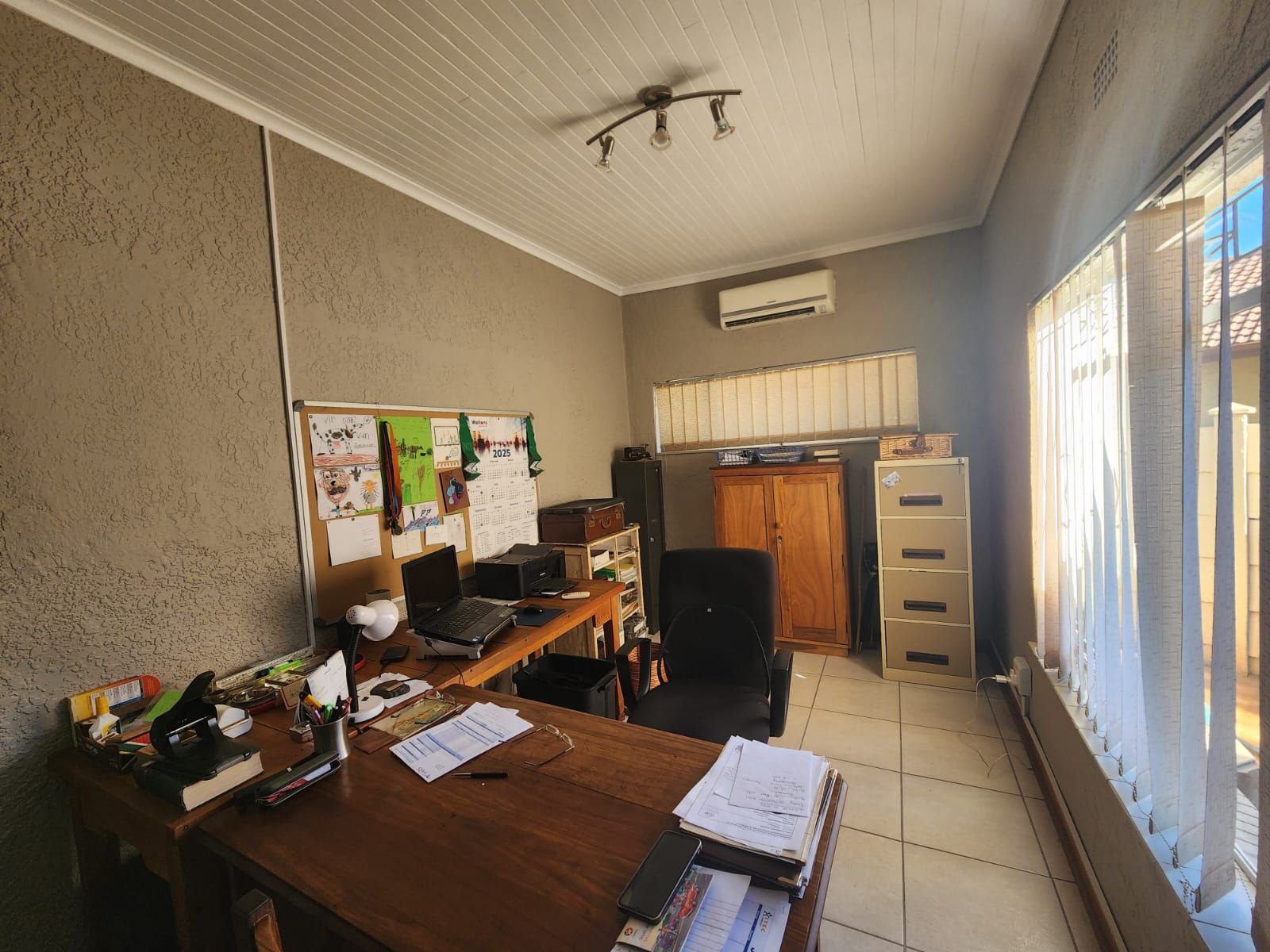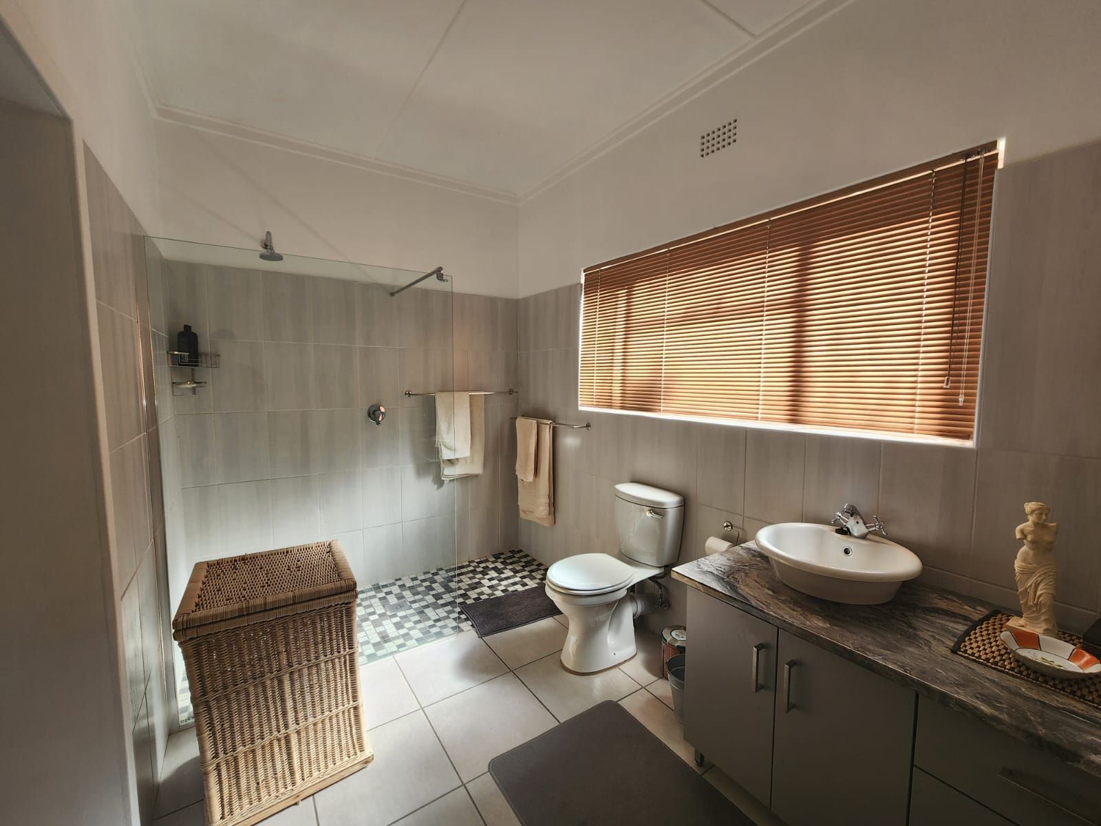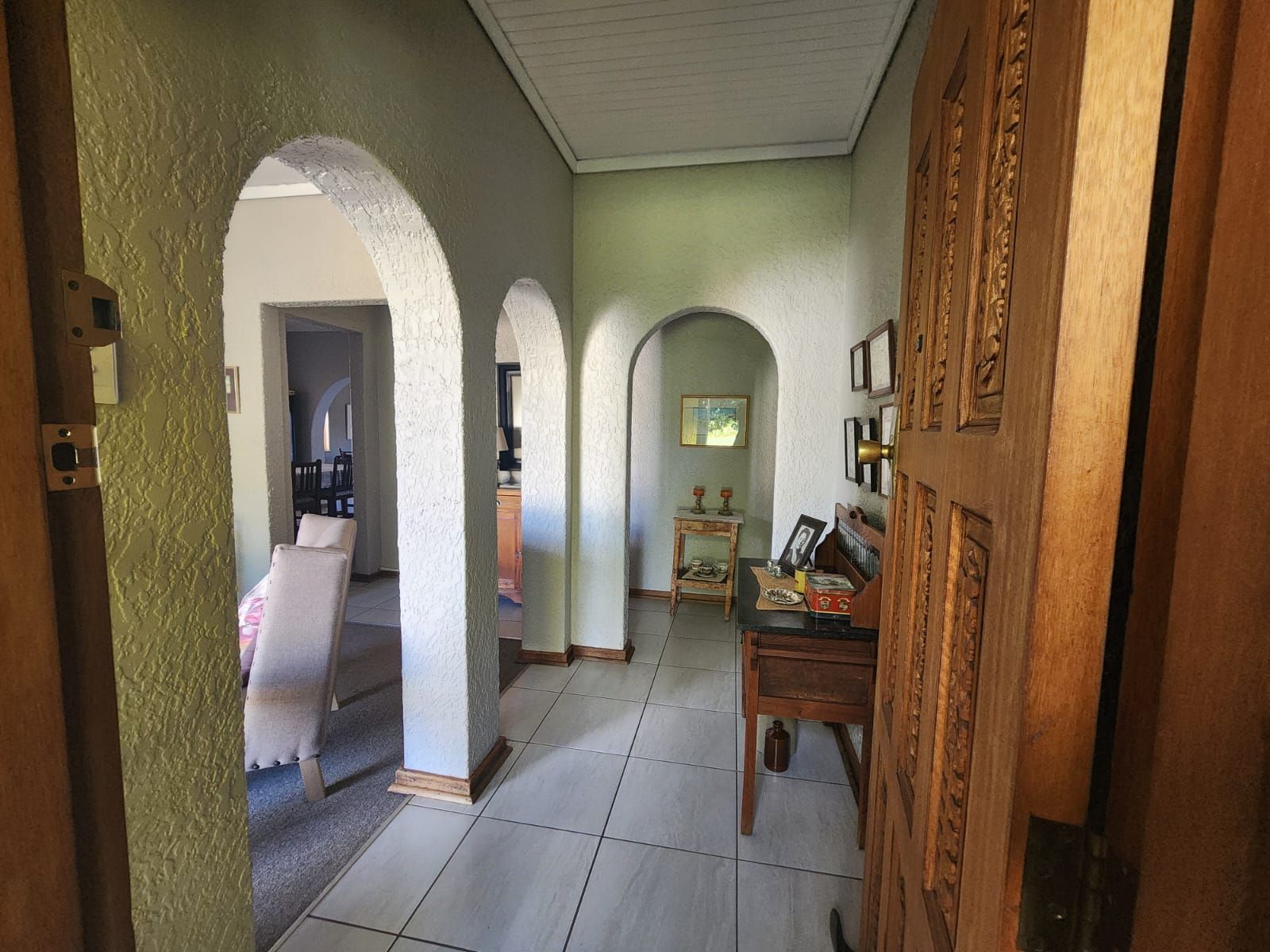 Additional features include a study and guest toilet. The covered patio with built-in braai overlooks a swimming pool and expansive garden—ideal for family living and entertaining.