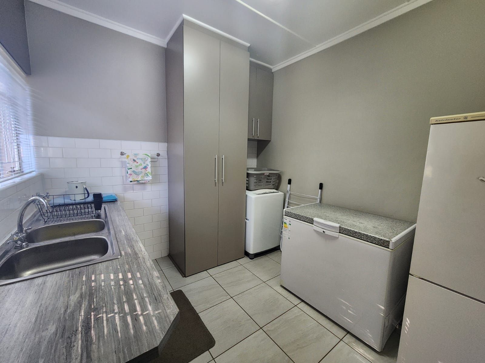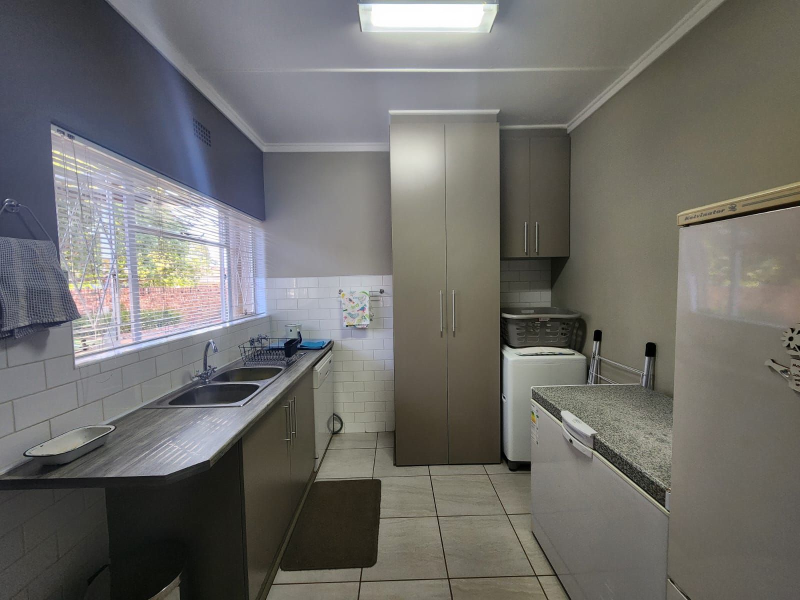 Parking is well catered for with a double garage and secure open parking. The property is fully fenced and fitted with burglar bars and a security gate, offering peace of mind.
