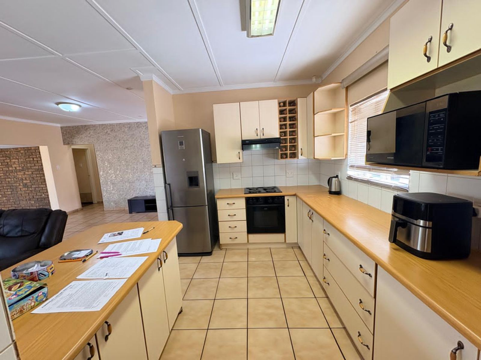 The home features an open-plan family and dining area, creating a spacious and inviting atmosphere. The kitchen is fitted with built-in cupboards, a stove, and an extractor fan, providing both functionality and convenience.