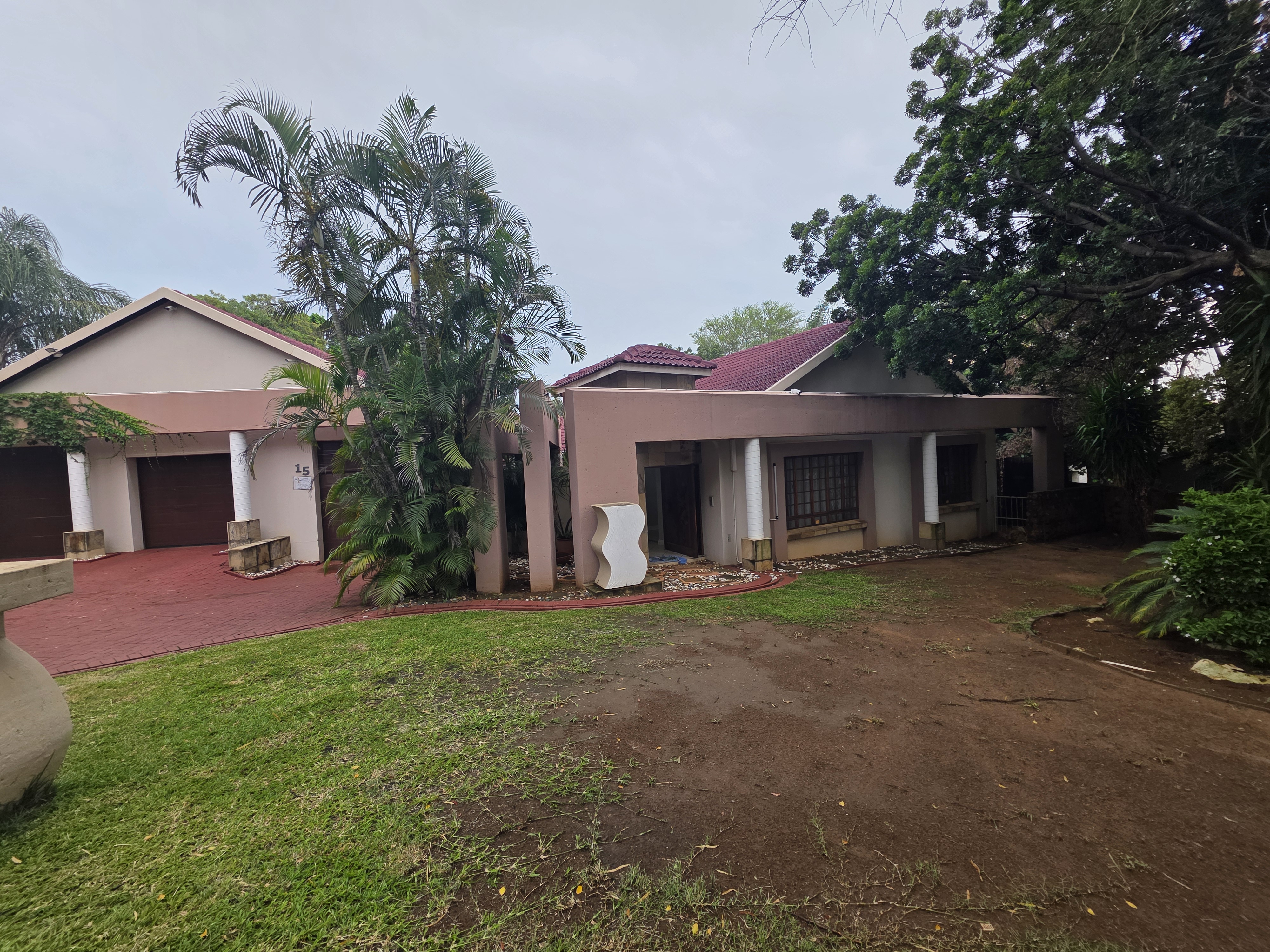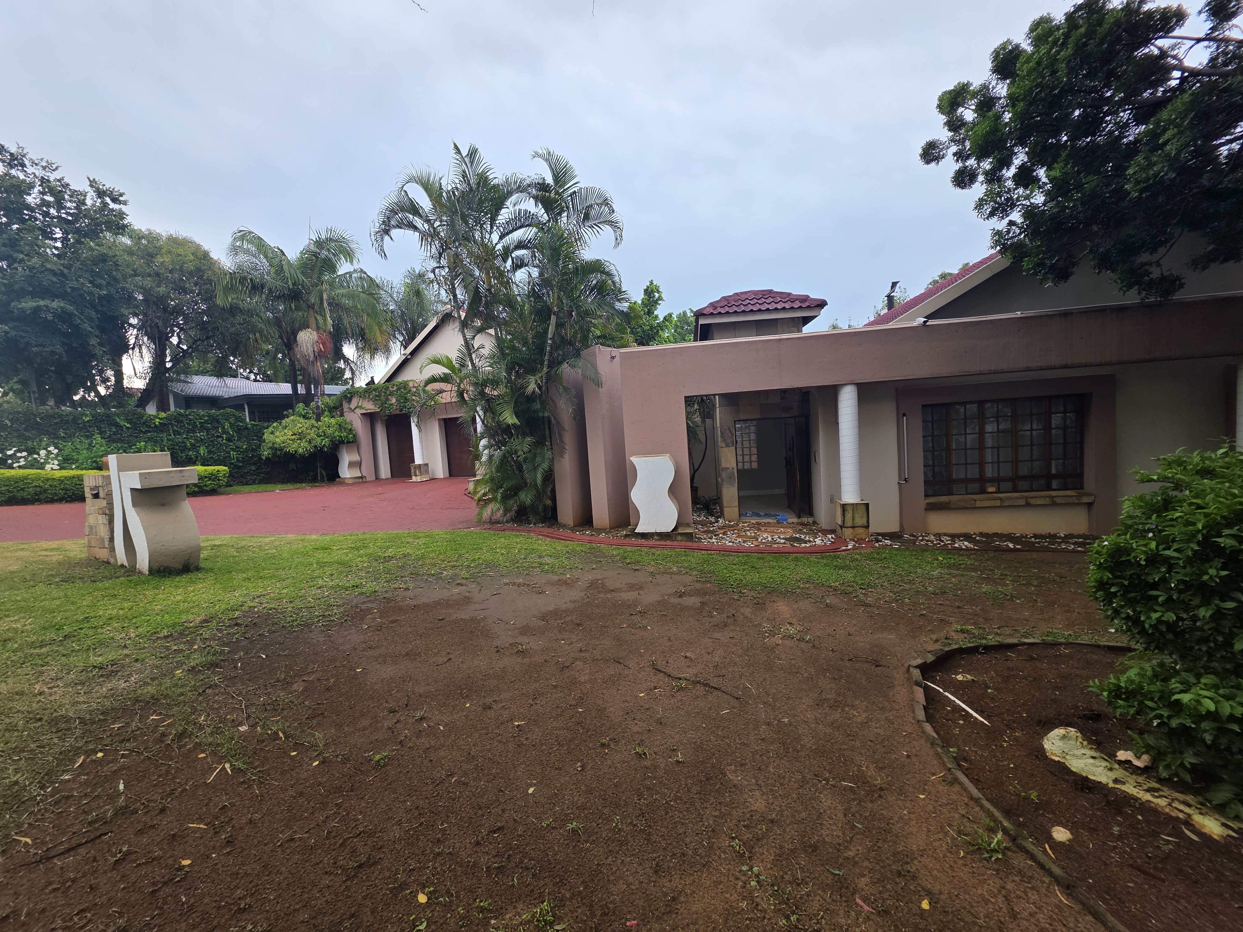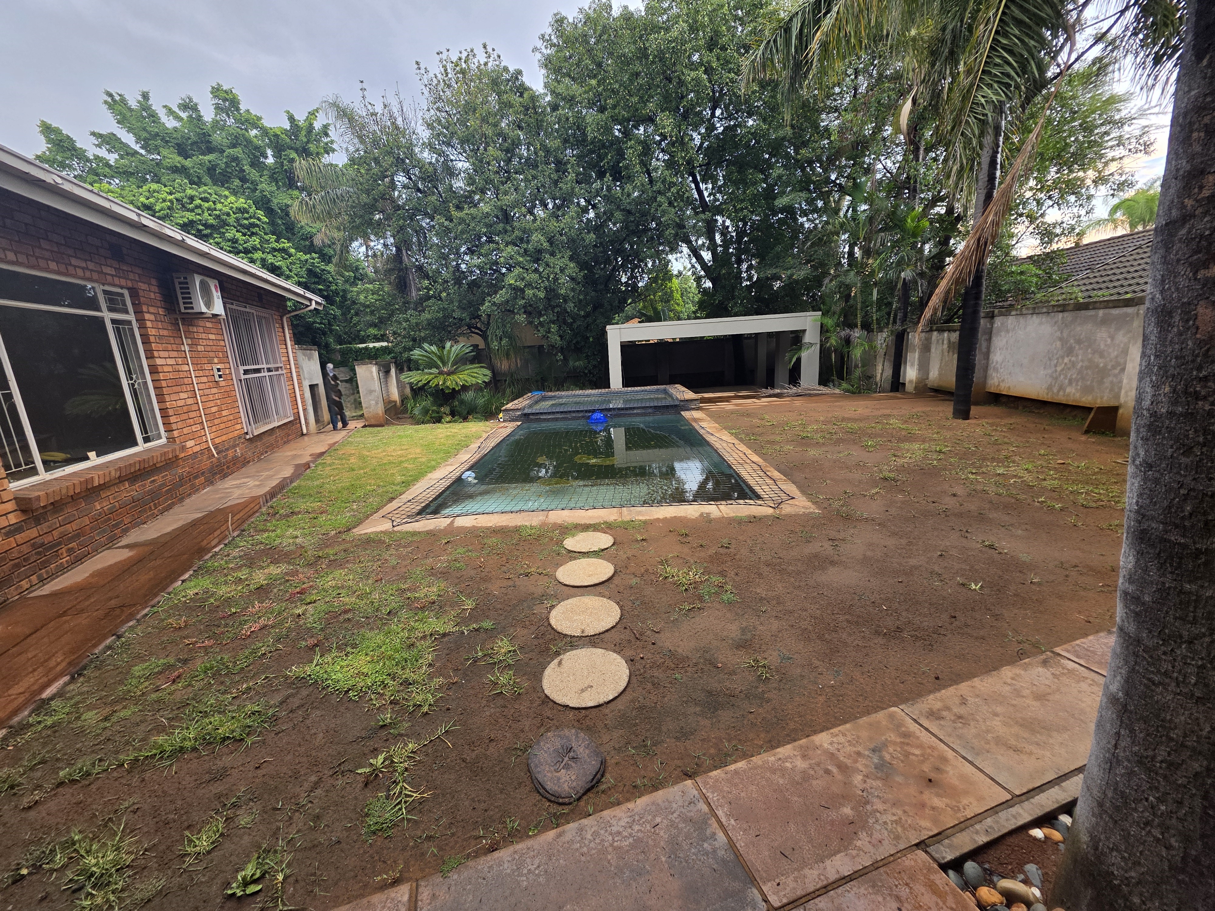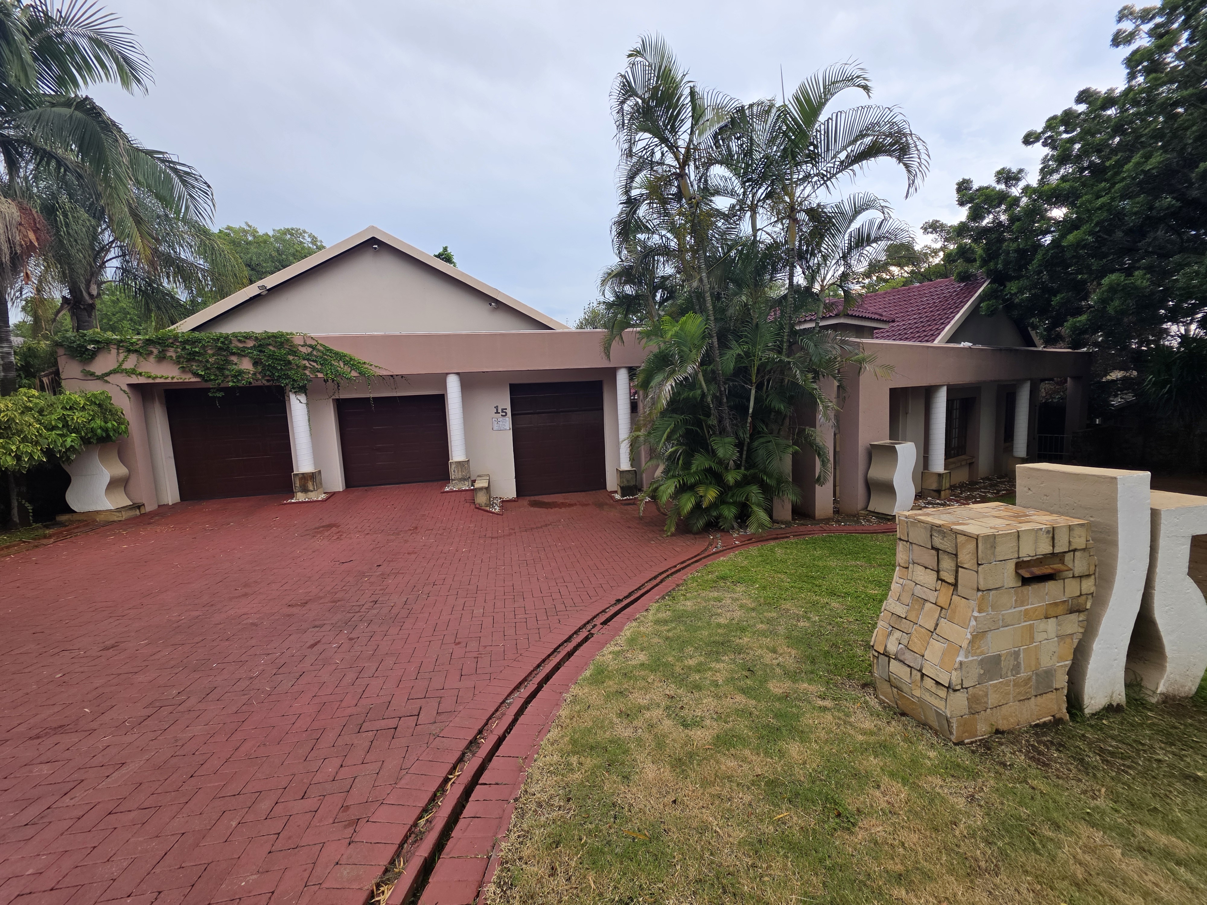 Adjacent to the house a lapa with built in braai, doors that open up on the pool area (heated pool & kiddies pool side) with another open under-roof-entertainment area. Nice sized garden. The outside room converted into a bachelors with a small kitchen and bathroom. Additional there is an outside toilet, Jojo Watertank and three garages (one is a hollywood garage)