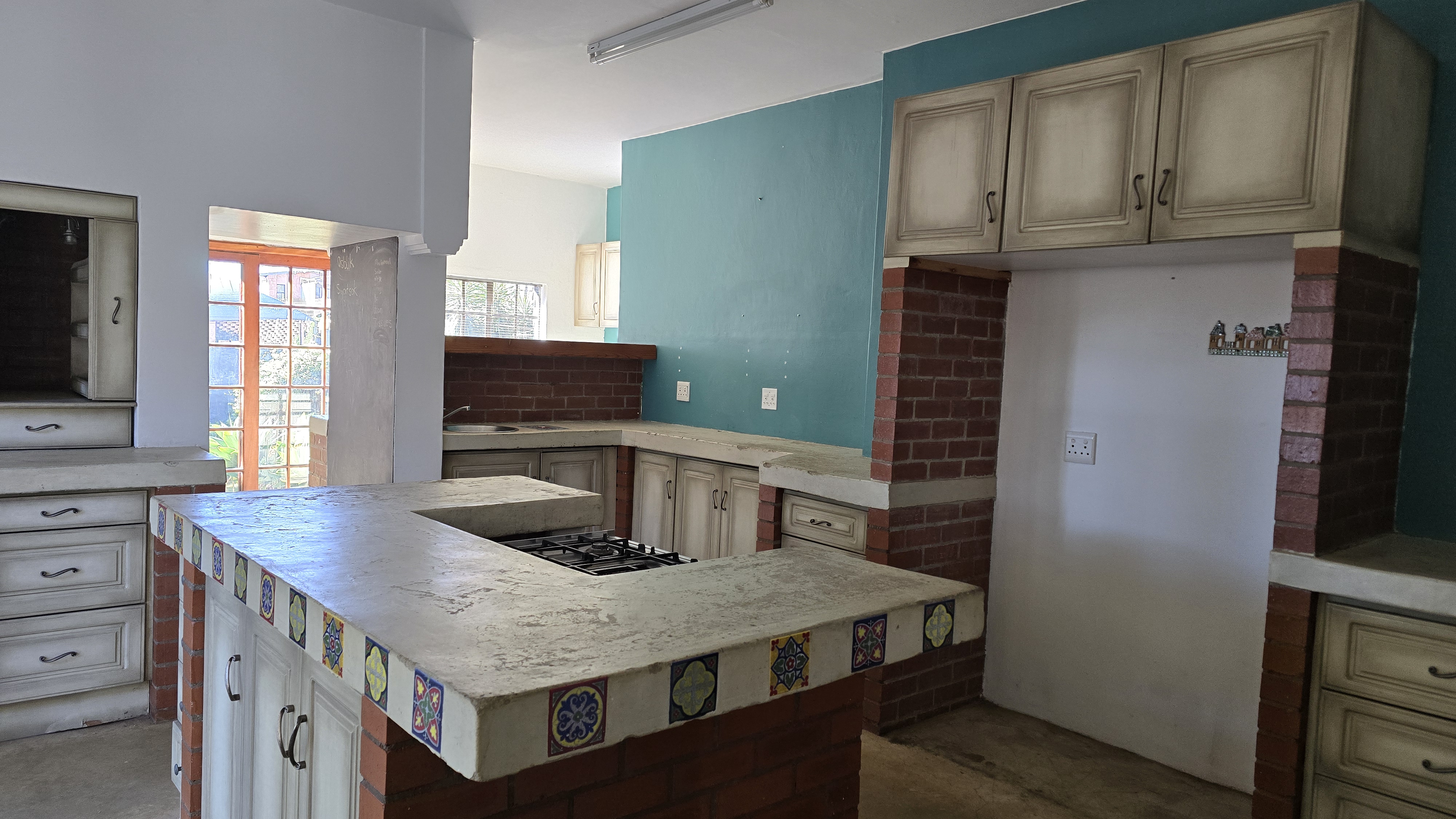 The interior features are highlighted by the secure environment, ensuring peace of mind for residents. The floors are elegantly finished with durable cement, providing a sleek and modern aesthetic throughout the living spaces. Outside you have a big yard where kids can run and play all day on the lush grass or even in the treehouse.
