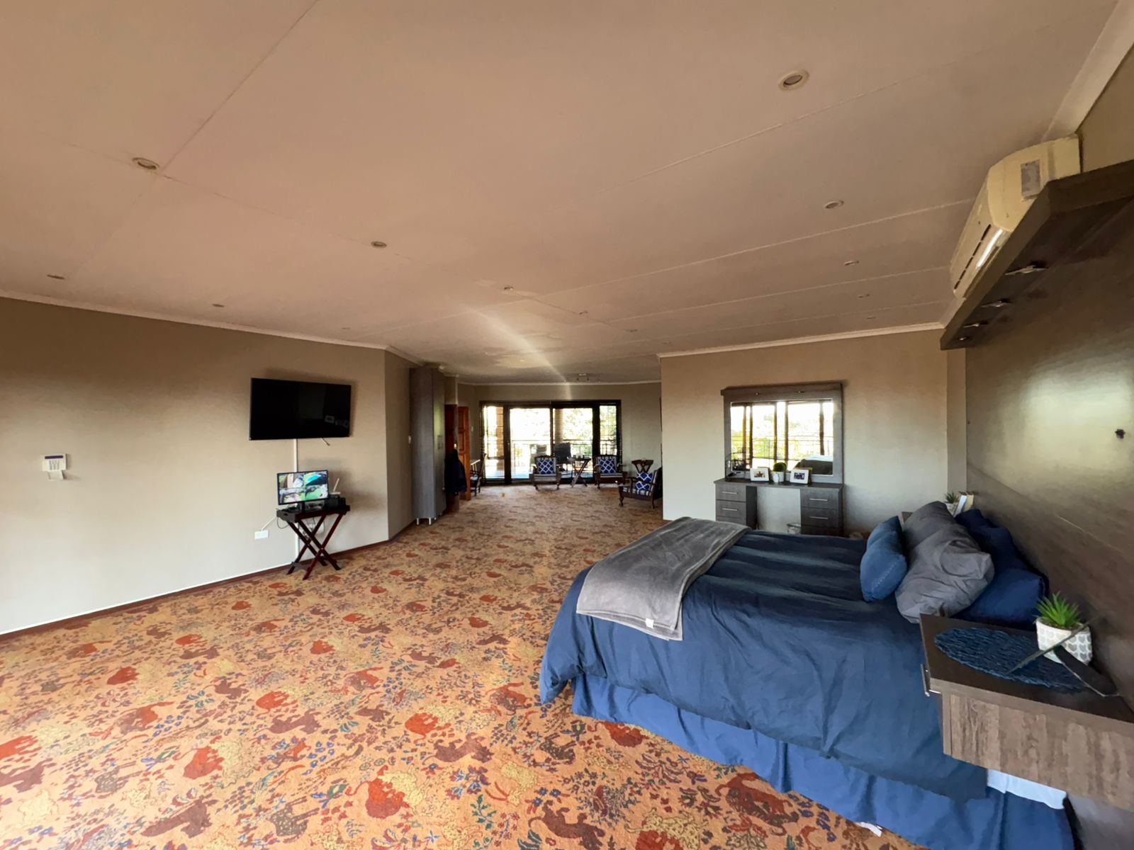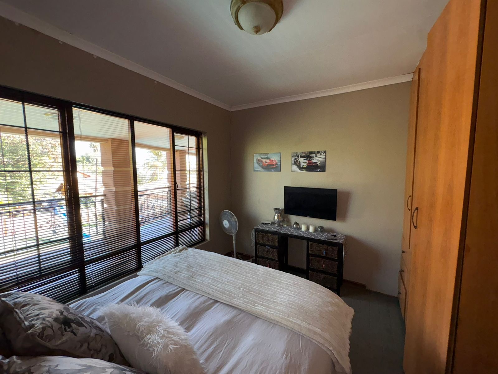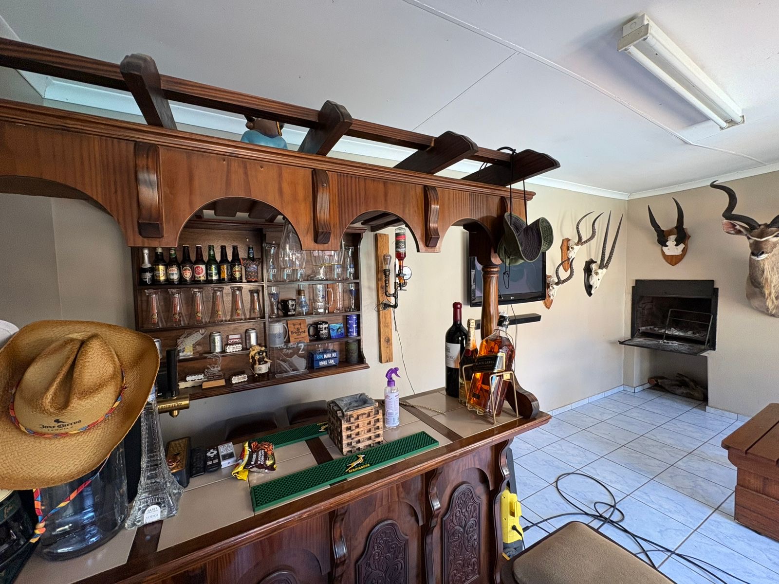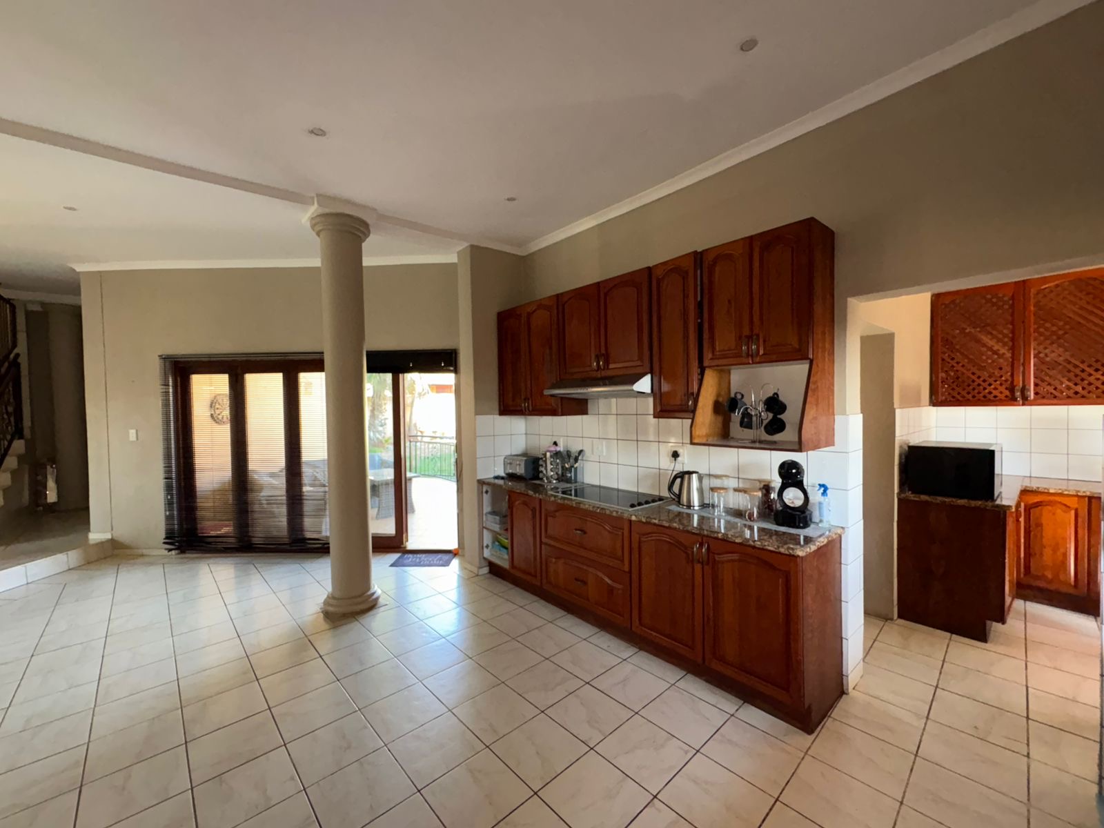 The outdoor area, featuring an enclosed entertainment space with a built-in braai, ideally positioned next to the sparkling swimming pool. There’s also a covered patio with a second built-in braai, creating the perfect flow from outdoor to indoor living.