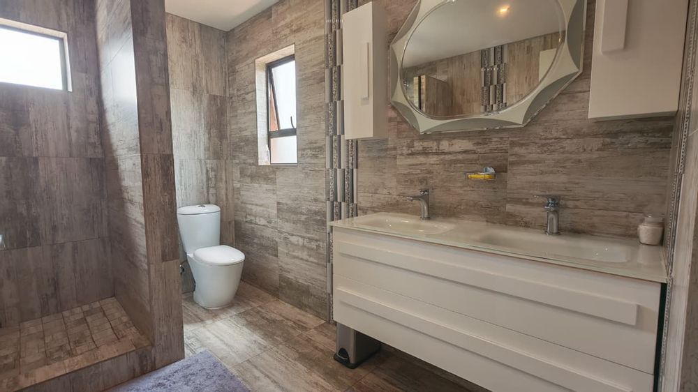Step into unmatched elegance in one of the most exclusive estates, where world-class security, pristine surroundings, and breathtaking views set the tone for refined living. This masterpiece home welcomes you with a grand, open-plan layout, featuring an exquisite designer kitchen with a spacious pantry and scullery, flowing effortlessly into the dining, lounge, and entertainment areas. Two beautifully appointed guest bedrooms—one with a full ensuite—along with a private study and a stylish game room complete the ground floor.