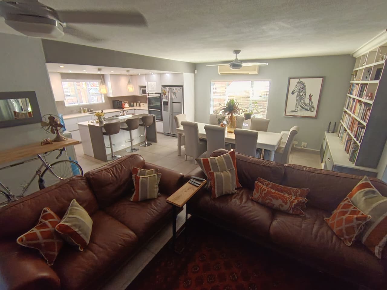 The open-plan kitchen forms the heart of the home and flows seamlessly into the dining area, lounge, and TV room, creating a warm and inviting living environment. An additional entertainment room makes this property ideal for hosting family gatherings and social occasions throughout the year.