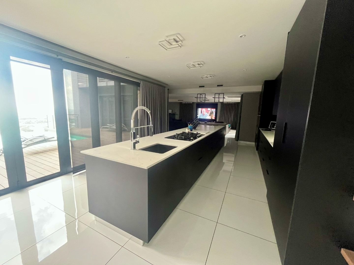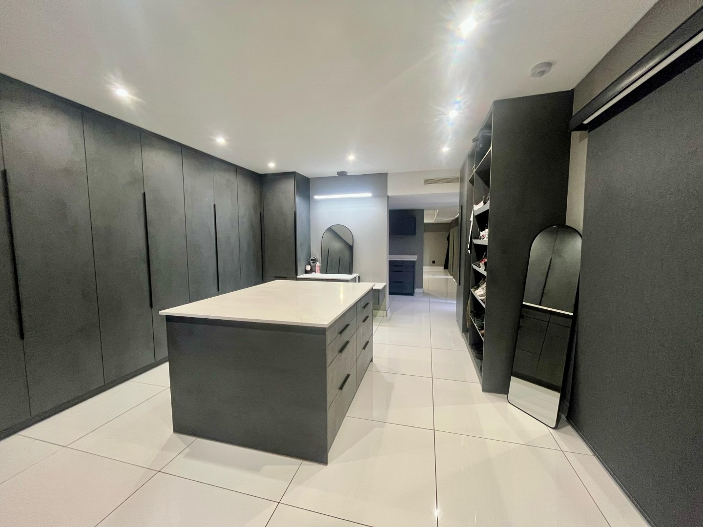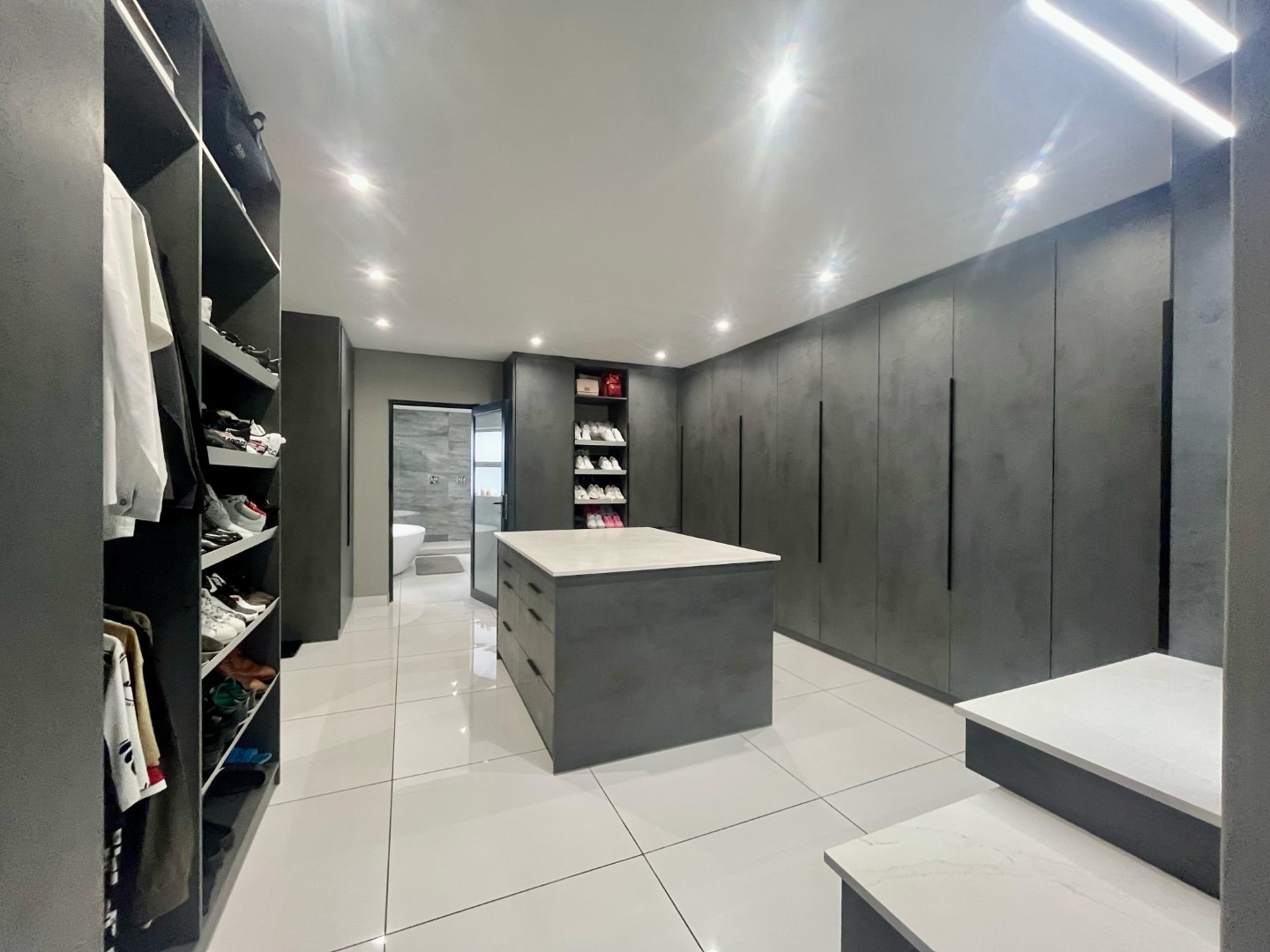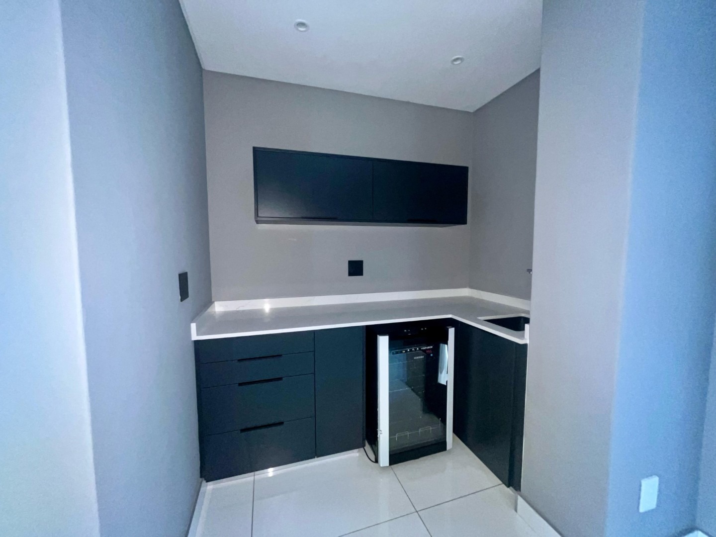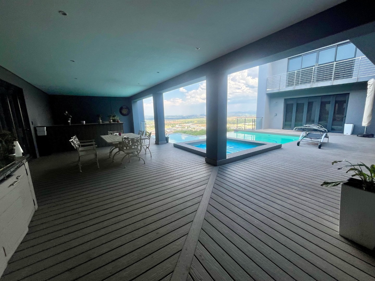 The expansive open-plan kitchen, lounge, and dining area on the second storey is an entertainer's dream. The modern kitchen comes equipped with a walk-in pantry and a separate scullery, ensuring convenience and functionality for even the most discerning home chef. Step outside onto the second-storey terrace, where you'll find an infinity pool with breathtaking views and a heated jacuzzi, perfect for relaxation and unwinding. A cozy whiskey lounge is also on this level, offering a sophisticated space for intimate gatherings or quiet reflection. Additionally, a dedicated study provides a quiet space for work or creative pursuits.