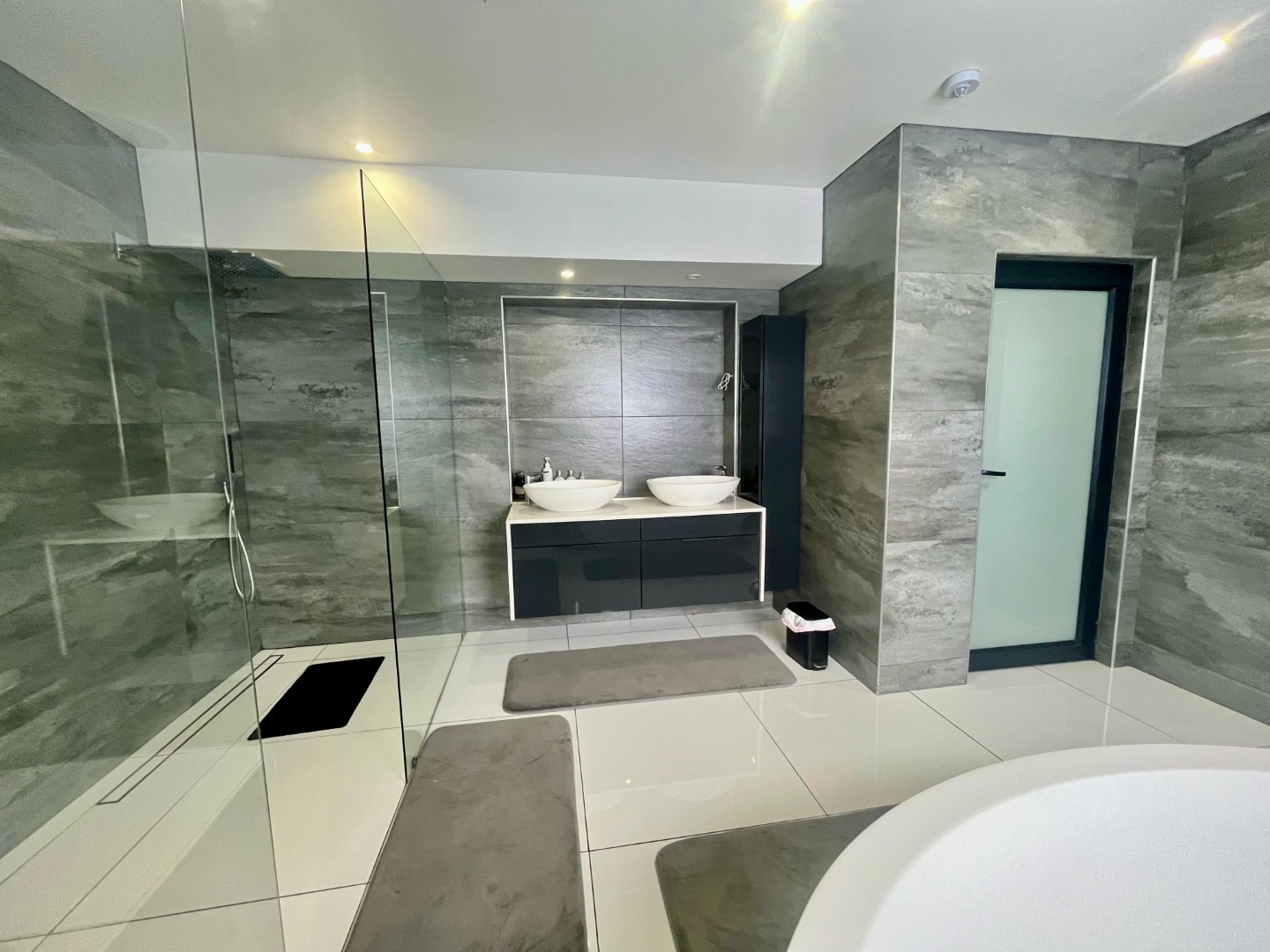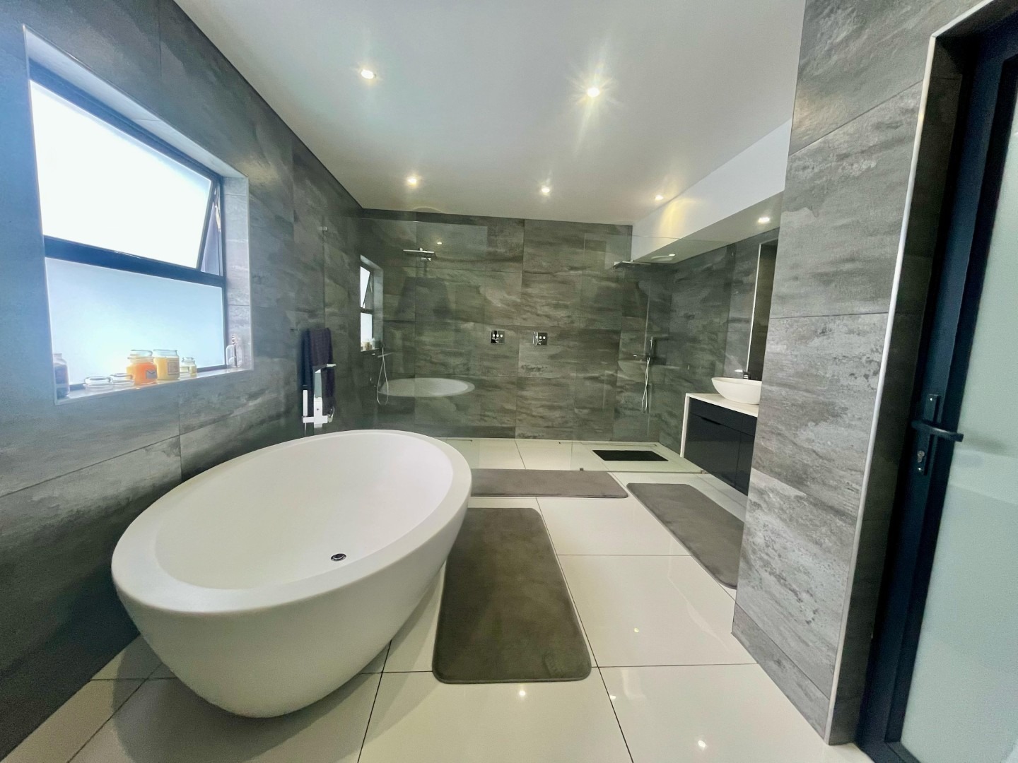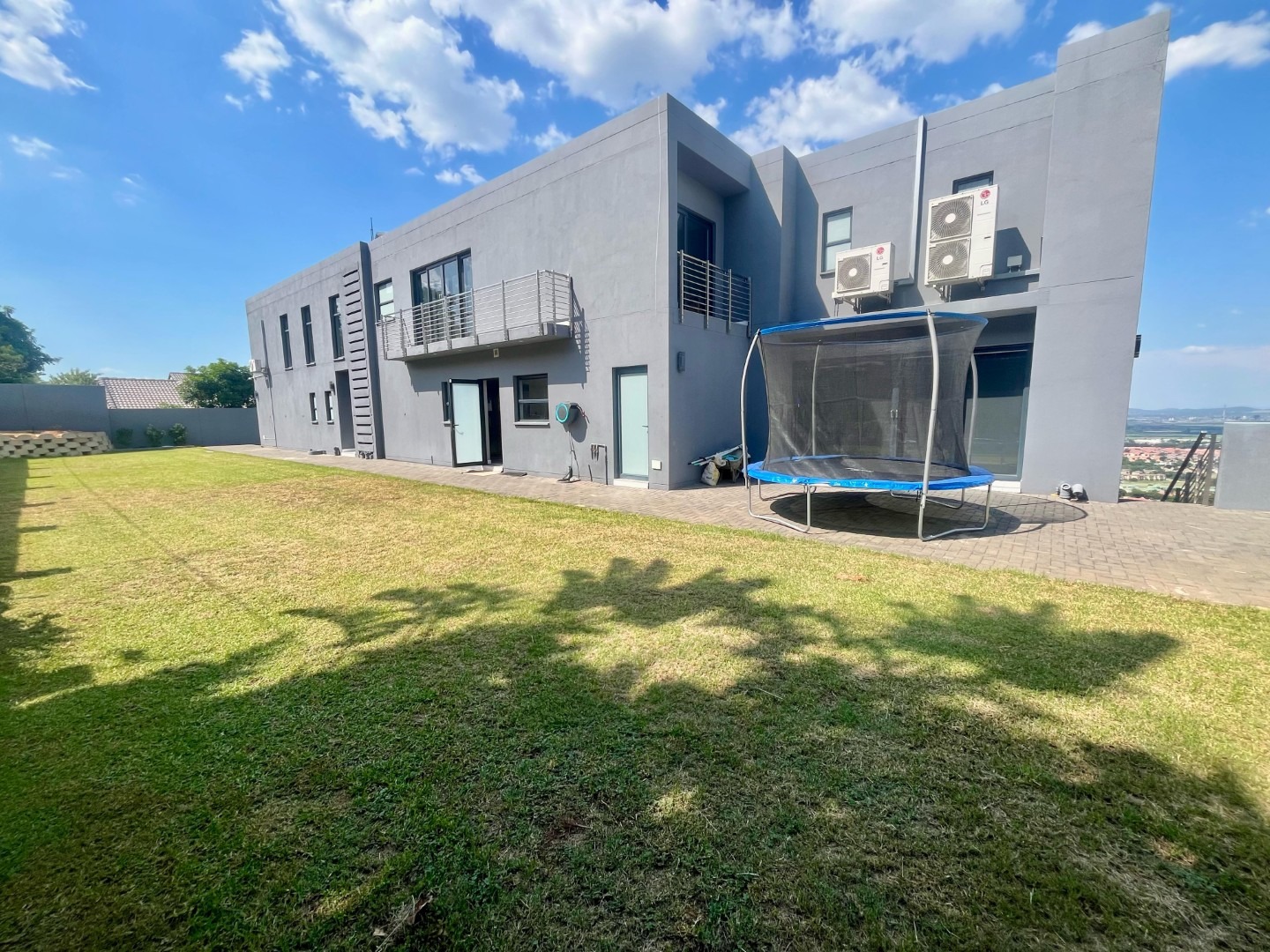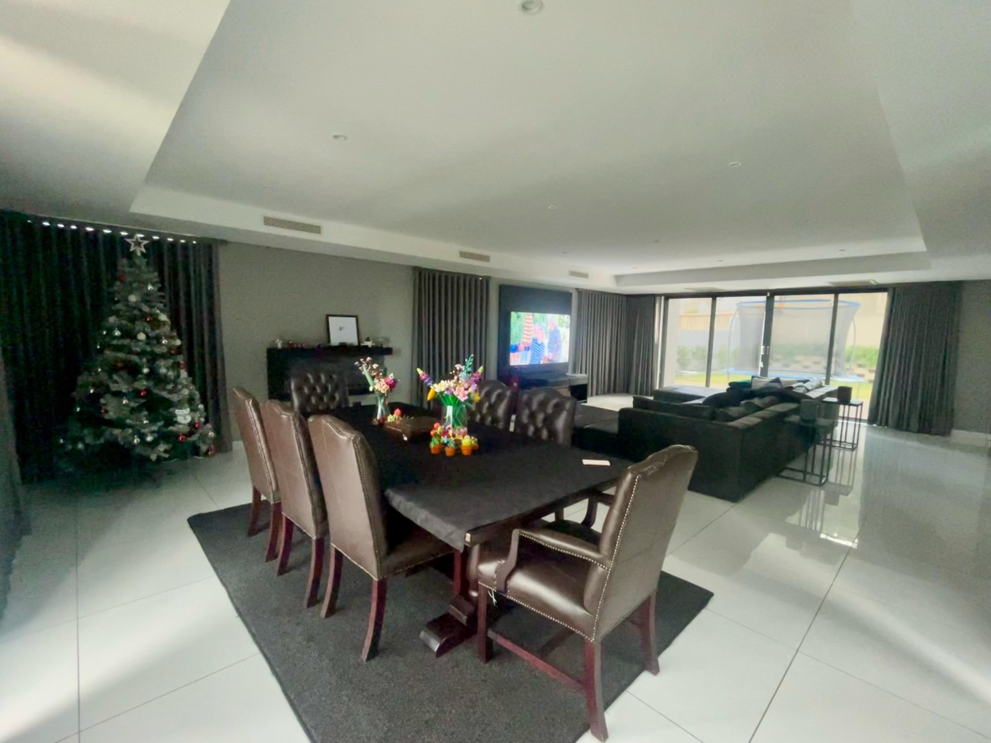 The expansive open-plan kitchen, lounge, and dining area on the second storey is an entertainer's dream. The modern kitchen comes equipped with a walk-in pantry and a separate scullery, ensuring convenience and functionality for even the most discerning home chef. Step outside onto the second-storey terrace, where you'll find an infinity pool with breathtaking views and a heated jacuzzi, perfect for relaxation and unwinding. A cozy whiskey lounge is also on this level, offering a sophisticated space for intimate gatherings or quiet reflection. Additionally, a dedicated study provides a quiet space for work or creative pursuits.