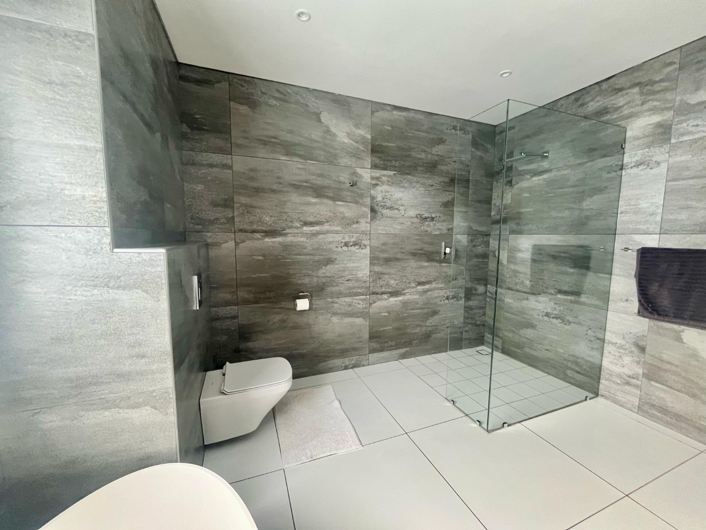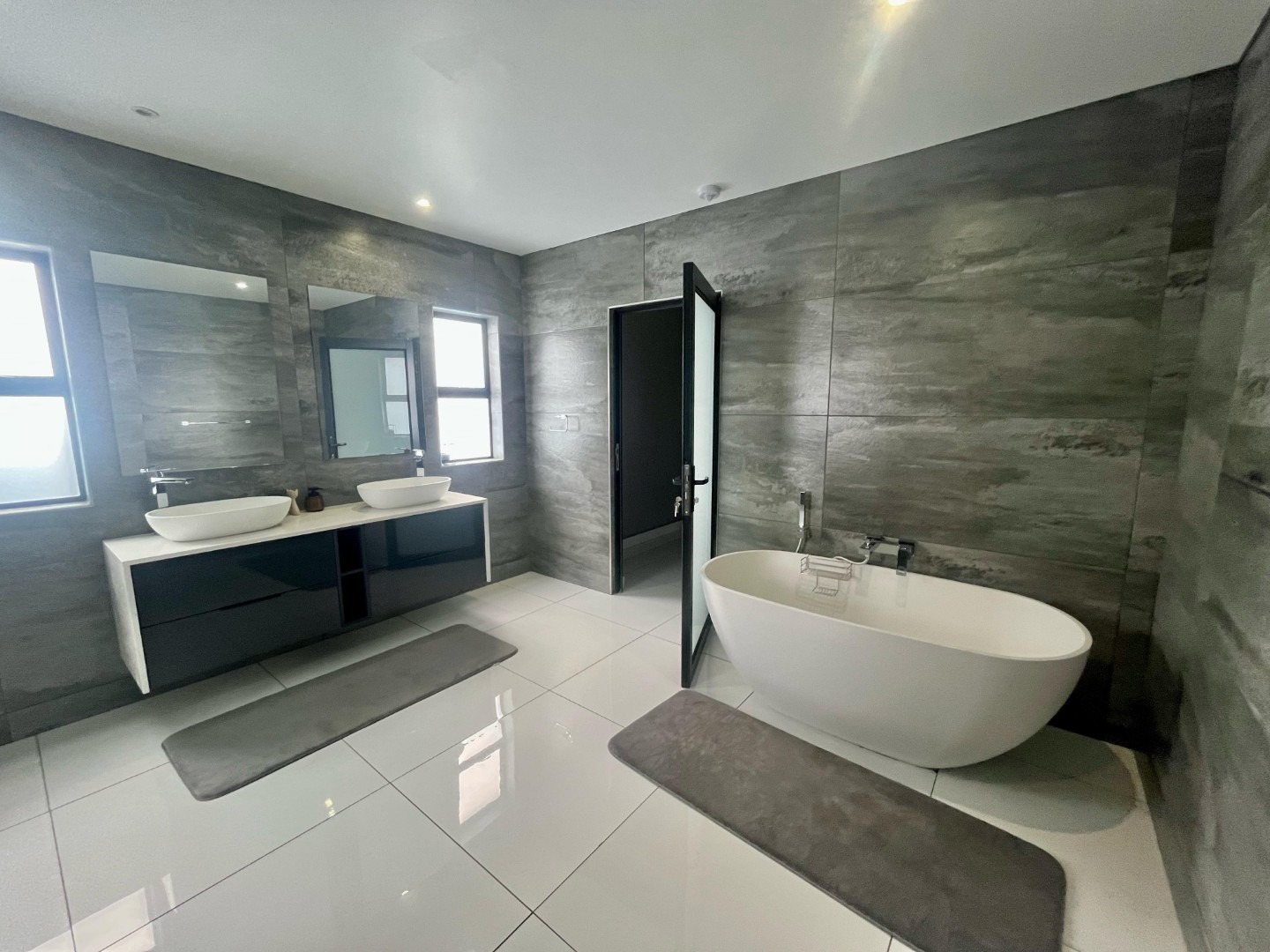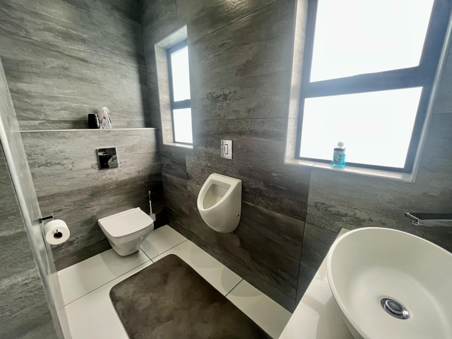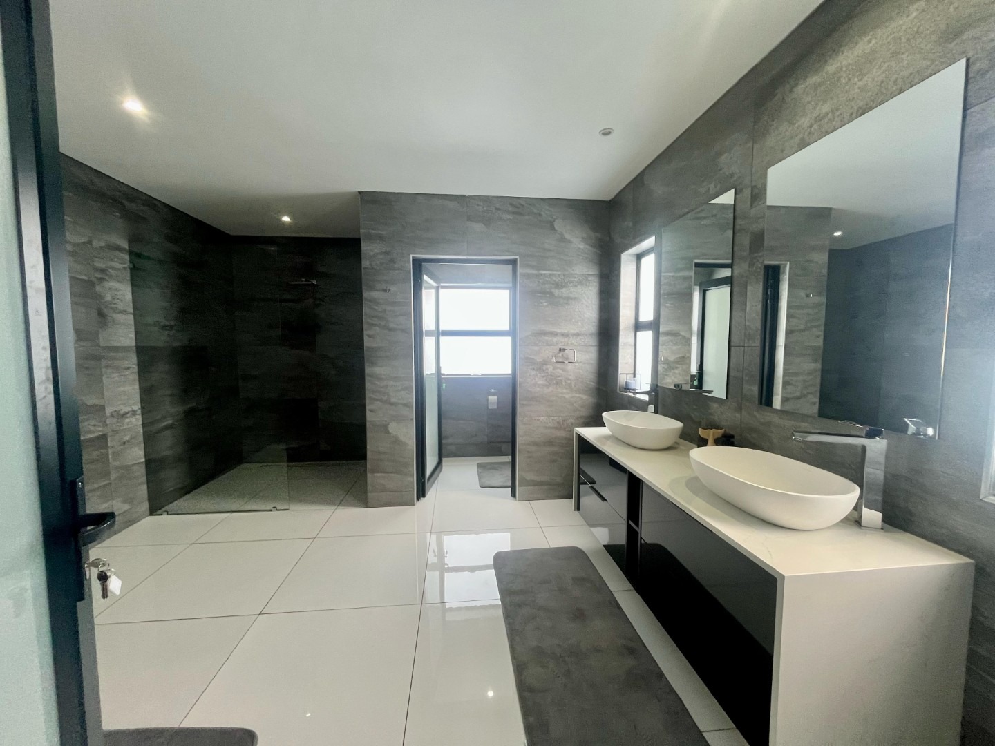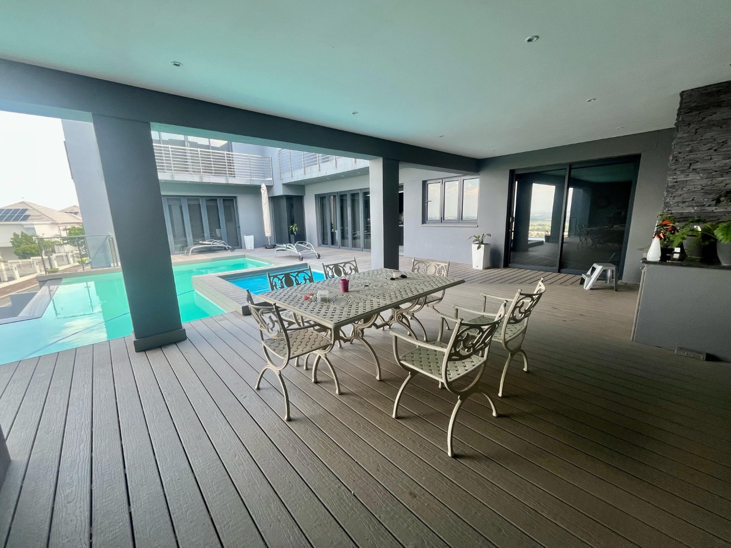The expansive open-plan kitchen, lounge, and dining area on the second storey is an entertainer's dream. The modern kitchen comes equipped with a walk-in pantry and a separate scullery, ensuring convenience and functionality for even the most discerning home chef. Step outside onto the second-storey terrace, where you'll find an infinity pool with breathtaking views and a heated jacuzzi, perfect for relaxation and unwinding. A cozy whiskey lounge is also on this level, offering a sophisticated space for intimate gatherings or quiet reflection. Additionally, a dedicated study provides a quiet space for work or creative pursuits.