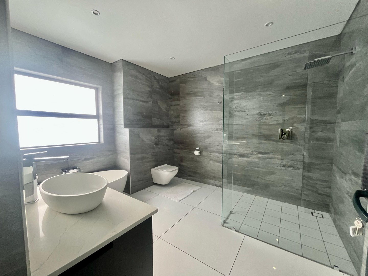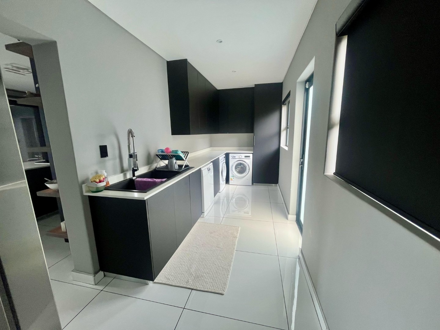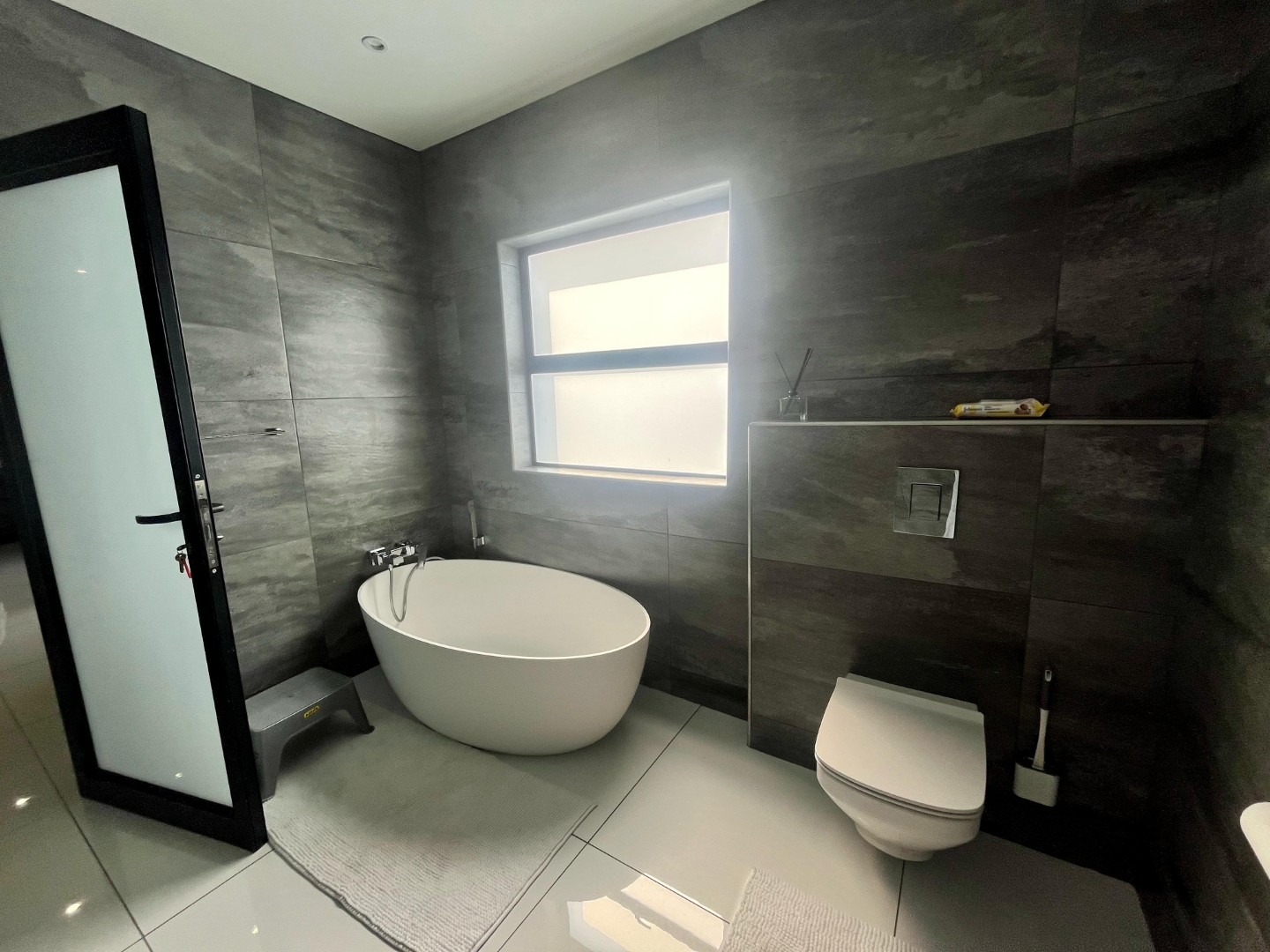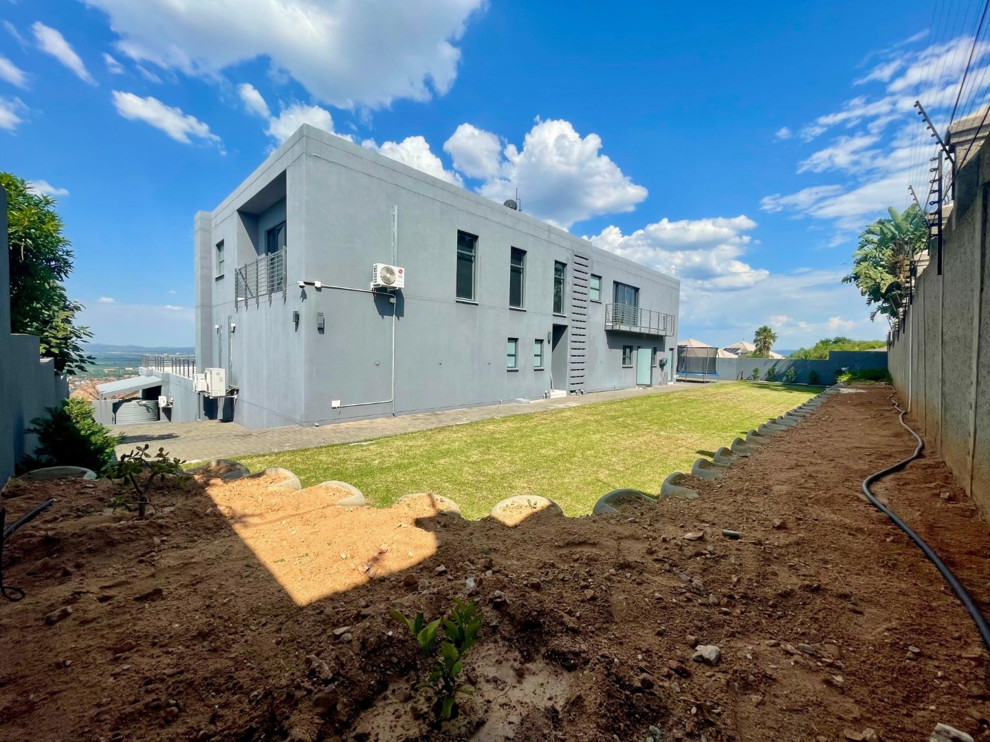 The expansive open-plan kitchen, lounge, and dining area on the second storey is an entertainer's dream. The modern kitchen comes equipped with a walk-in pantry and a separate scullery, ensuring convenience and functionality for even the most discerning home chef. Step outside onto the second-storey terrace, where you'll find an infinity pool with breathtaking views and a heated jacuzzi, perfect for relaxation and unwinding. A cozy whiskey lounge is also on this level, offering a sophisticated space for intimate gatherings or quiet reflection. Additionally, a dedicated study provides a quiet space for work or creative pursuits.