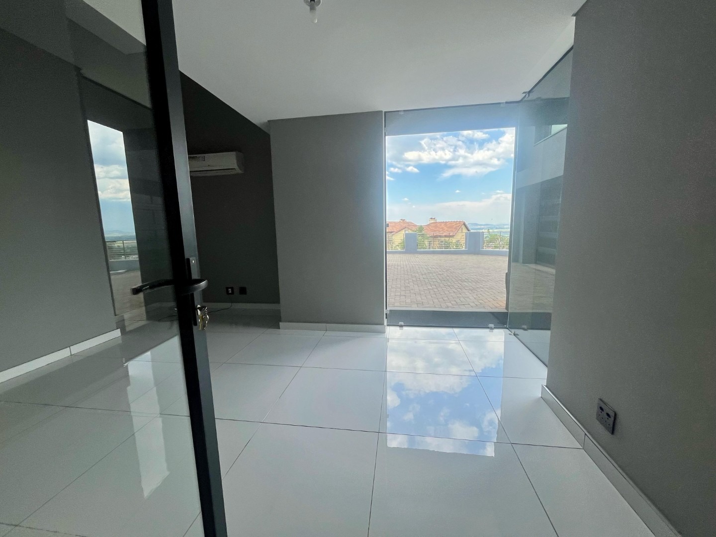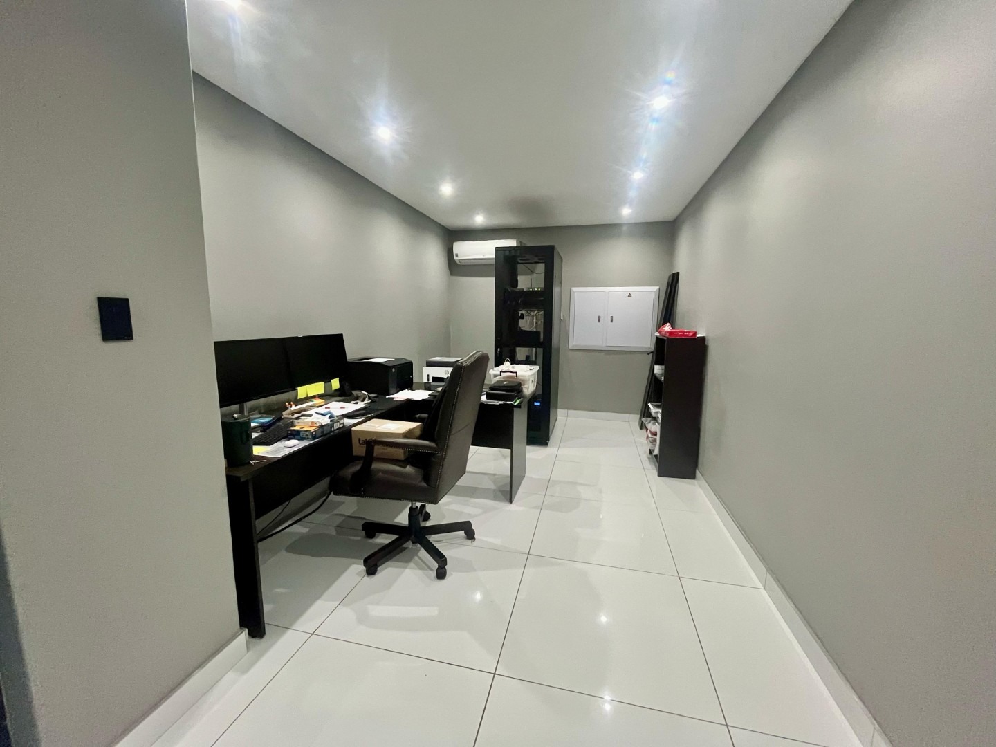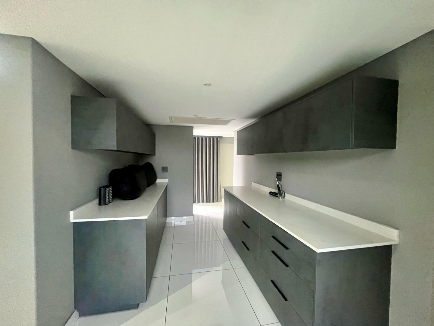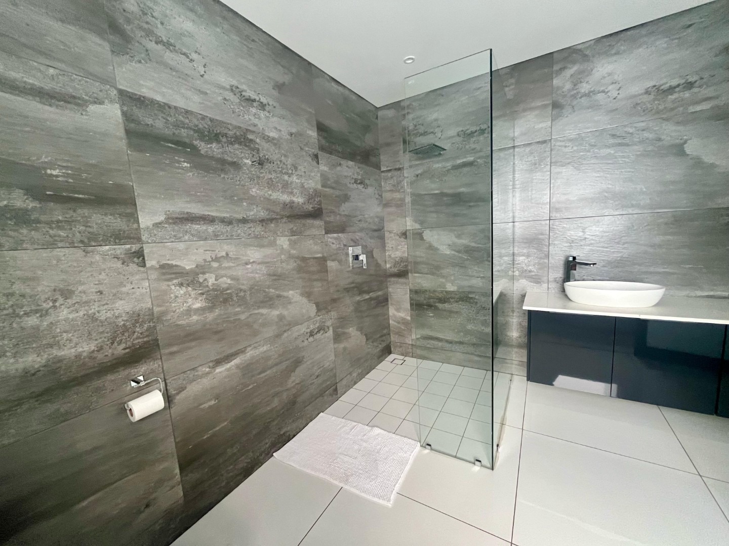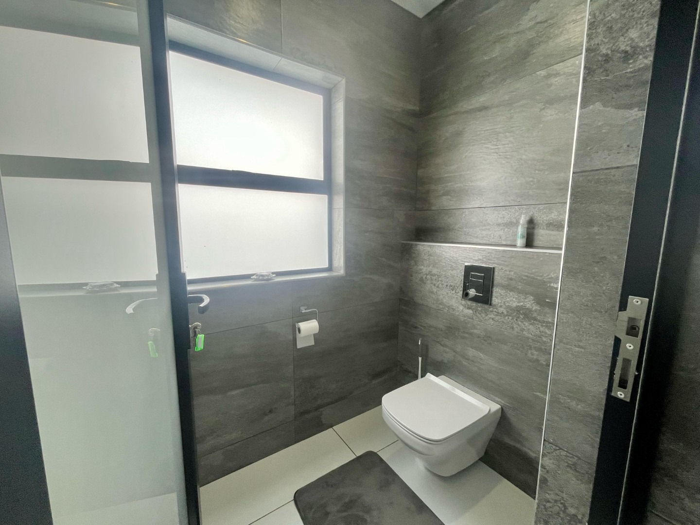 The expansive open-plan kitchen, lounge, and dining area on the second storey is an entertainer's dream. The modern kitchen comes equipped with a walk-in pantry and a separate scullery, ensuring convenience and functionality for even the most discerning home chef. Step outside onto the second-storey terrace, where you'll find an infinity pool with breathtaking views and a heated jacuzzi, perfect for relaxation and unwinding. A cozy whiskey lounge is also on this level, offering a sophisticated space for intimate gatherings or quiet reflection. Additionally, a dedicated study provides a quiet space for work or creative pursuits.