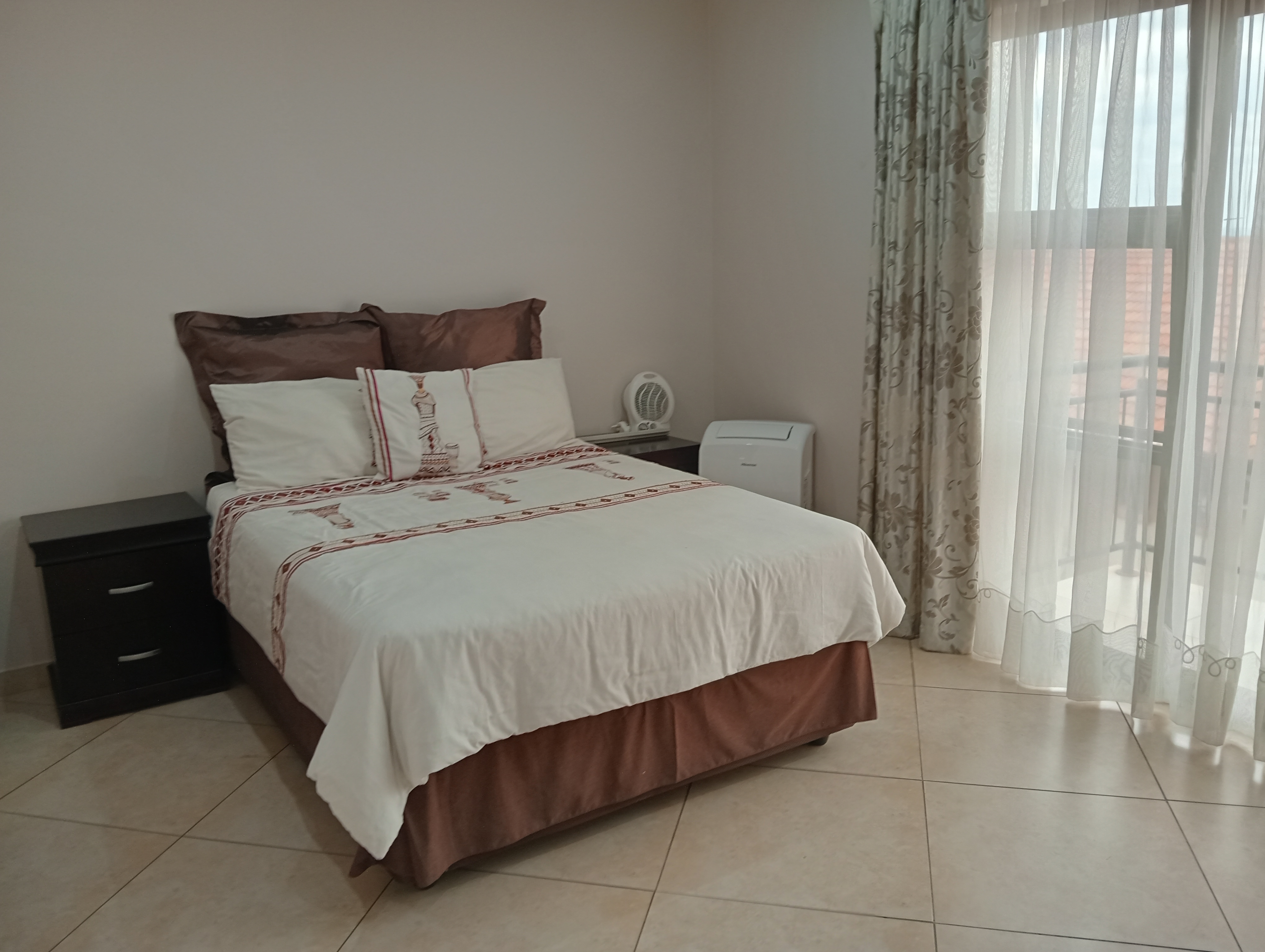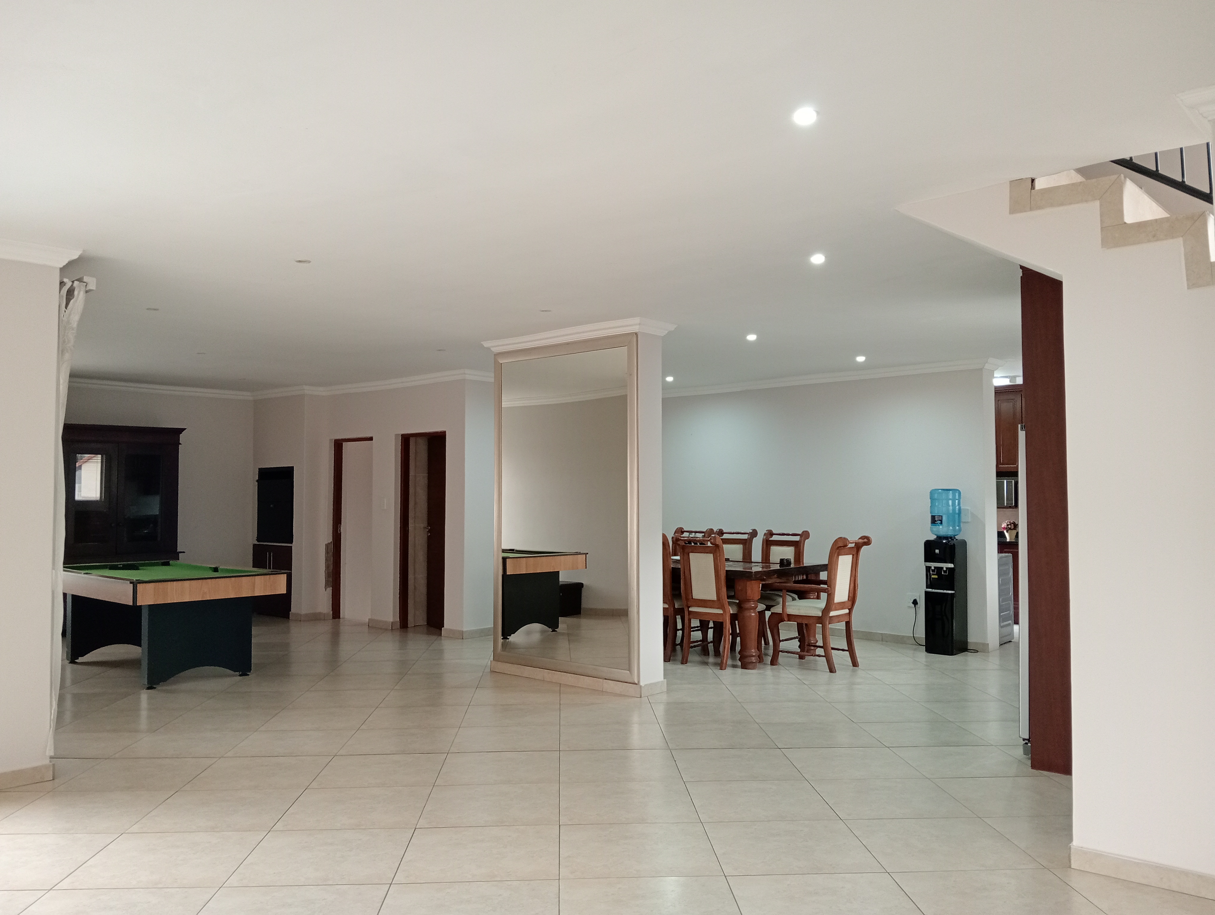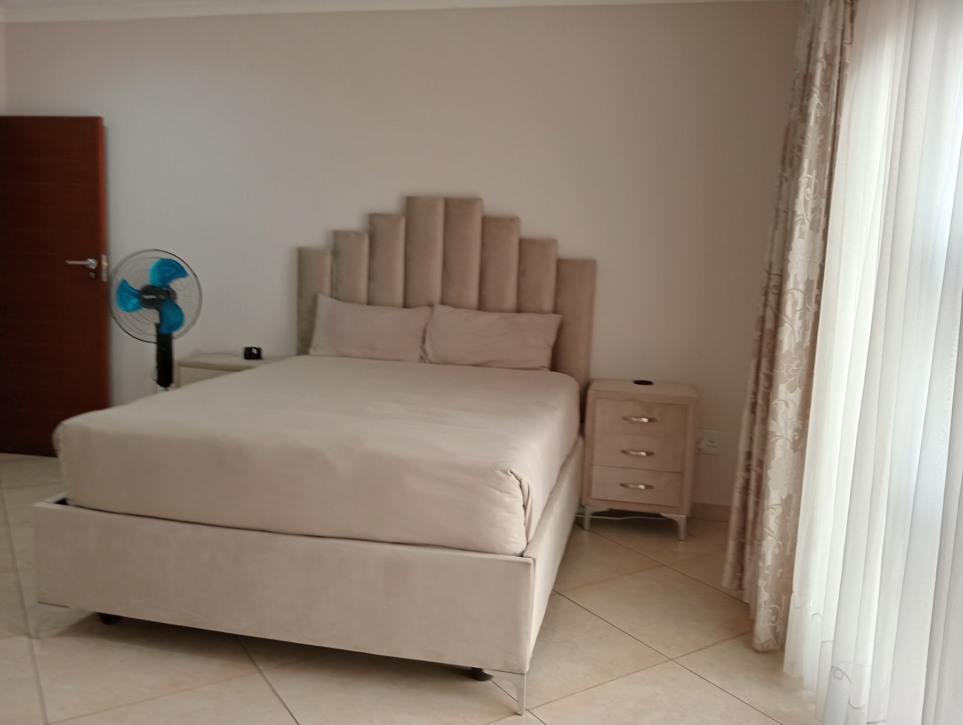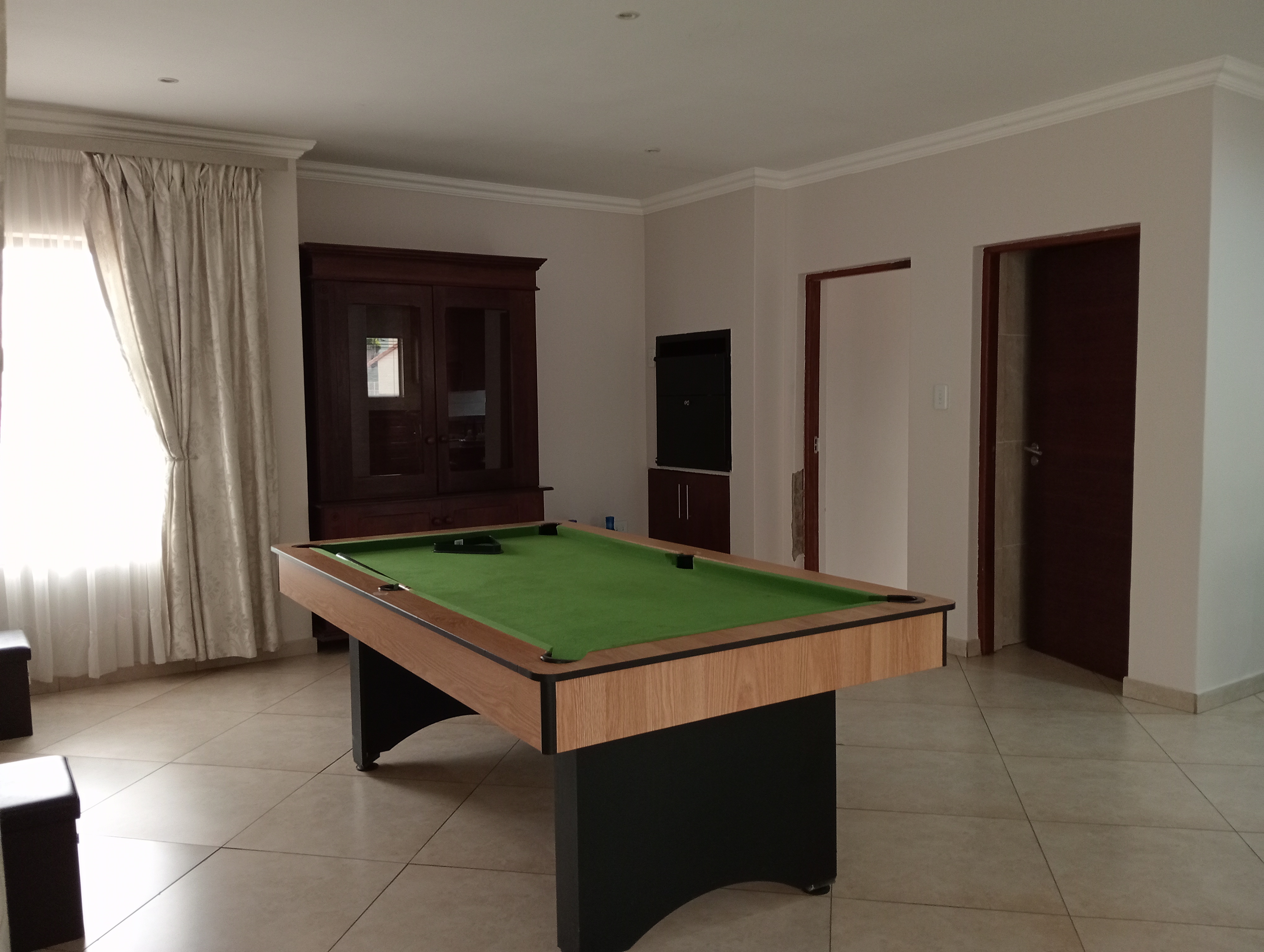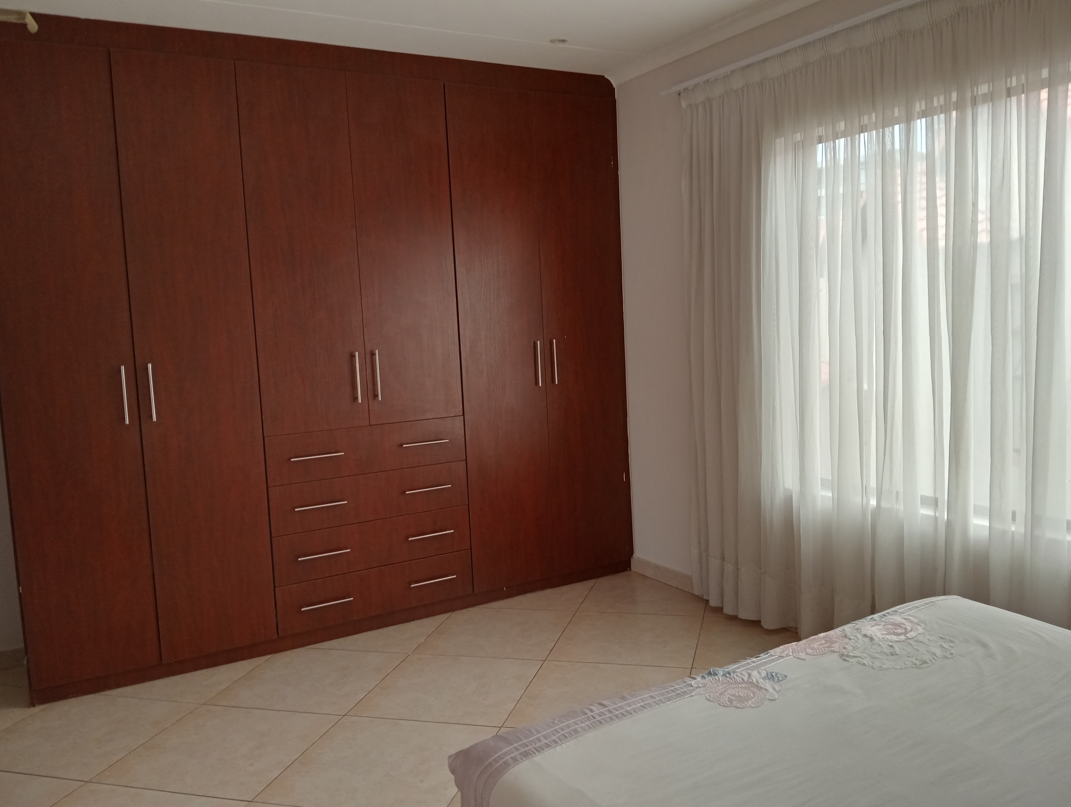 The ground floor welcomes you with a grand entrance hall leading to a reception lounge, a family lounge that flows into an entertainment room featuring an indoor built-in braai — perfect for hosting guests. There’s also a guest toilet for convenience. The open-plan kitchen includes a scullery, seamlessly connecting to a dining room and a lounge that opens onto a balcony with beautiful city views.