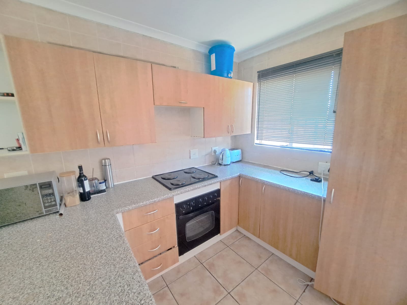 Get a good night’s rest in one of the 3 bedrooms, all tiled & built-in cupboards. Main bedroom has an en-suite bathroom. Both bathrooms have a shower, bath, toilet & basin.