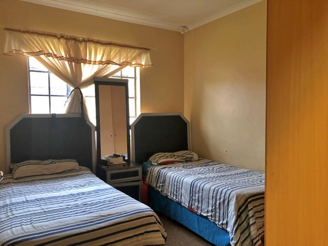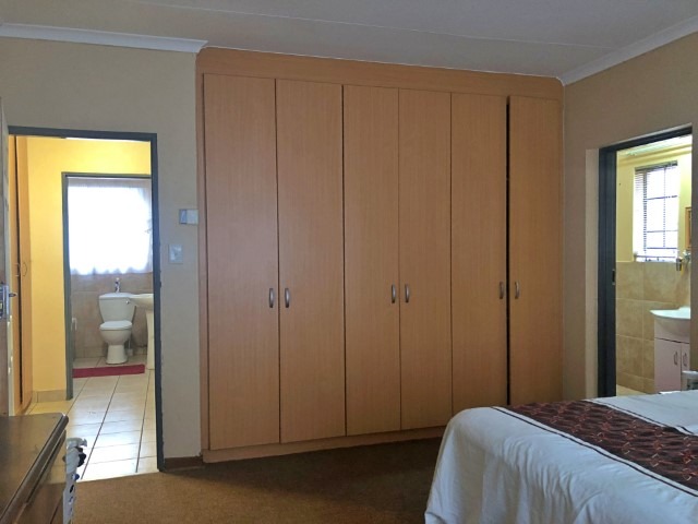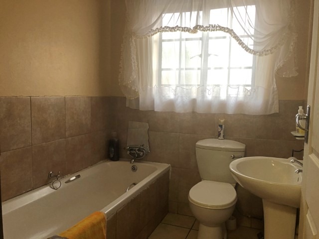 3 spacious bedrooms and 2 bathrooms. The main bedroom is an en-suite with a shower and second bathroom a bathtub. Built in cupboards in each bedroom with airy breeze catching windows