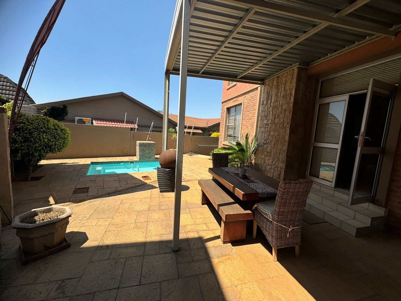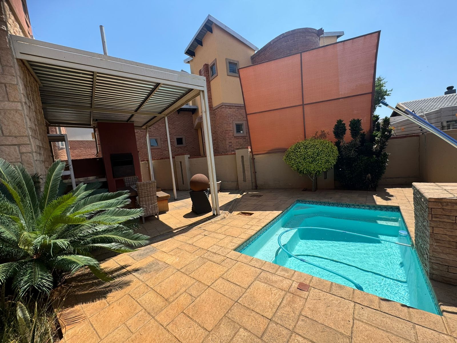 Introducing a charming 3-bedroom, 2-bathroom double-story home nestled in a secure estate at the cozy heart of Cashan. With built-in closets, a warm fireplace, a built-in braai, and a sparkling pool, this 177 m2 gem offers comfort and elegance. Enjoy your little garden, perfect for peaceful moments and personal touches. Ideal for families or individuals seeking warmth, security, and a homely ambiance. Say yes to the address!