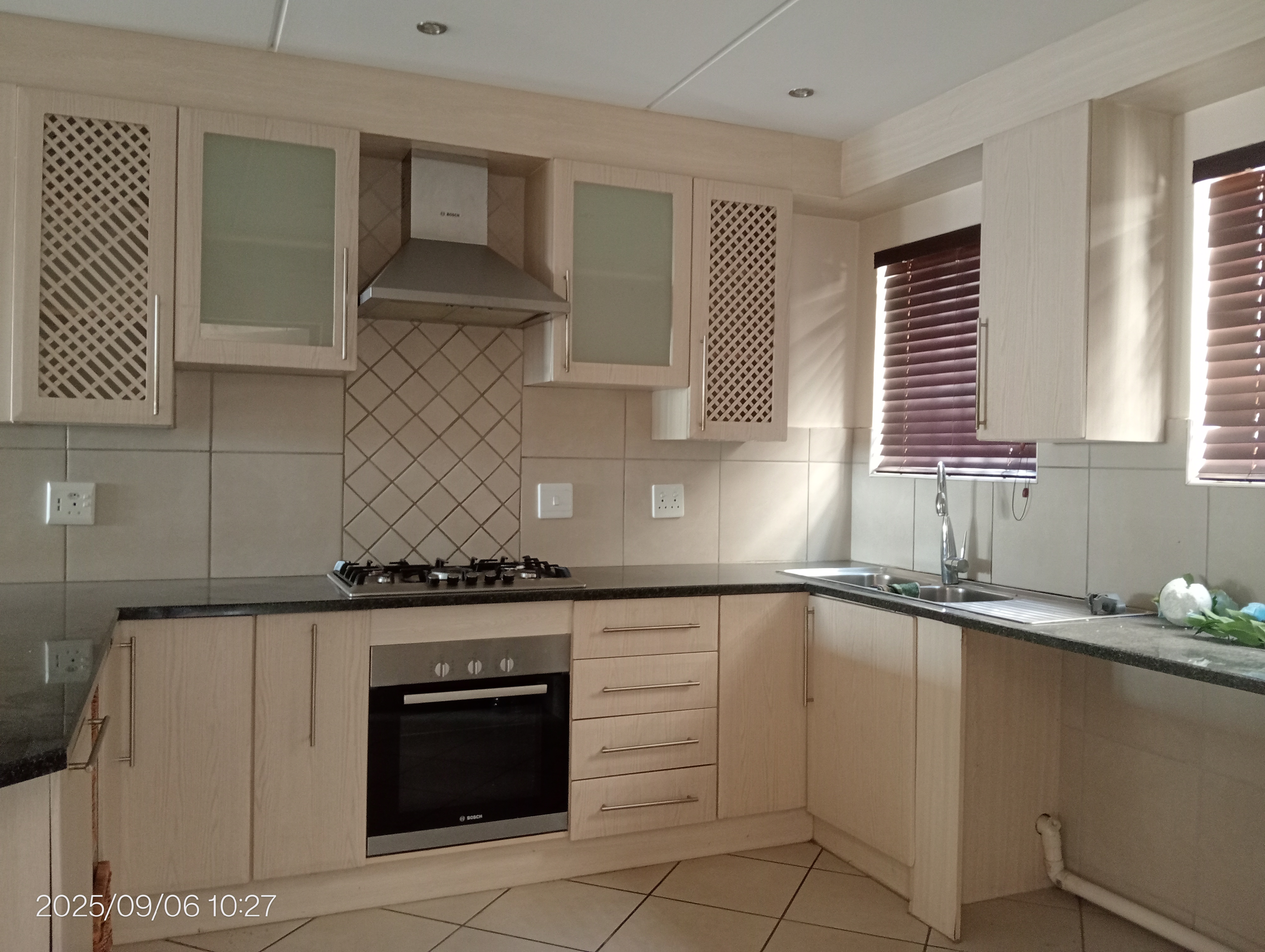 Open-Plan Kitchen & Living Area: The modern open-plan kitchen is designed for easy living, flowing effortlessly into the dining and lounge areas. The lounge also has air conditioning, ensuring a cool and comfortable space to relax. A separate scullery provides additional convenience for laundry and storage.