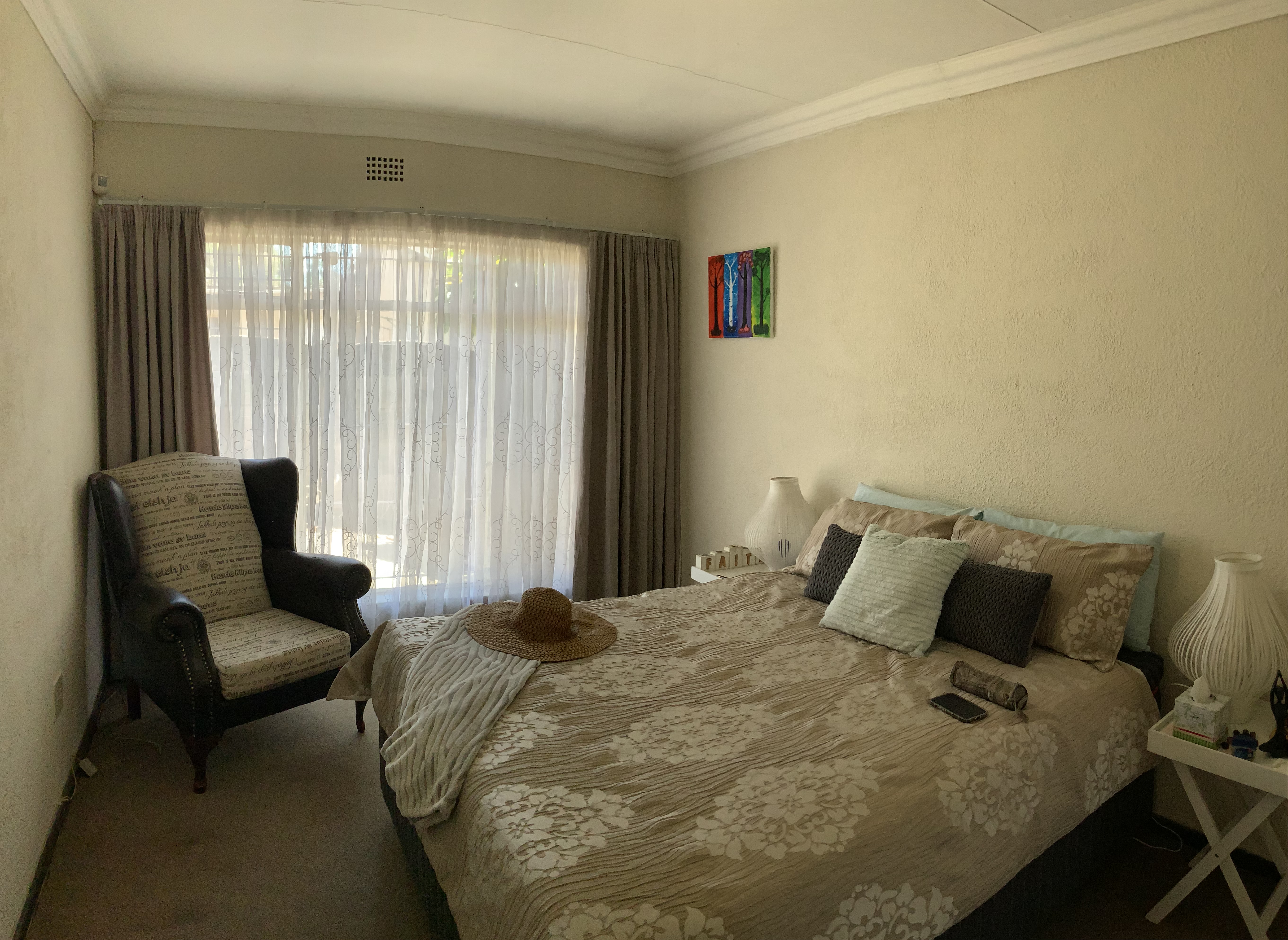 The living room is colossal, allowing one to subdivide into a dining area. The passage leads onto the first open bathroom fitted with tub; basin and toilet. The kids bedroom has builtin cupboards and fits double bed with ease.