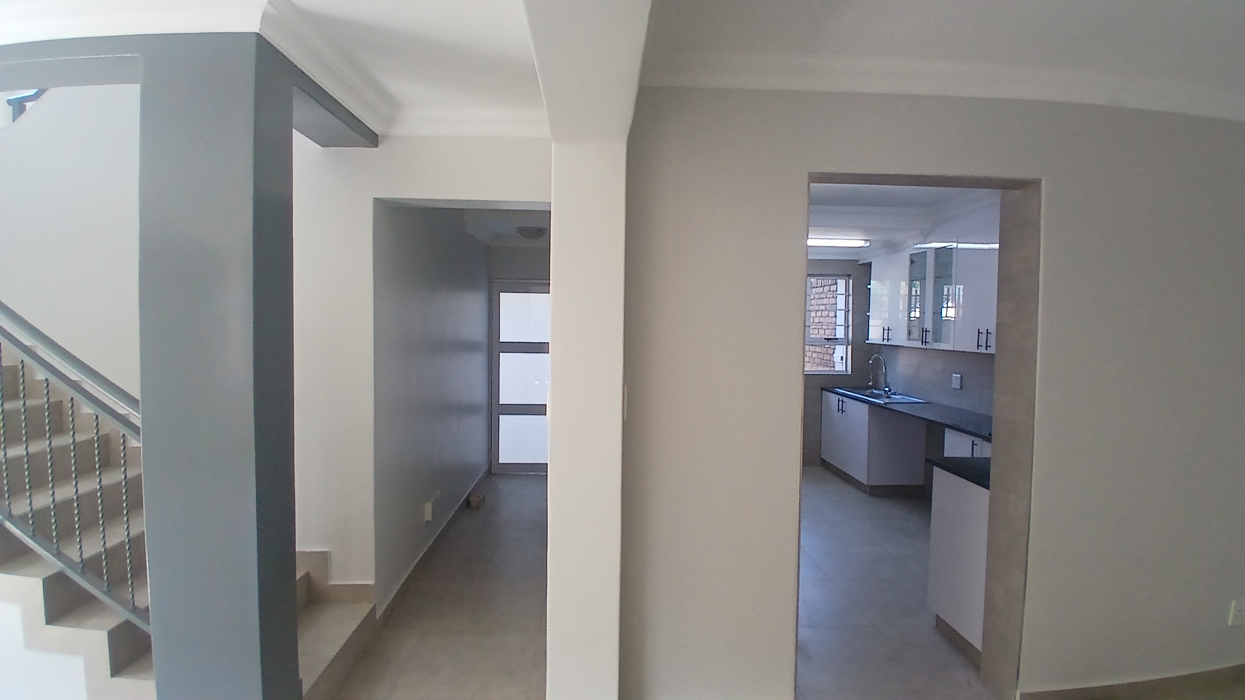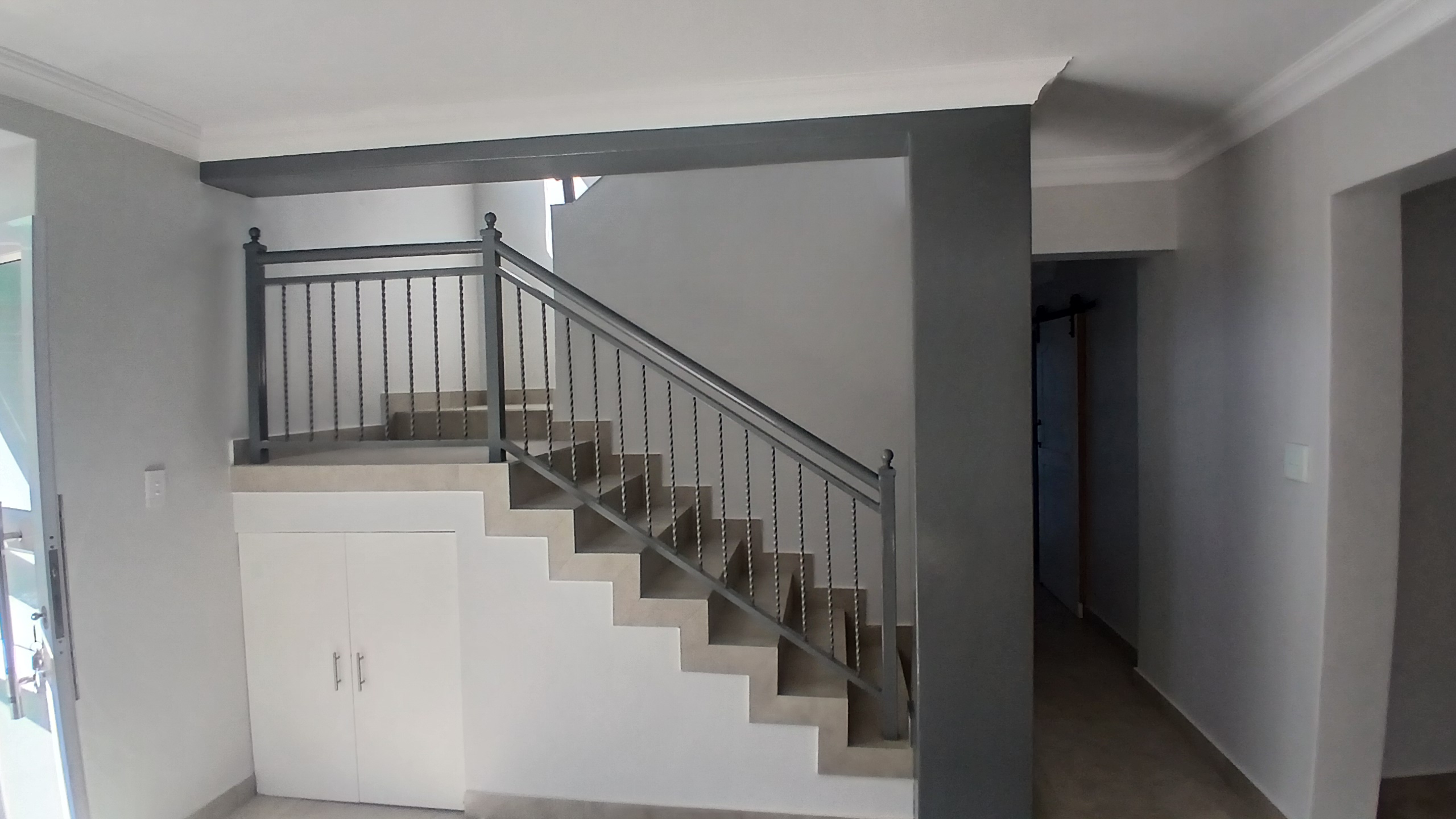 Newly Renovated Townhouse – Must View to Appreciate! Step into perfection with this beautifully renovated 3-bedroom, 2.5-bathroom townhouse, offering modern living and absolute comfort from the moment you enter. Every detail has been tastefully redone — this home is truly move-in ready and waiting for its new owners! Enjoy three generous-sized bedrooms, all featuring built-in cupboards, and two spacious bathrooms upstairs, plus a convenient guest bathroom downstairs. The open-plan kitchen boasts a gas hob, flowing seamlessly into the dining and living area, creating a warm, welcoming space for family and friends. A good-sized study, complete with built-in cupboards, provides the perfect work-from-home setup or quiet reading corner. Outside, you’ll find a private courtyard at the back of the kitchen, ideal for hanging laundry, and a beautiful, easy-to-maintain garden where you can relax and unwind. The home also includes a single garage plus shade-net parking for two additional cars – space and convenience in one perfect package. This property is newly renovated, in immaculate condition, and ready to impress – homes like this don’t stay on the market for long! Don’t miss out – book your viewing today and see for yourself why this is a must-view to appreciate!