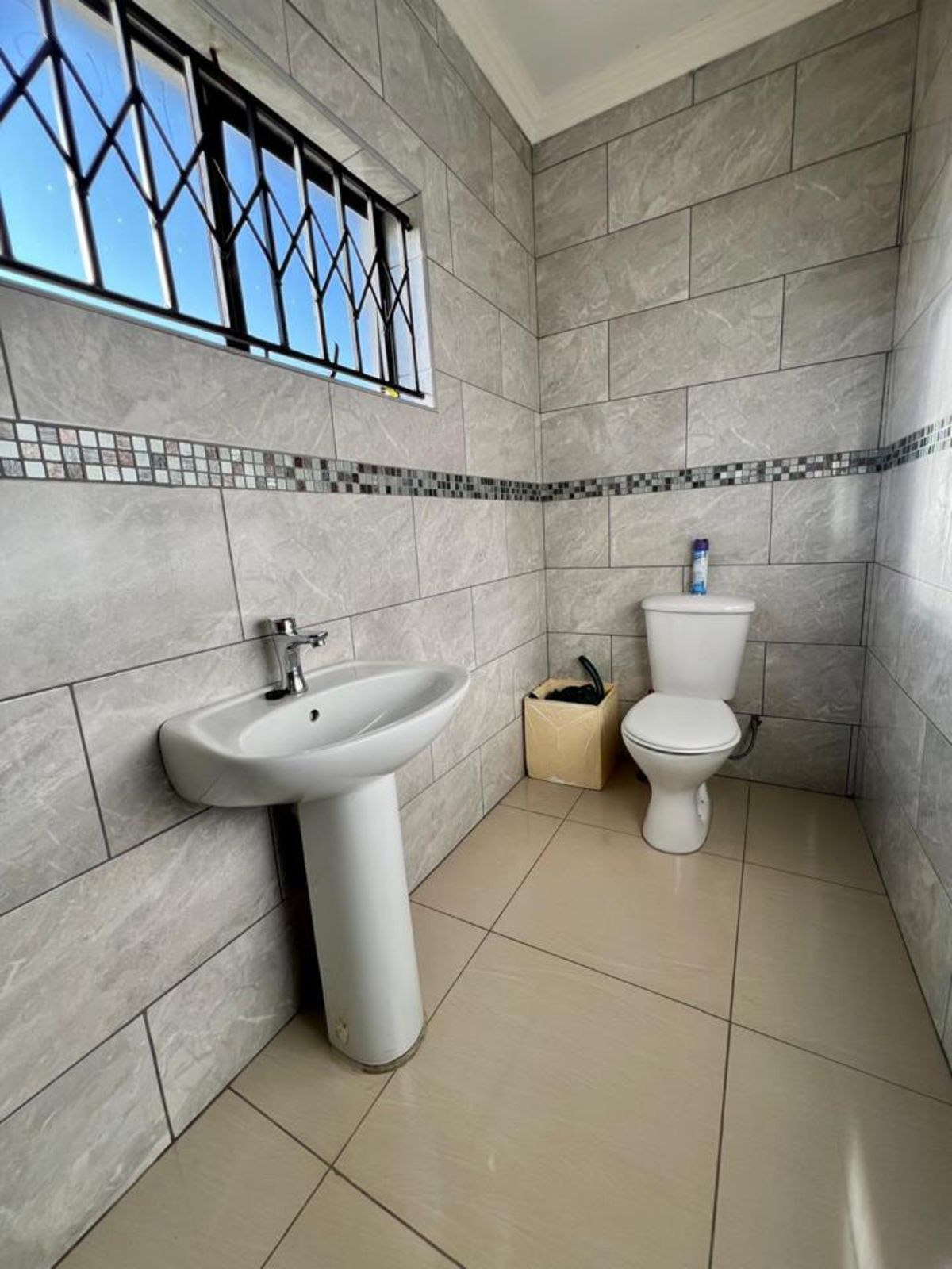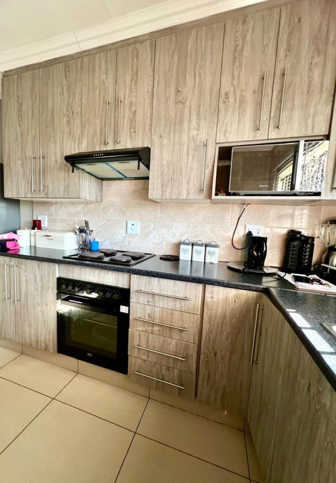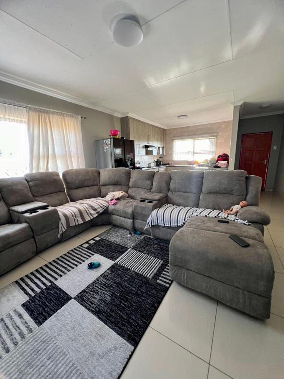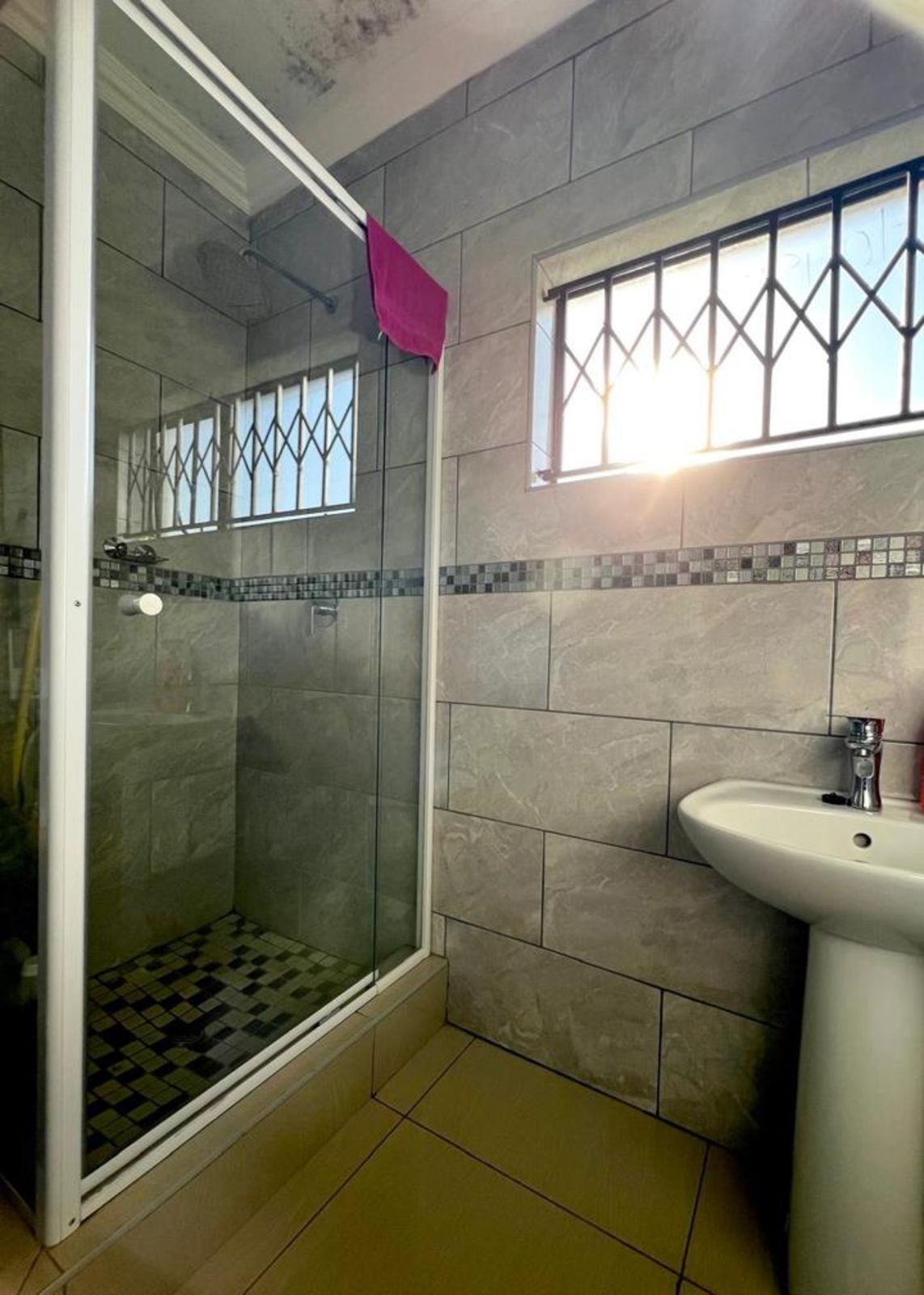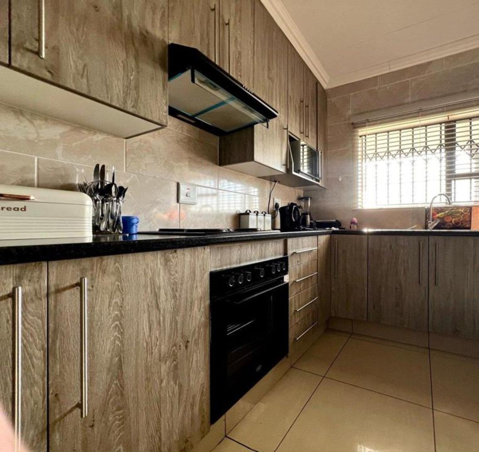The main bedroom comes with its own en-suite bathroom for added privacy, while sleek tiles throughout the home and aluminum-framed windows add a modern touch. With added security features like burglar bars and a Trellidoor, this home promises peace of mind.