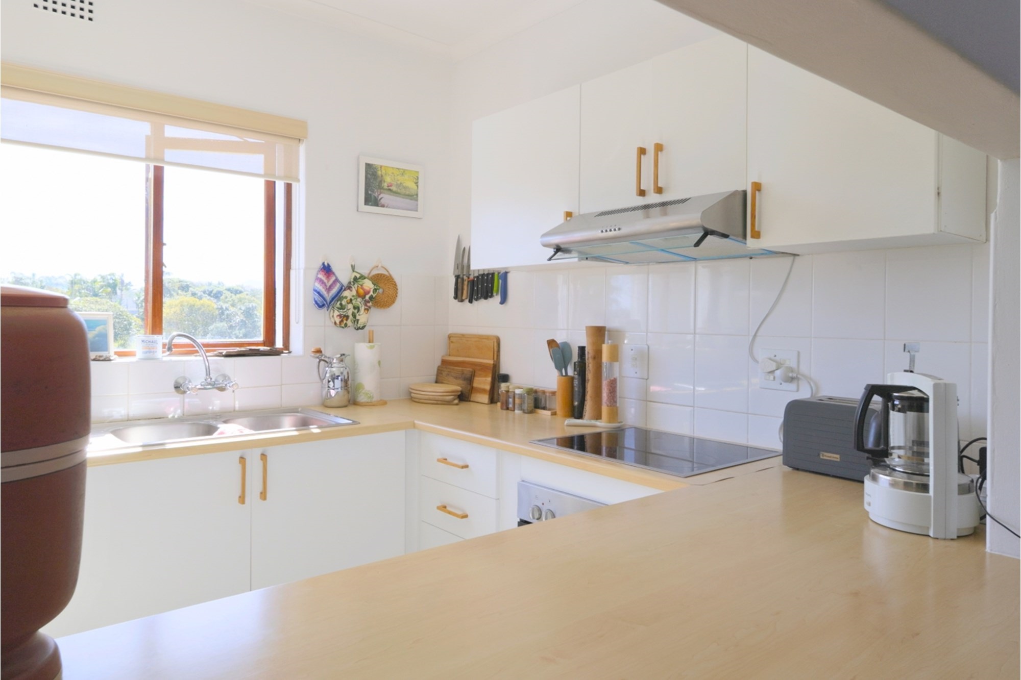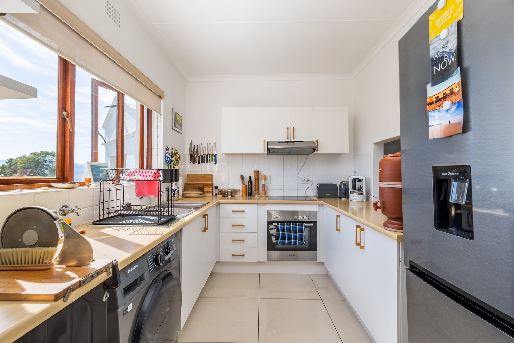 Step inside to discover a beautifully partially furnished interior that boasts high-speed fibre internet, making it ideal for modern living. The spacious layout includes en-suite bathroom in the main bedroom, built-in closets in all bedrooms, and a fully equipped kitchen. The north-east orientation of the apartment fills the living spaces with abundant natural light and offers breathtaking views of the surrounding mountains and sea.