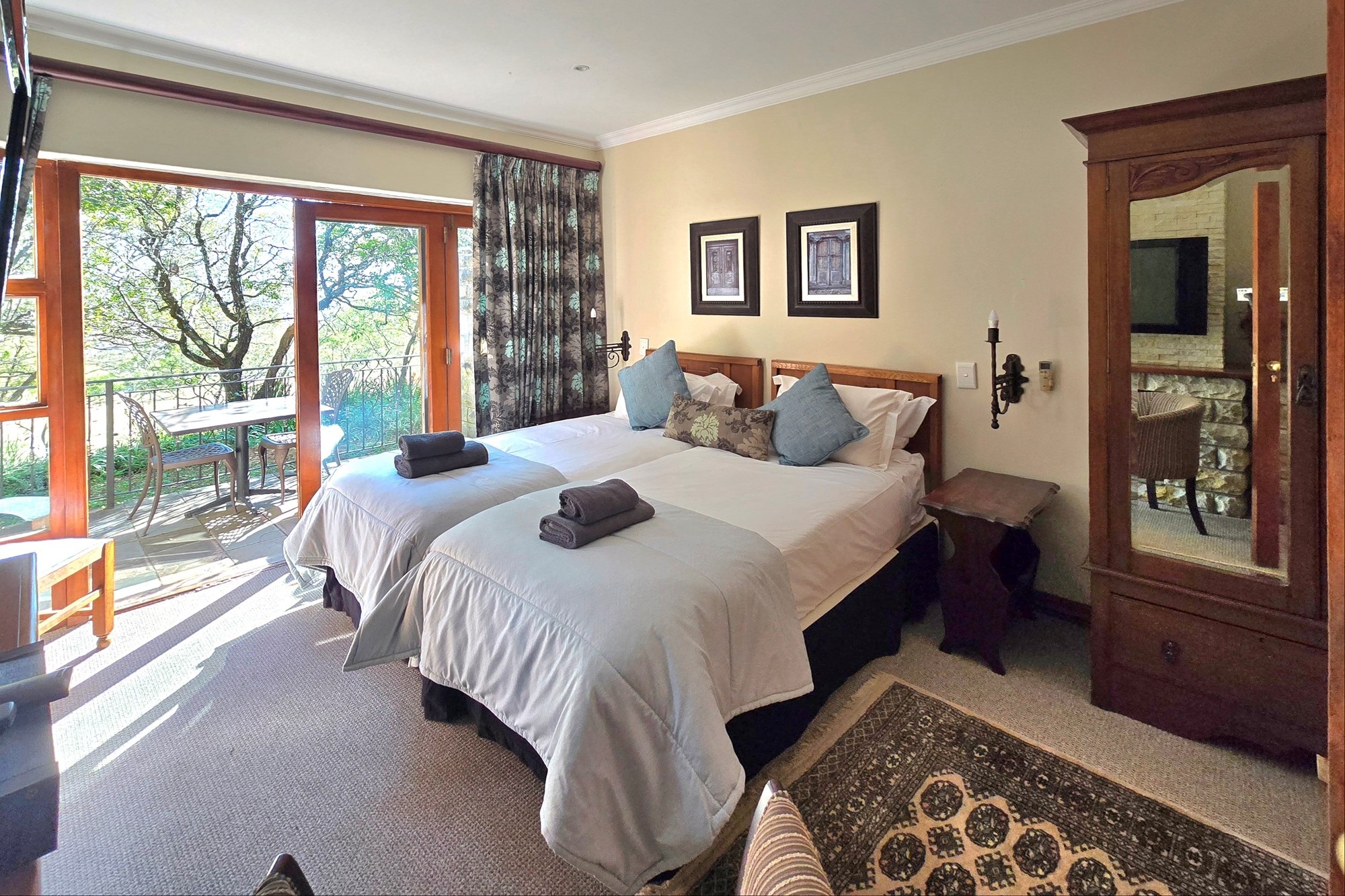 Activities in the area includes: Hiking, Bushmen Paintings, Mountain Bike Trail Riding, River Rafting, Kloofing, Paintball, Mountain Boarding, Archery, Abseiling, Horse Riding, Trail Running, Zip Lining with the renowned Drakensberg Canopy Tours, The Midlands Meander, Chocolate Tasting, Drakensberg Boys Choir, Falcon Ridge Bird of Prey Centre, Helicopter & Glider Flights, Hot Air Ballooning, Various Day Spa and Wellness Centres, Local Basket and Carpet Weaving, Beekeeping, Retail Therapy at the Various Little Shops and Enjoying the many varied Coffee Shops and Restaurants.