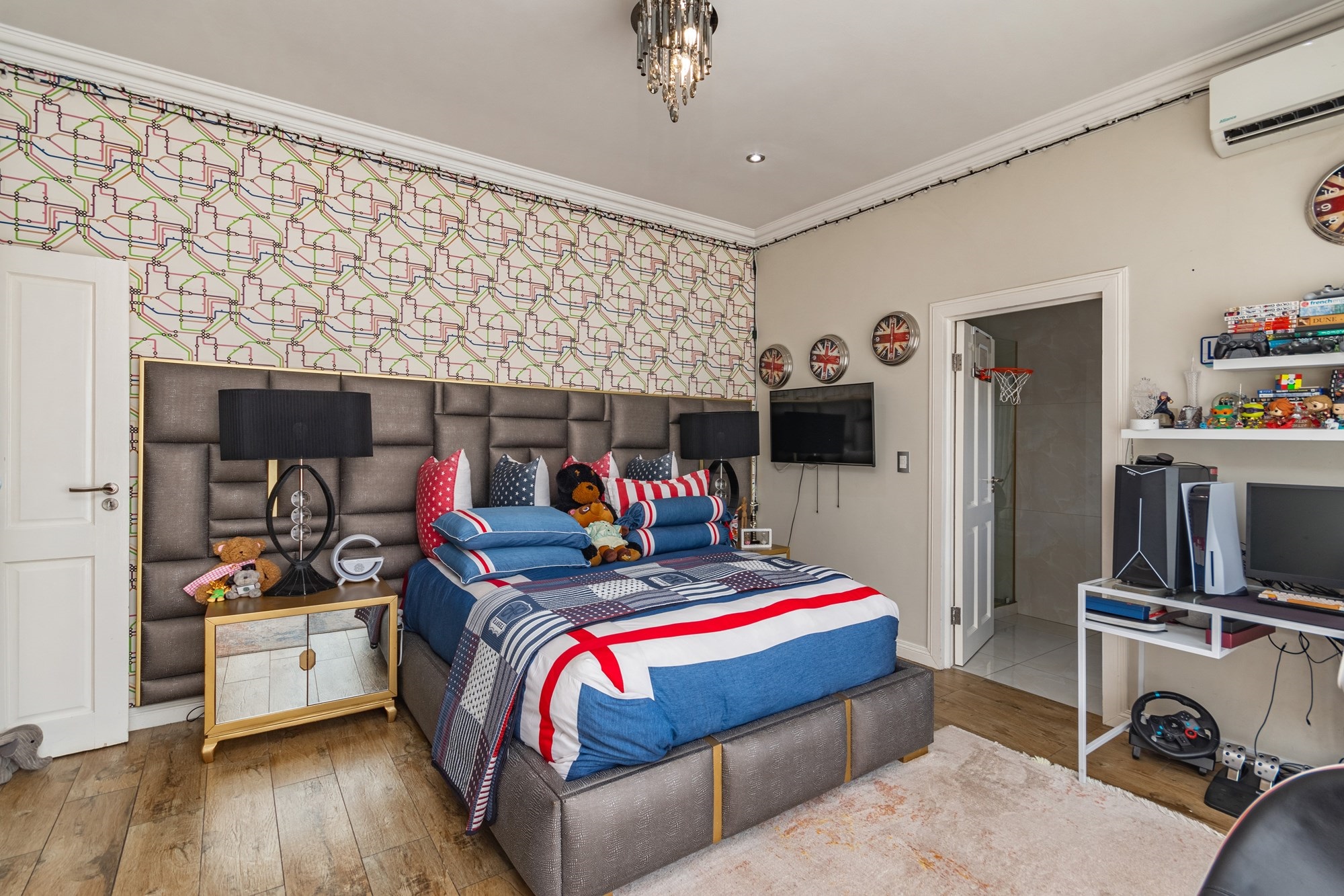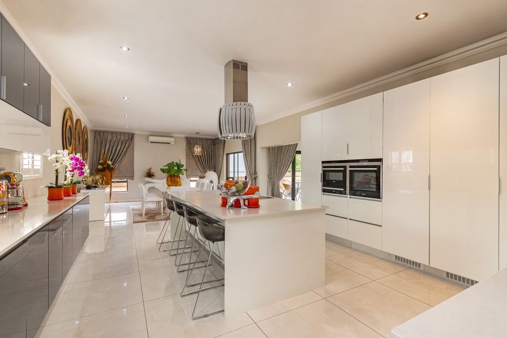 Exclusive Sole: Nestled in the prestigious northern suburbs of Fourways, this architectural masterpiece epitomizes luxury and sophistication. Designed for the discerning homeowner, this exquisite residence offers an unparalleled lifestyle with an impressive blend of contemporary elegance and state-of-the-art conveniences. Upon arrival, a grand entrance sets the tone for the opulence within. The expansive living spaces seamlessly integrate style and functionality, with two lavish lounges offering the perfect balance between relaxation and refined entertaining. A formal dining room flows effortlessly into the designer kitchen, where sleek, modern finishes and integrated appliances create an environment that is both visually striking and effortlessly practical. The home boasts five generously proportioned bedrooms, each with its own beautifully appointed en-suite bathroom. The primary suite is a sanctuary of indulgence, complete with a sumptuous en-suite, a spacious dressing room, and a private retreat for moments of solitude. A well-appointed pyjama lounge ensures additional comfort and convenience for the family. Entertainment is taken to new heights with a private cinema room, providing the ultimate movie-watching experience in the comfort of your own home. Fitness enthusiasts will appreciate the dedicated gym room, while professionals seeking a work-life balance will find inspiration in the fully equipped home office. Stepping outside, the large patio extends the living space into a beautifully landscaped garden, where a tranquil water fountain enhances the ambiance. The home is designed to offer absolute comfort, with air conditioning in every room ensuring year-round climate control. Sustainability is seamlessly integrated with backup water tanks and a comprehensive solar power system, including battery storage, providing both efficiency and peace of mind. Three automated garages provide ample parking, while two staff quarters offer convenience for live-in support. This exceptional home embodies the very essence of luxurious living, offering a seamless fusion of elegance, functionality, and modern innovation. Situated in one of Fourways’ most sought-after locations, it presents an extraordinary opportunity for those who demand the very best. Call us today to arrange a Private Viewing.