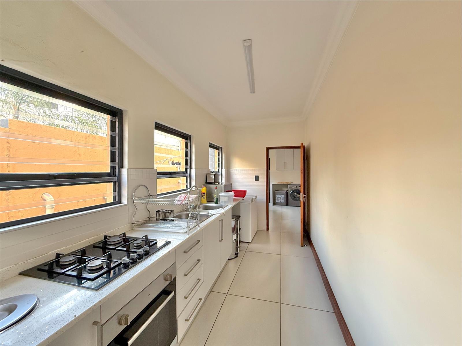 Step outside to enjoy the sparkling swimming pool, landscaped gardens, and built-in braai facilities, creating a superb setting for outdoor entertaining.