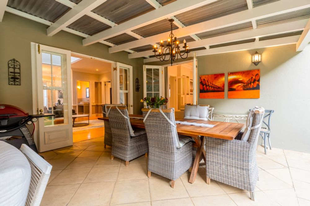 Additional features make this home stand out even further. The chic four-door garage, with its tiled flooring and modern glass-front red cabinetry, is neat, stylish, and ready for your collection of fast cars. There is also extra open parking for four vehicles. A separate staff accommodation unit, complete with its own kitchen and bathroom, offers flexibility as a flatlet. Sustainability is assured with a powerful 20kW solar system, providing efficient and cost-effective living.