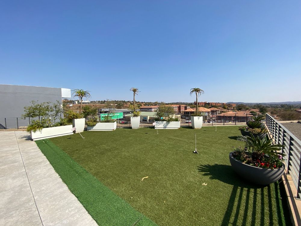 This premium office provides modern fixtures throughout and consists of reception area, adjoining 8 seater boardroom and 3 private executive offices with glass partitioning. There is a large open plan work space that can be subdivided if required. Server room and grand kitchen area compliment the space. An allowance will be provided to create your dream office spec! The building also features a roof entertainment area for corporate functions with putting green and built in braai to enjoy the great views of the Centurion CBD!